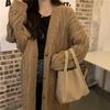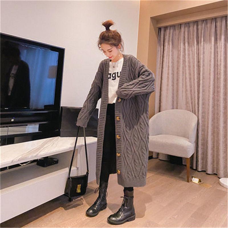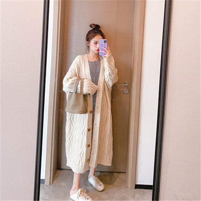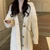 Cárdigan Blanco Tejido de Trenzas Estilo Perezoso y Suave para Mujer Otoño e Invierno Nuevo Suéter Largo Suelto de Gama Alta