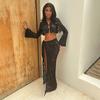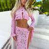 2025 Nuevo Sexy Encaje Transfronterizo Europeo y Americano Manga Trompeta Abertura Falda Larga Bikini Vestido de Vacaciones para Mujer