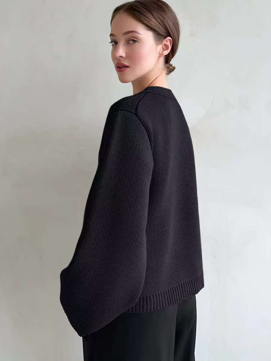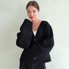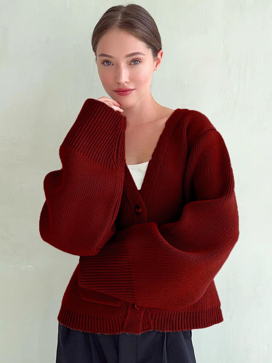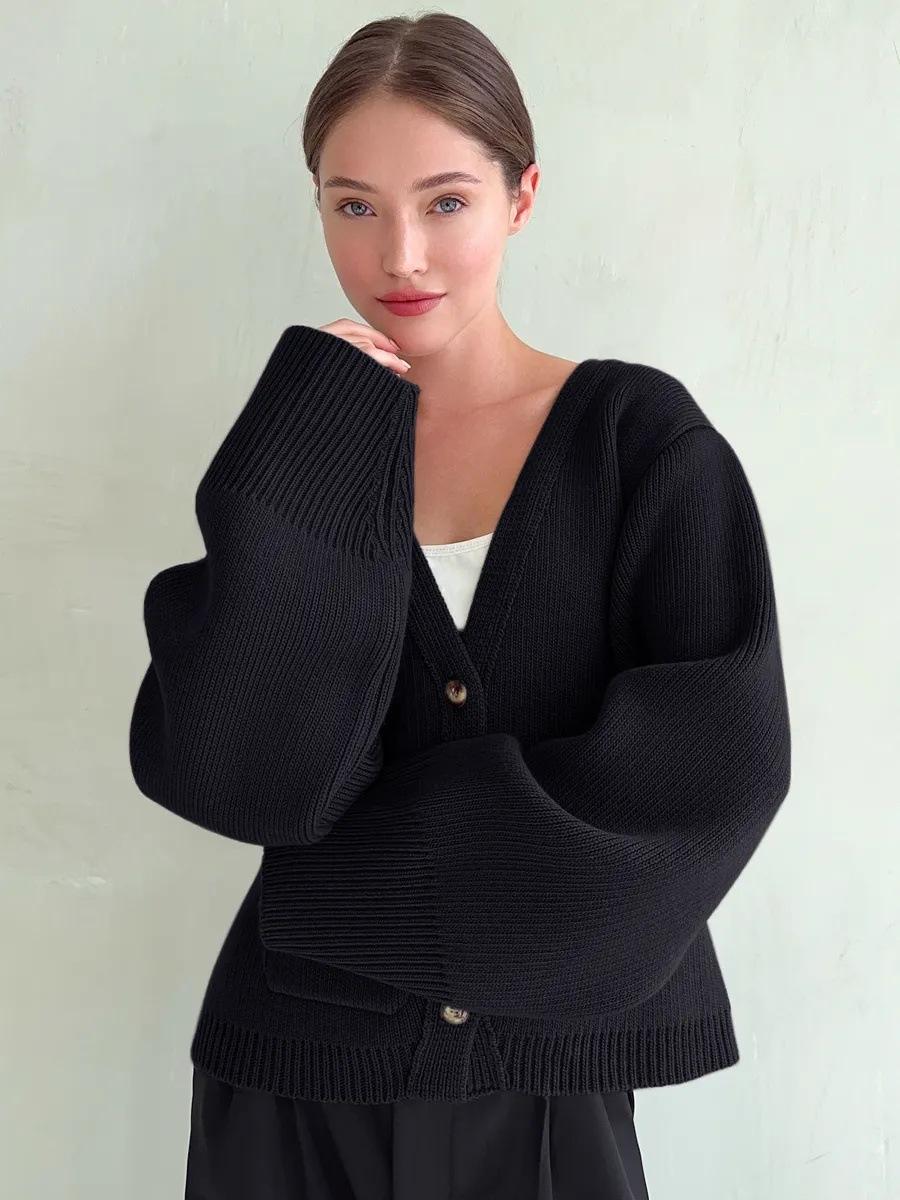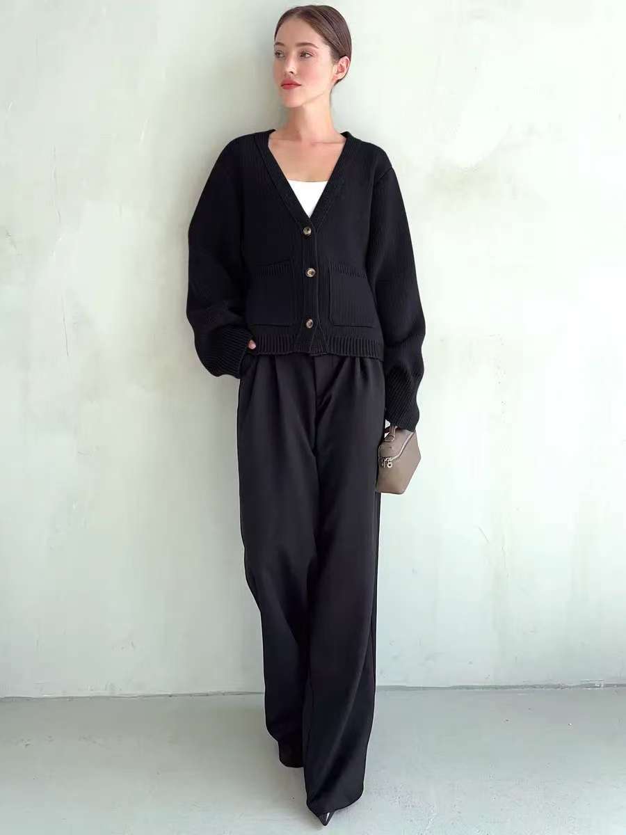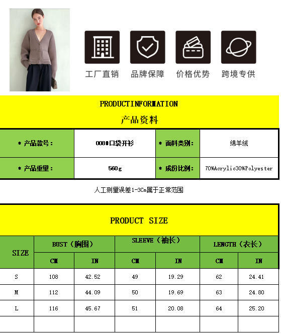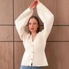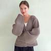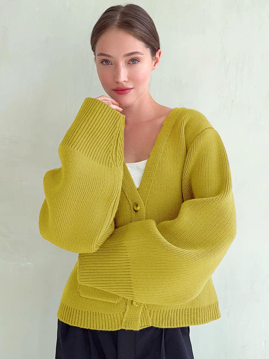 Cárdigan de punto de bolsillo con cuello en V cruzado europeo y americano 2025 Otoño e Invierno Nuevo Suéter de exportación de manga larga holgado de moda para mujer