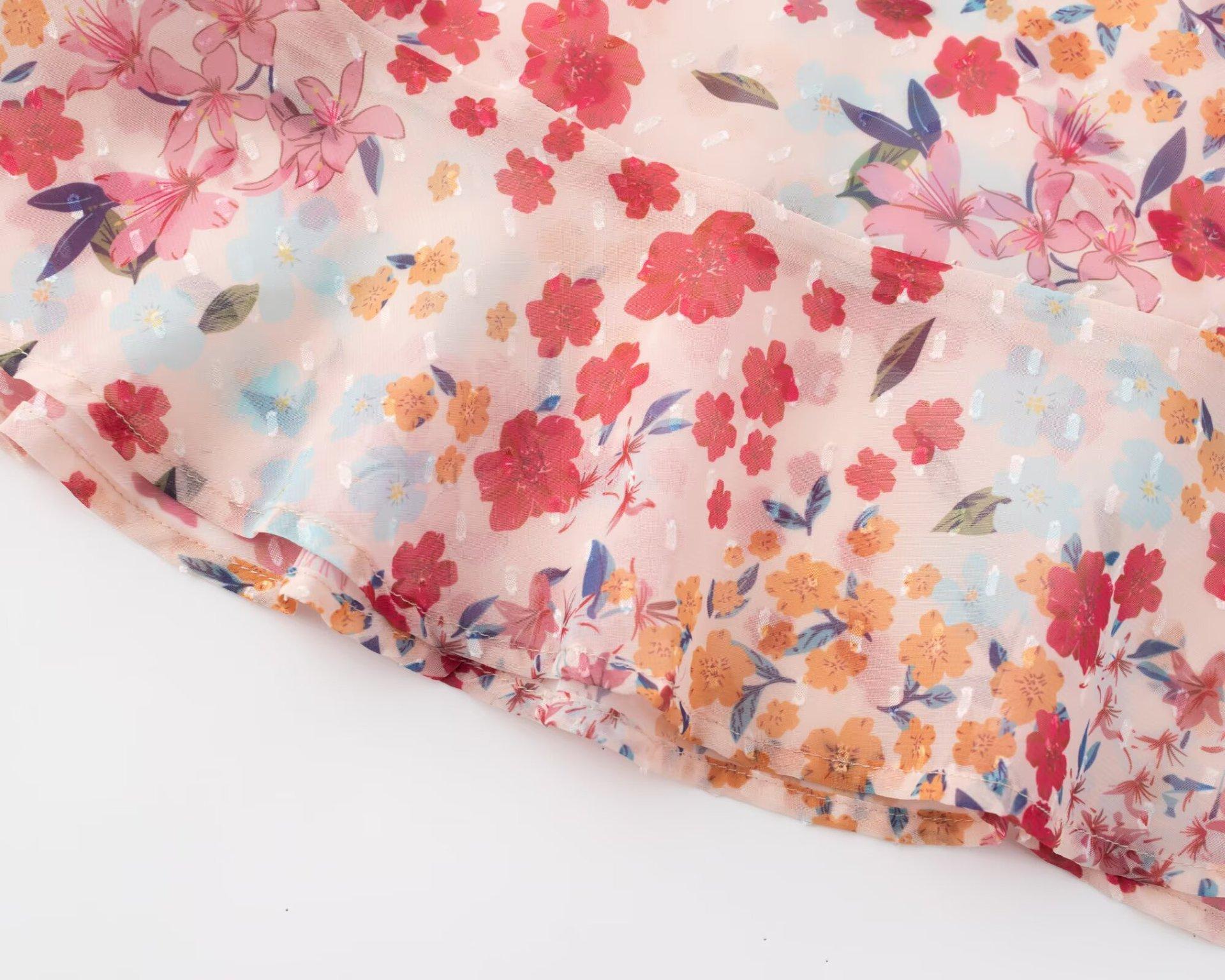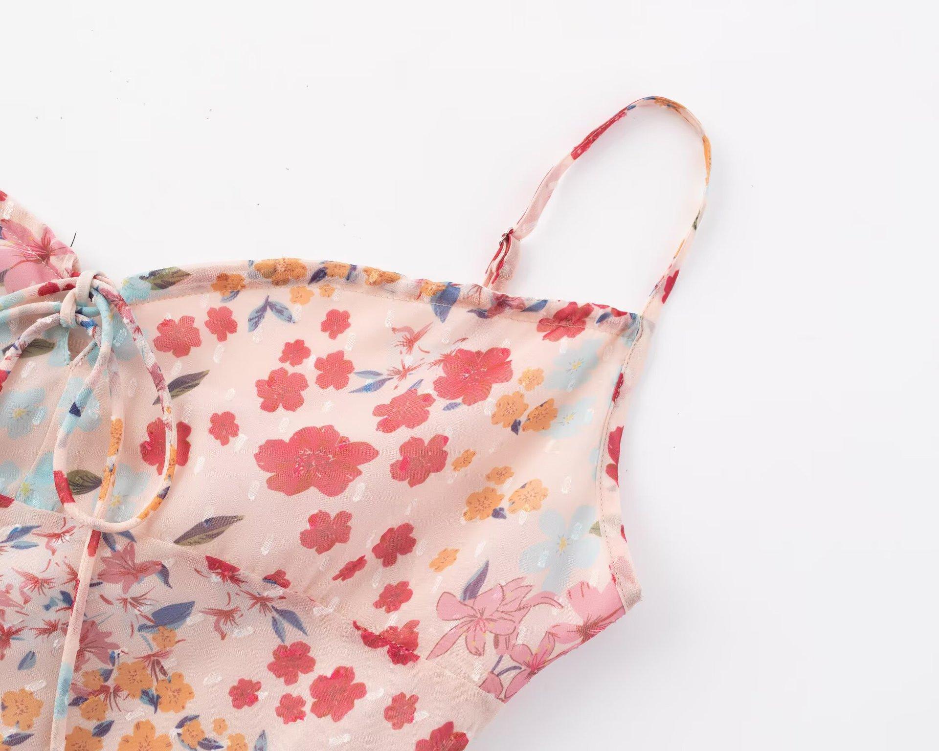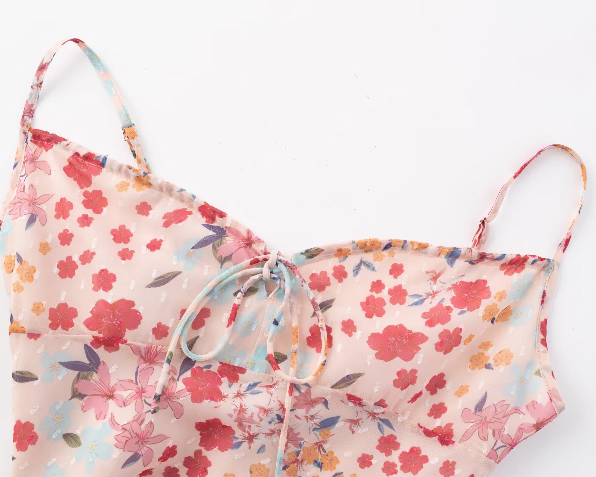 25146-Estilo Europeo y Americano Sexy Sexy Espalda Descubierta Cadera Falda Larga para Mujer 2025 Nuevo Vestido Floral con Tirantes y Cordones