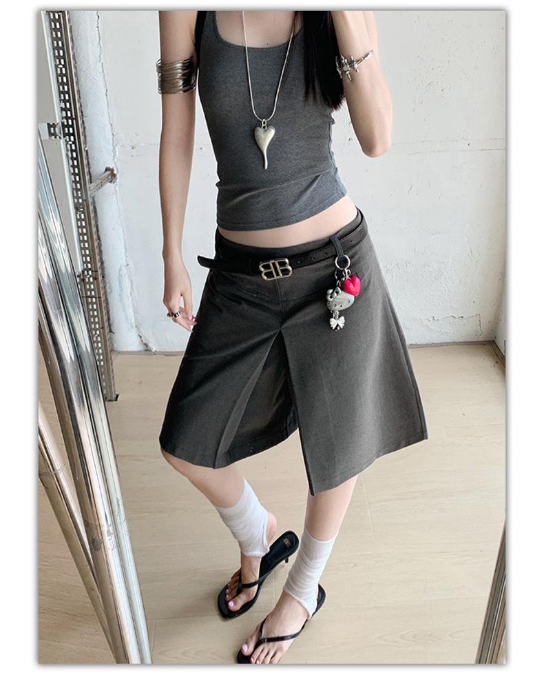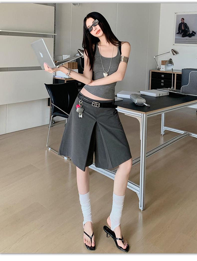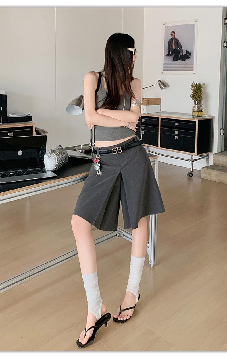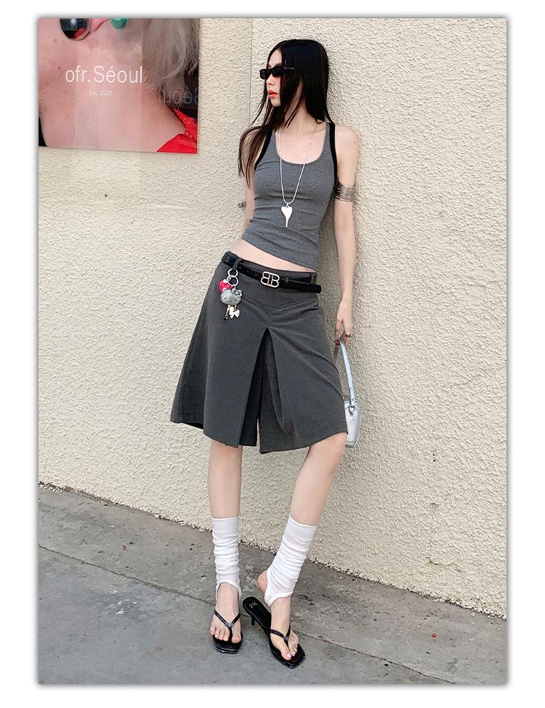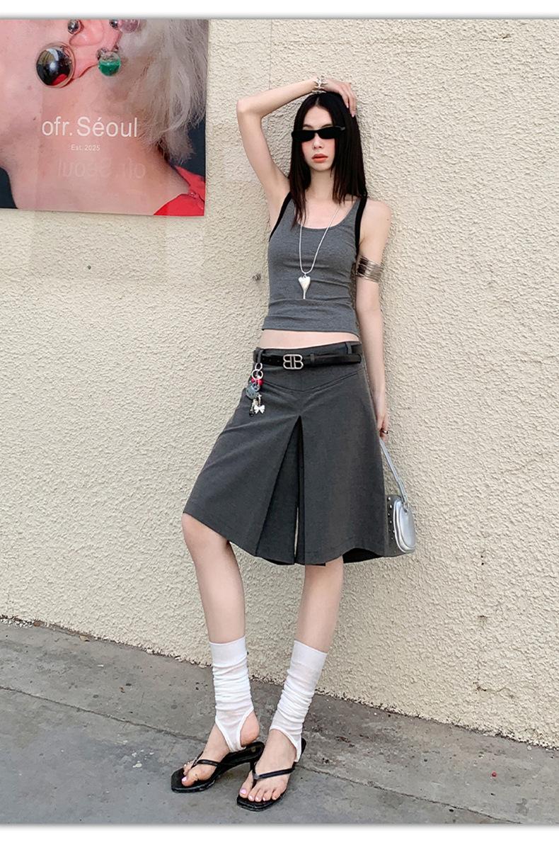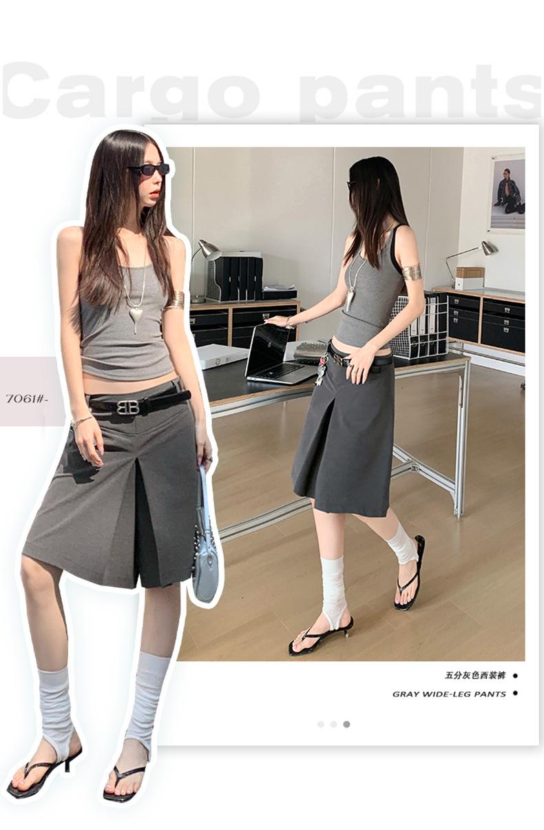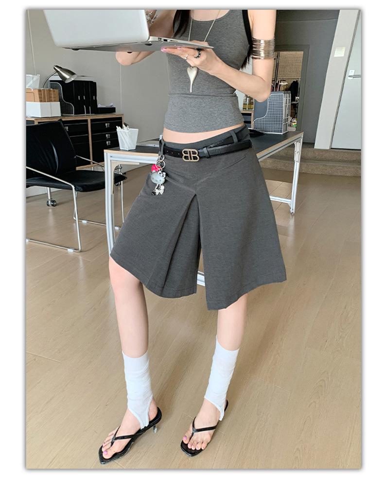 ¡25º cumpleaños! | nueva falda pantalón con sentido del diseño drapeado suelto gris pantalones cropped pantalones slim de pierna ancha spandex