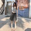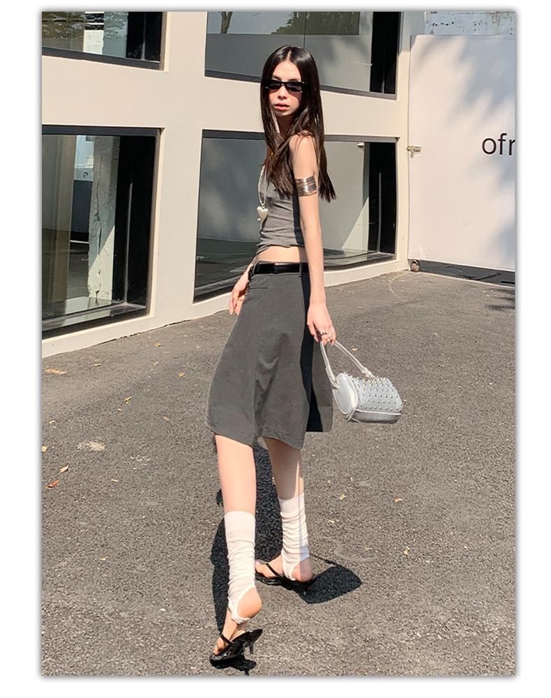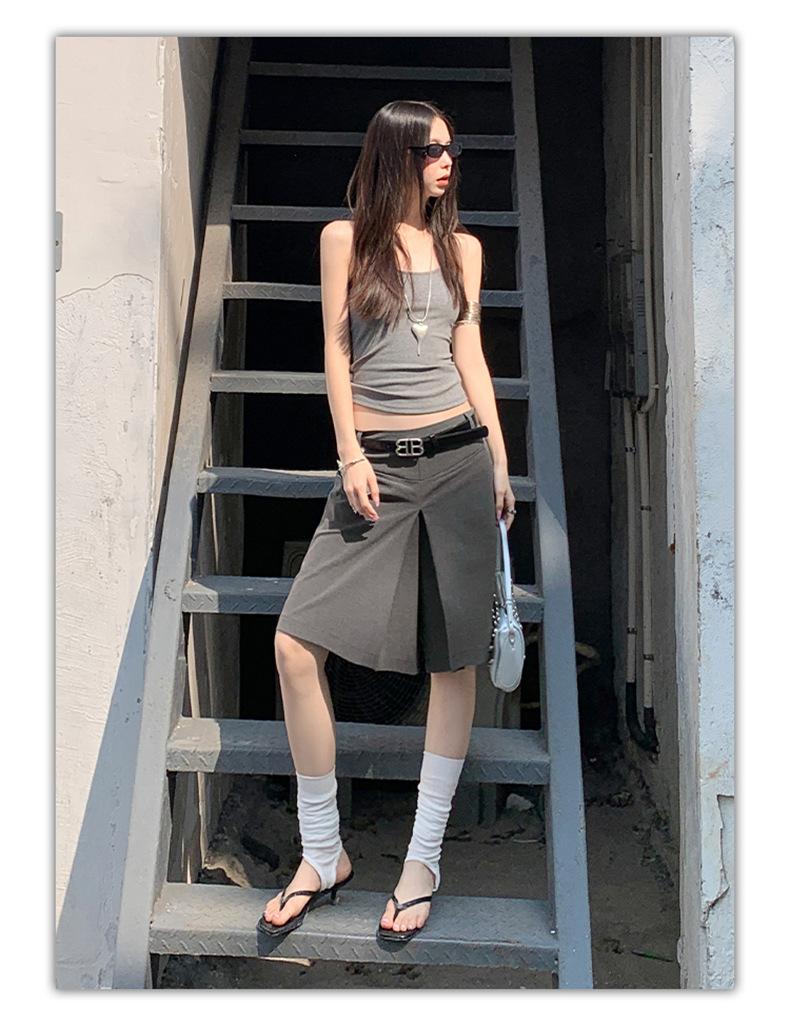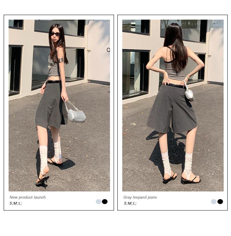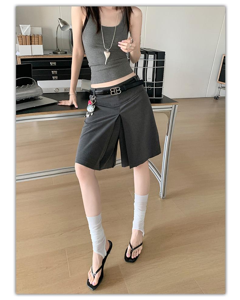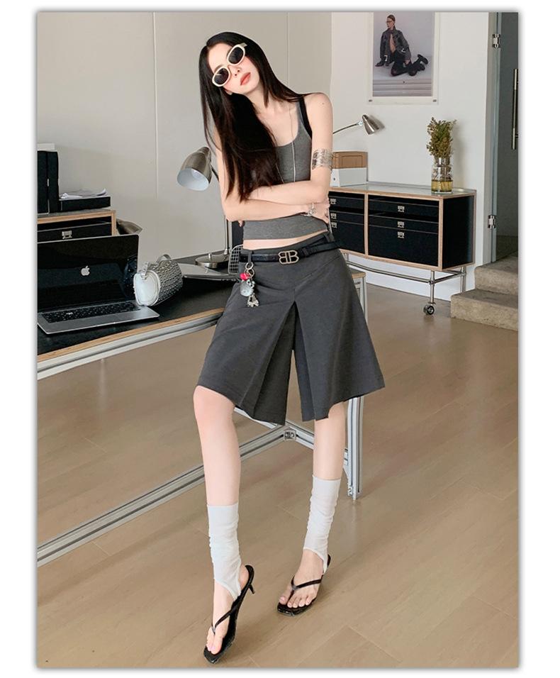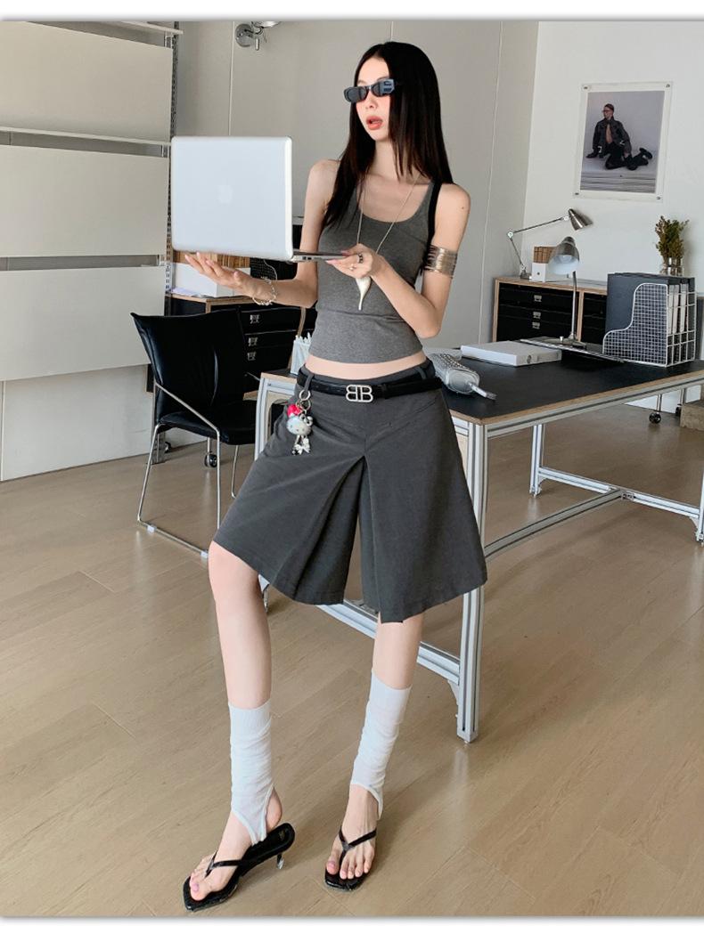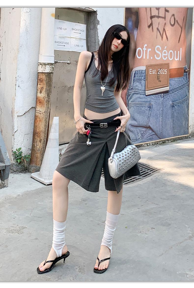 ¡25º cumpleaños! | nueva falda pantalón con sentido del diseño drapeado suelto gris pantalones cropped pantalones slim de pierna ancha spandex