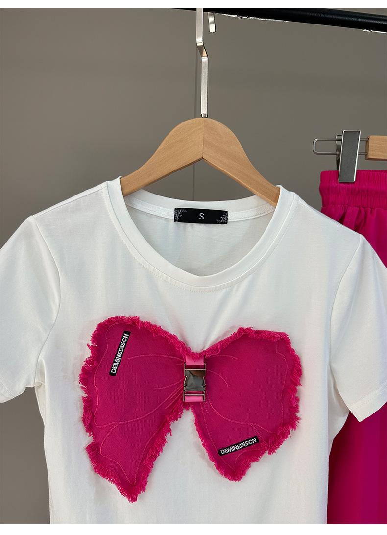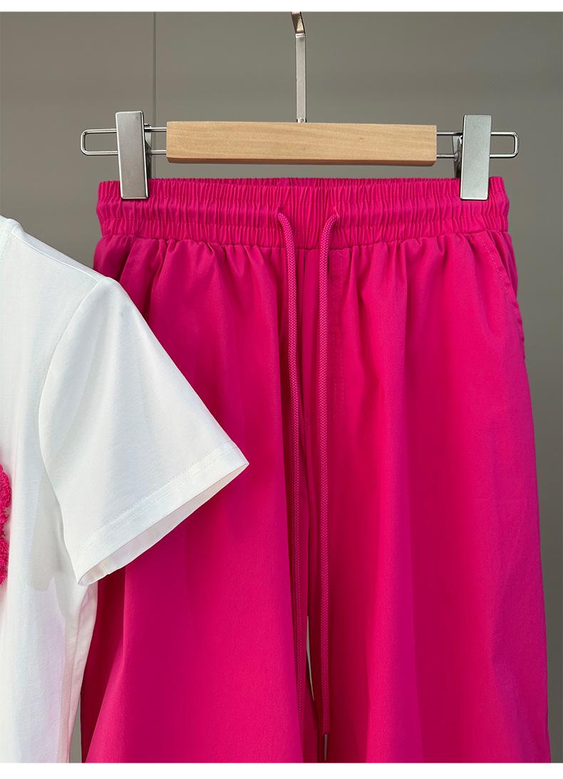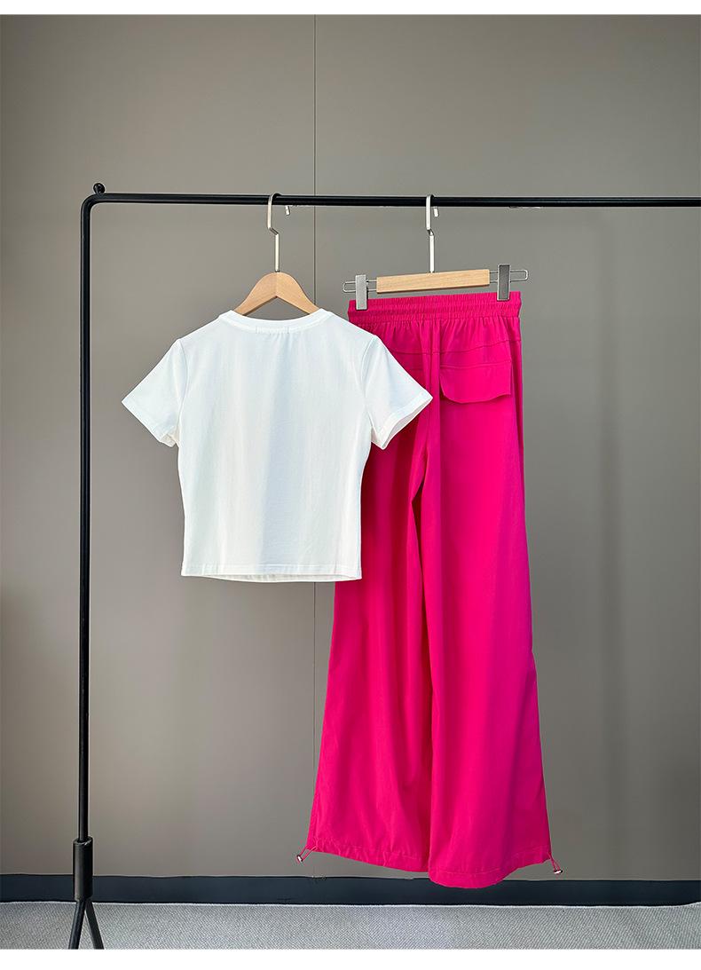 Traje Deportivo Delgado y Hermoso para Mujer 2025 Nuevo Verano Tops de Manga Corta de Gama Alta y Pantalones de Pierna Ancha Conjunto de Dos Piezas