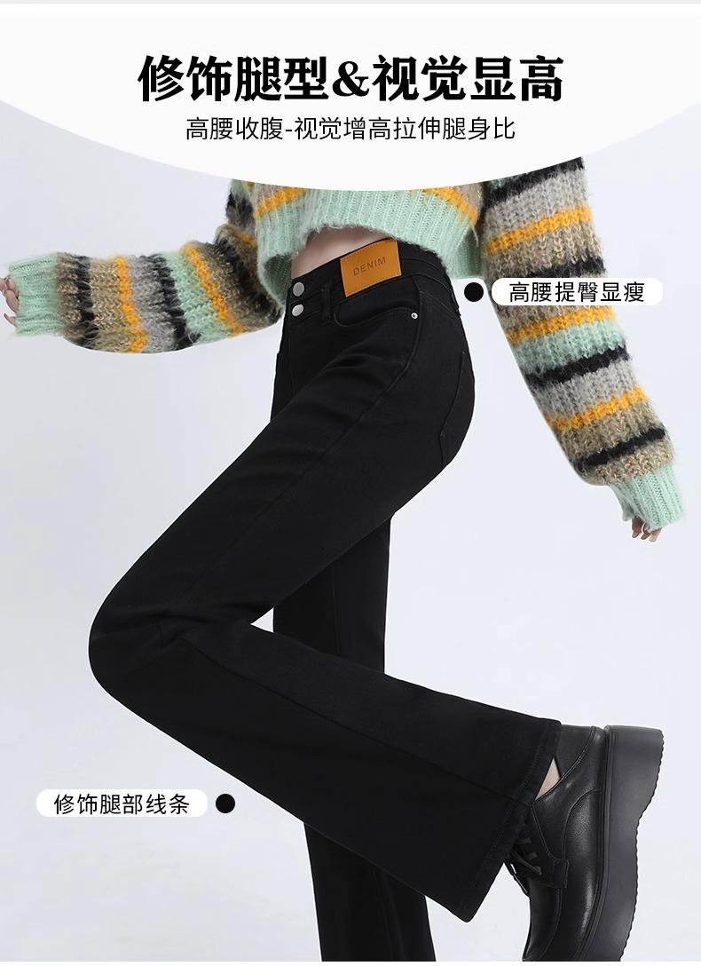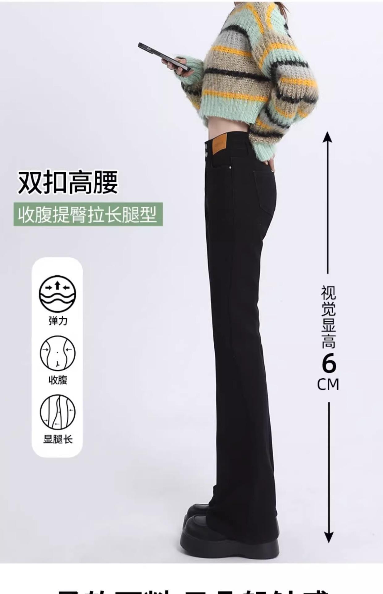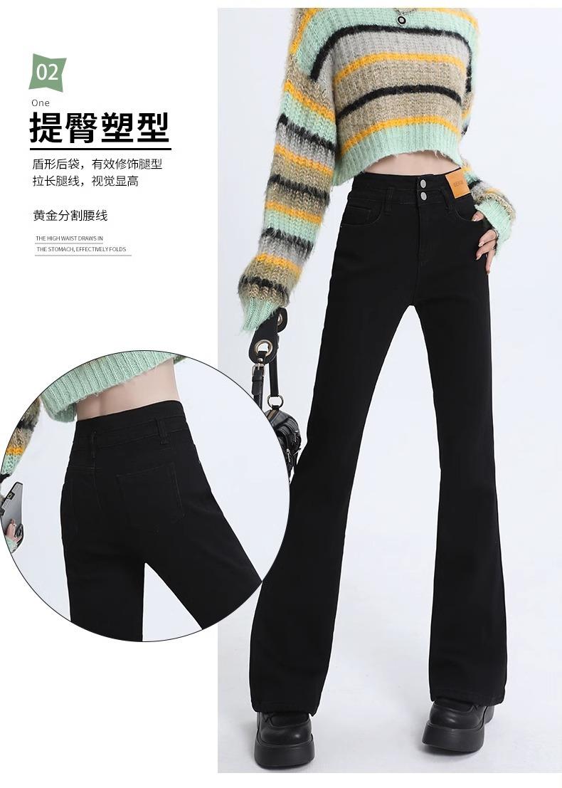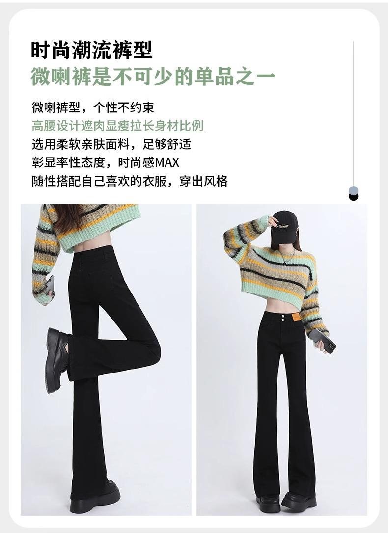 Pantalones Acampanados Elásticos Negros de Moda para Mujer, Combinan con Todo, Nuevos, Cintura Alta, Adelgazantes, Corte Slim, Levanta Glúteos, Micro-Denim