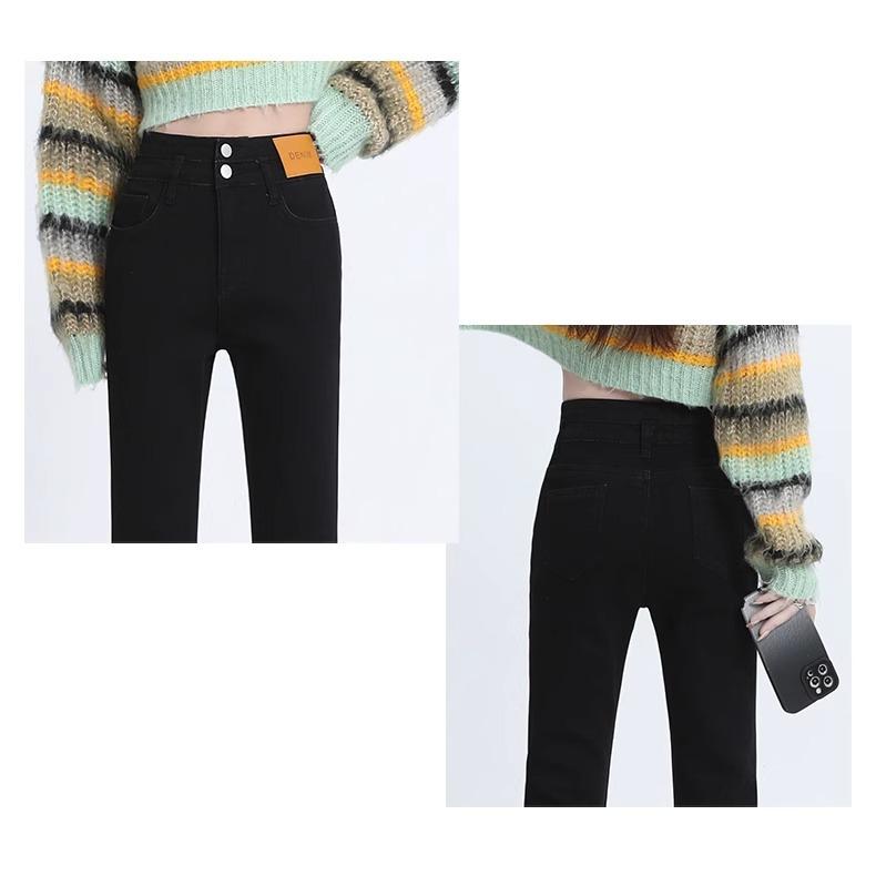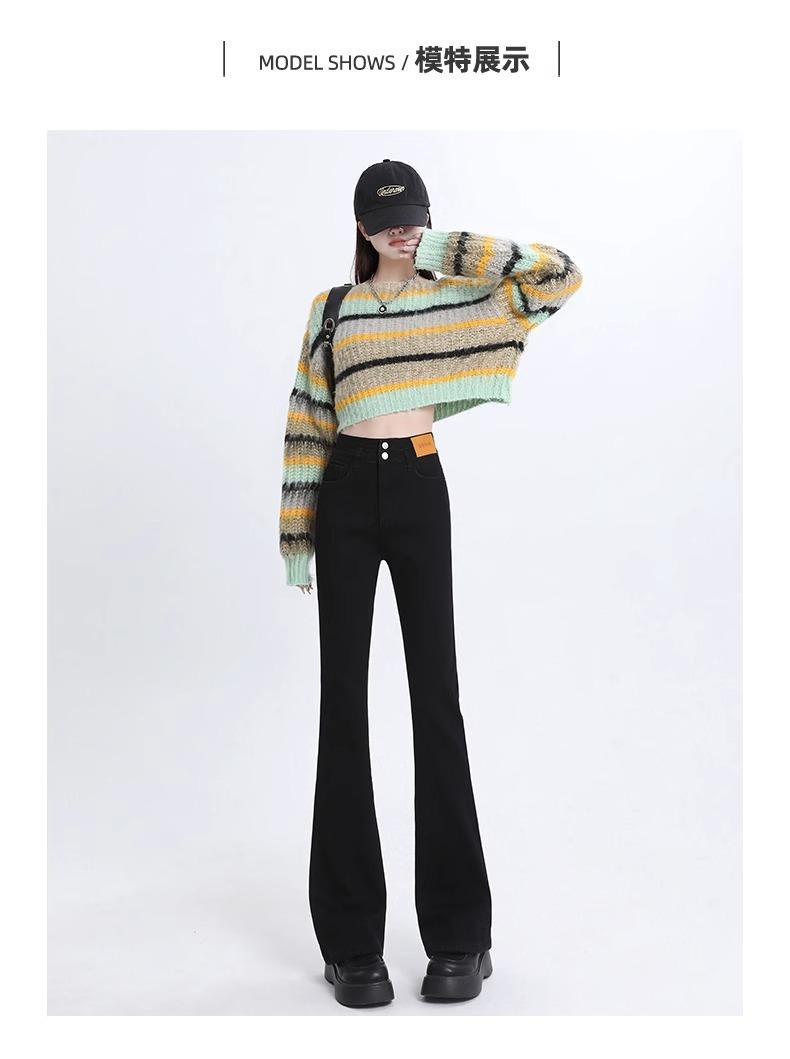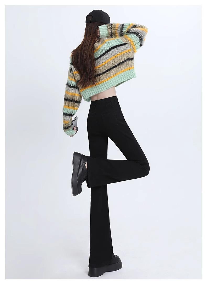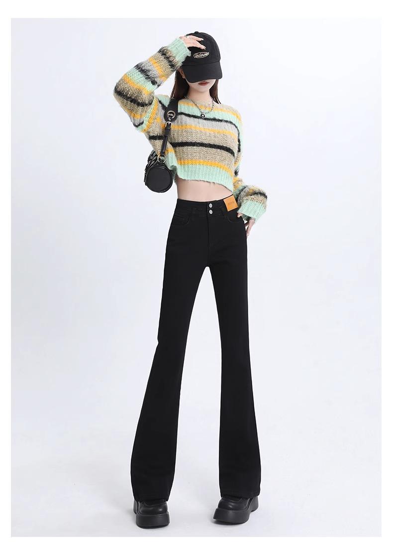 Pantalones Acampanados Elásticos Negros de Moda para Mujer, Combinan con Todo, Nuevos, Cintura Alta, Adelgazantes, Corte Slim, Levanta Glúteos, Micro-Denim