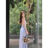 Estilo Vacaciones de Verano 2025 Sexy Delgado Chica Caliente Vestido sin Espalda Falda Larga Línea A con Copas para el Busto Vestido de Tirantes para Mujer