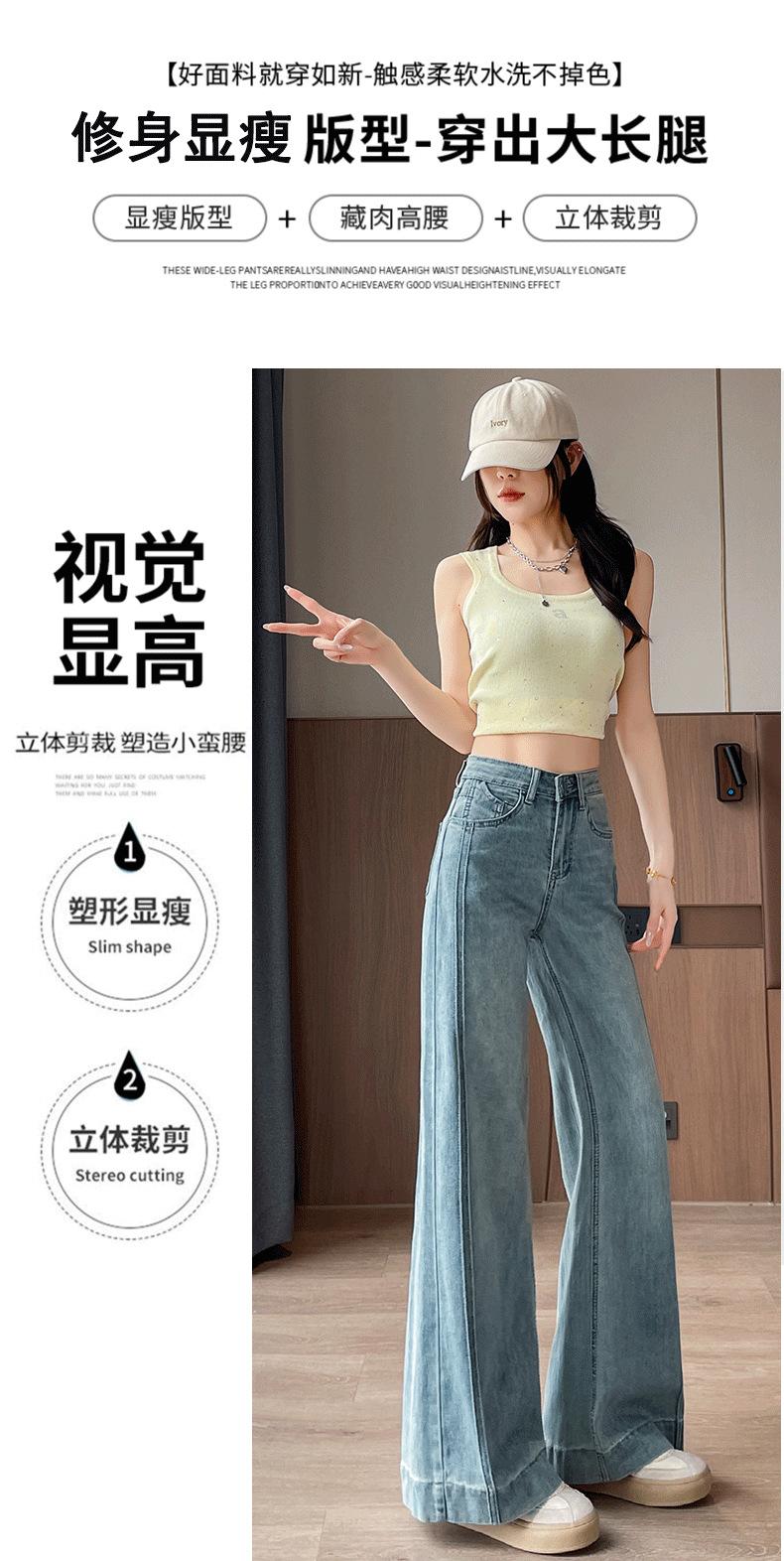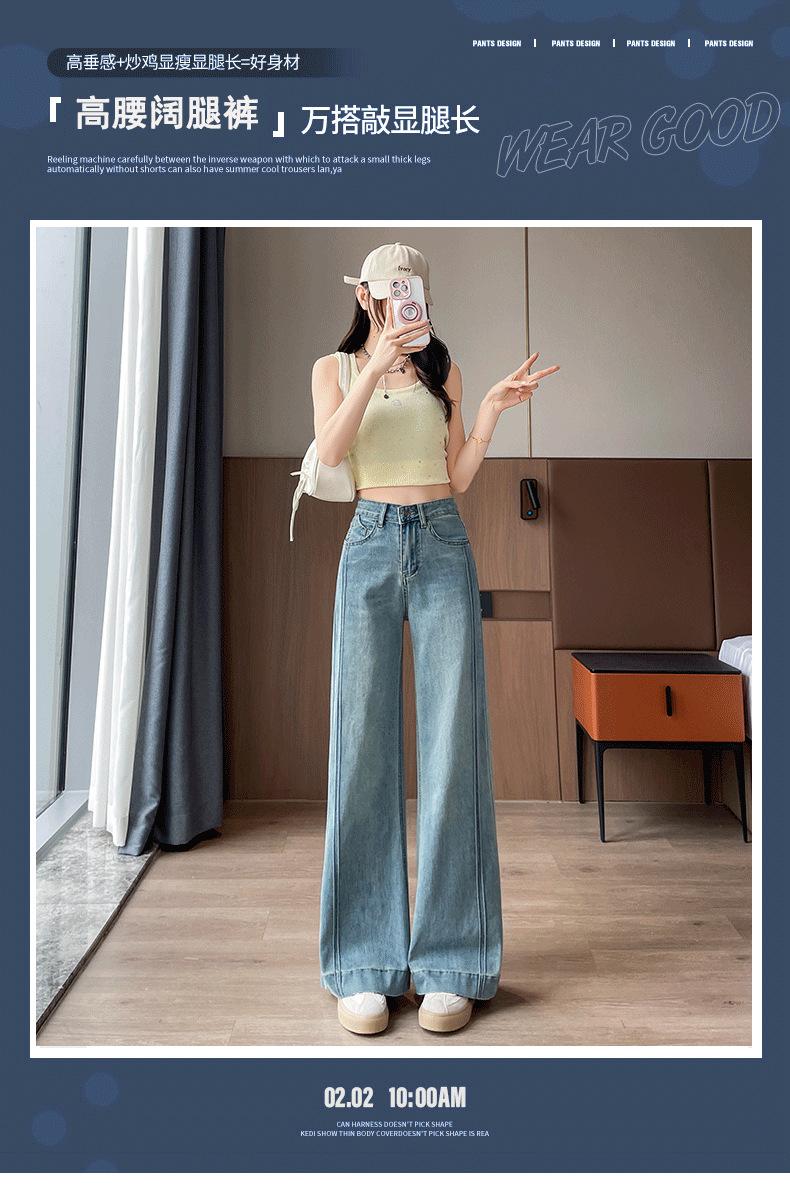 Jeans Rectos Retro Nostálgicos para Mujer Verano 2025 Nuevo Estilo Americano Corte Holgado Adelgazante Jeans de Pierna Ancha para Altas