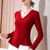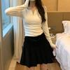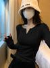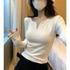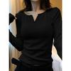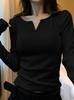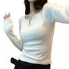 Top térmico blanco de cuello en V y escote bajo para mujer, nuevo top versátil de estudiante de otoño e invierno 2025 de corte ajustado