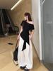 Playera de Manga Corta con Hombro Irregular para Chica Rojo Ardiente para Mujer Verano Sentido del Diseño Elegante Cintura Ajustada Encaje en el Hombro Top Ins