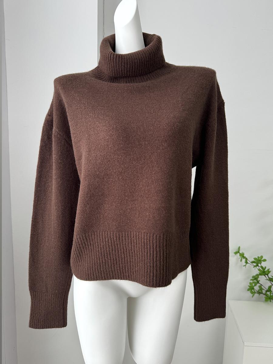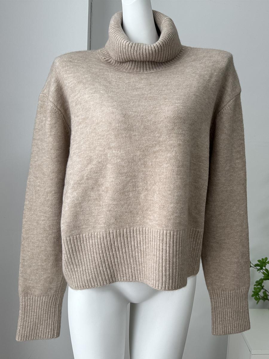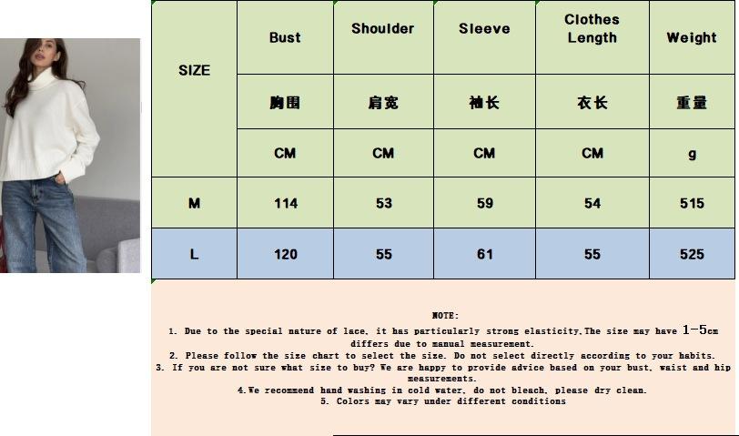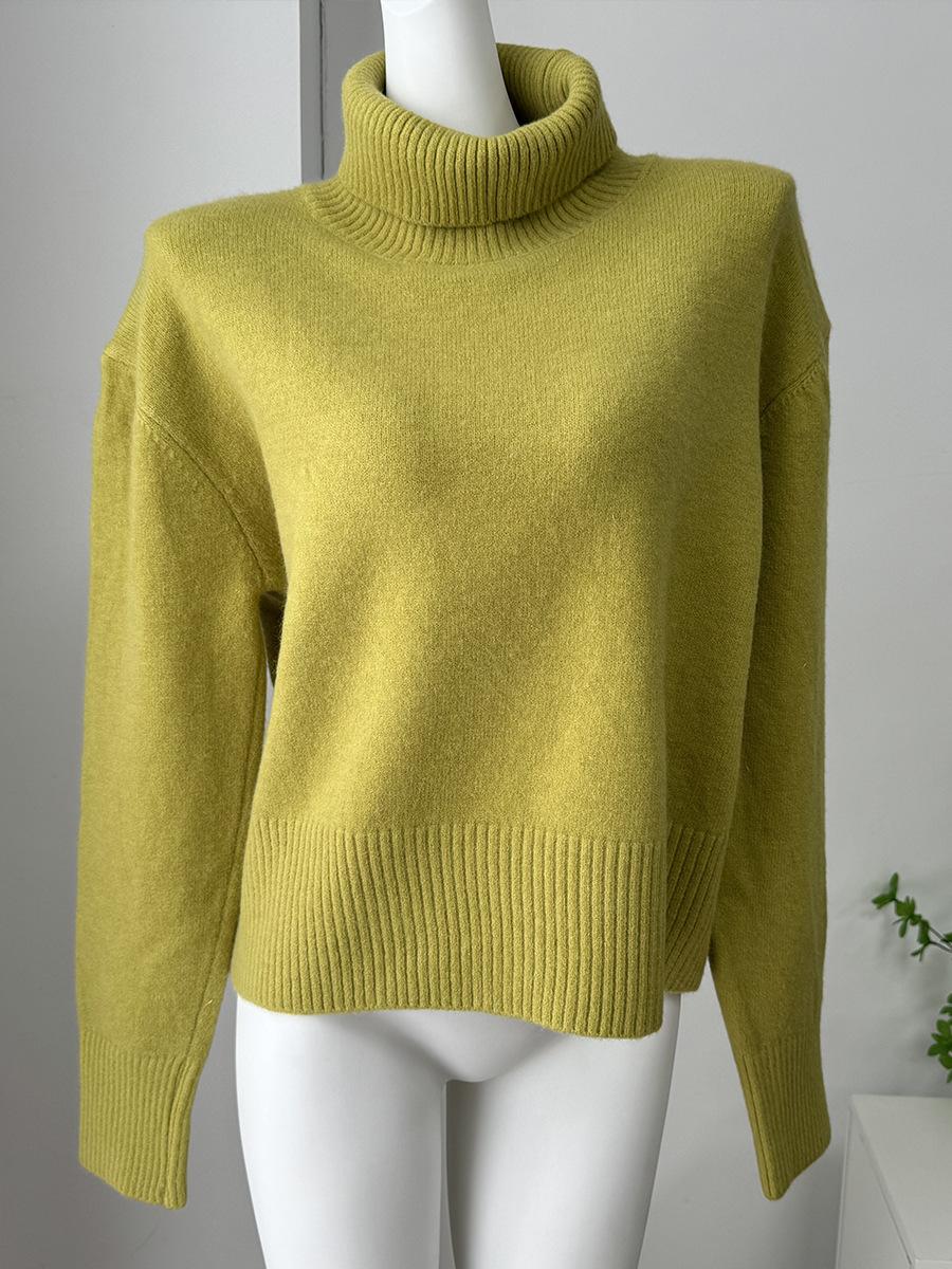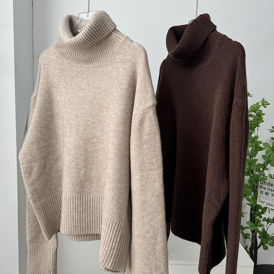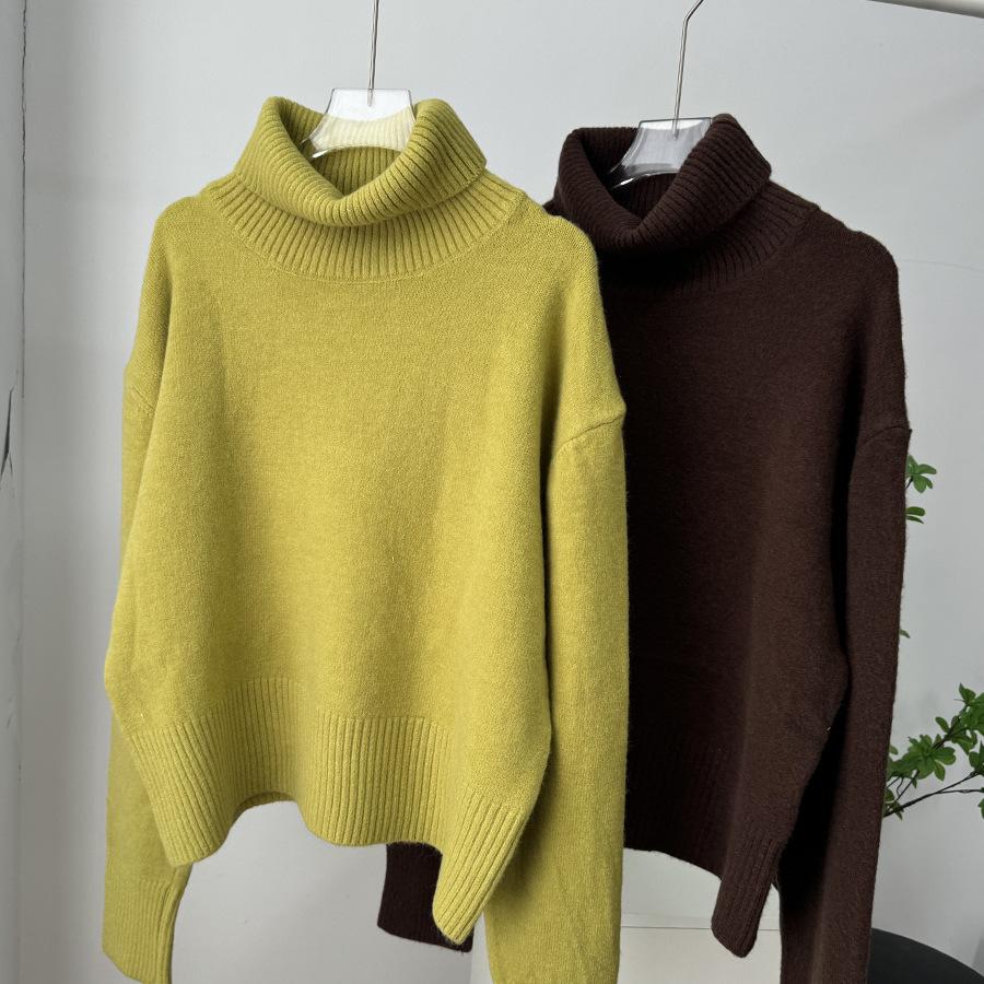 Suéter de Punto de Cuello Alto Corto de Color Puro Otoño e Invierno Europeo y Americano para Mujer, Suelto Casual, 2025 Nuevo Top Versátil Engrosado