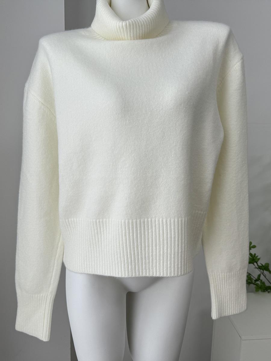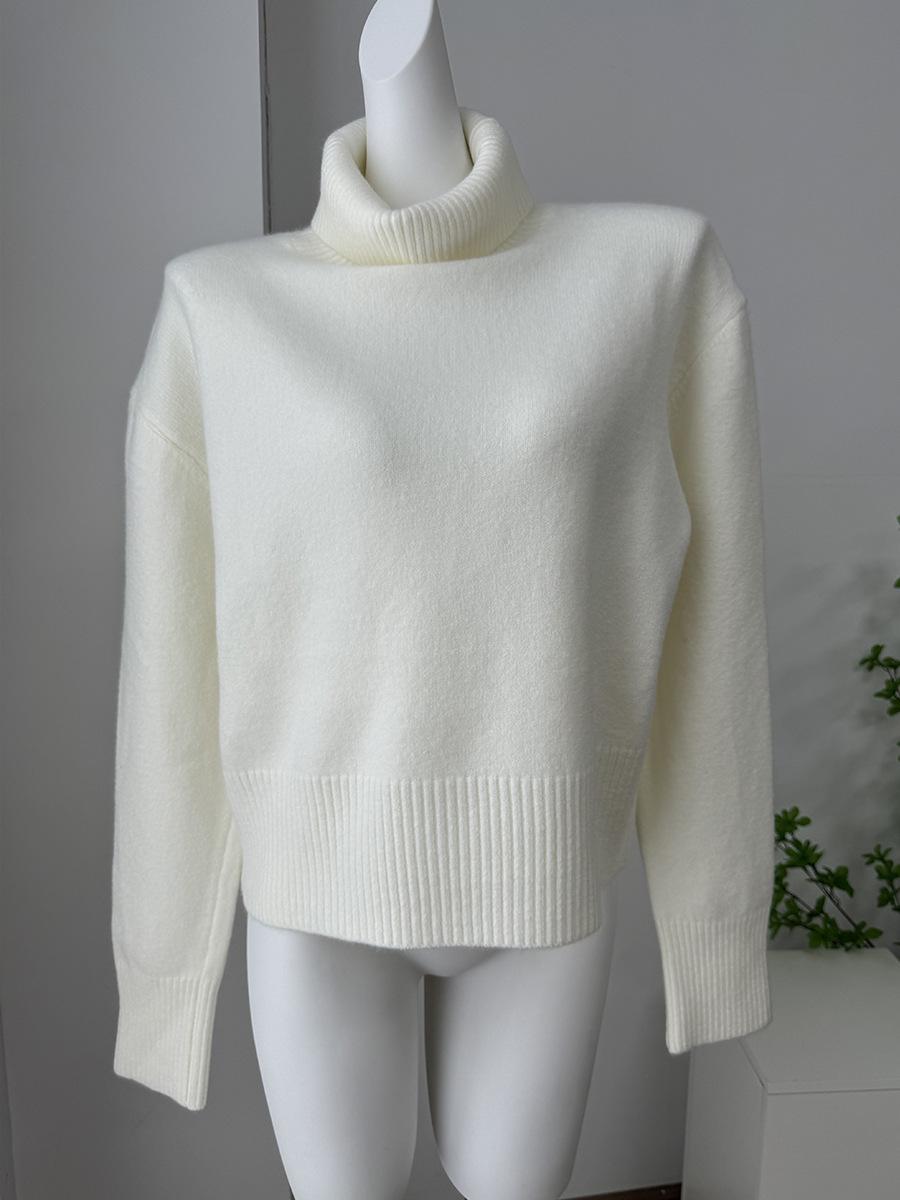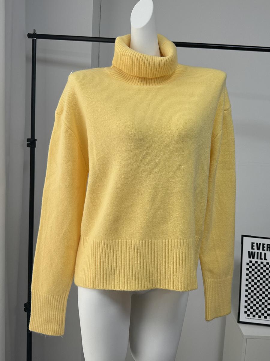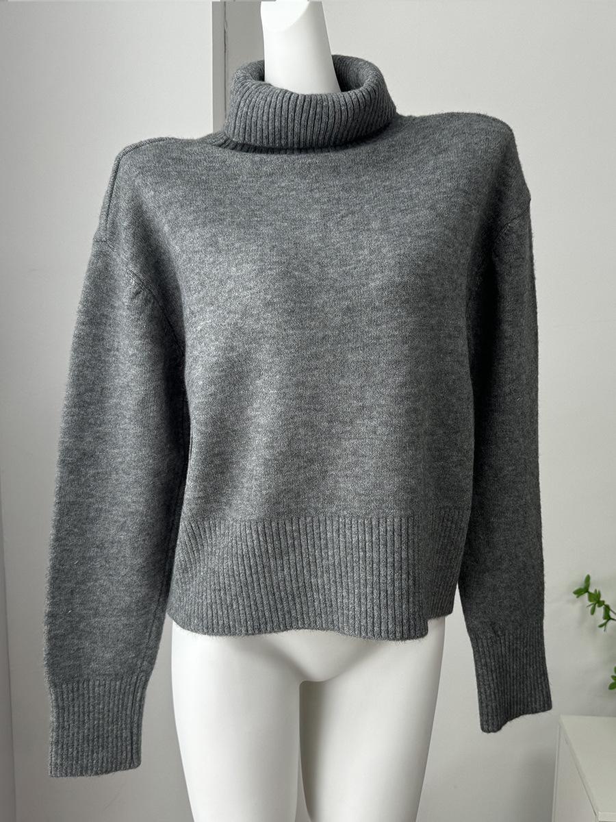 Suéter de Punto de Cuello Alto Corto de Color Puro Otoño e Invierno Europeo y Americano para Mujer, Suelto Casual, 2025 Nuevo Top Versátil Engrosado