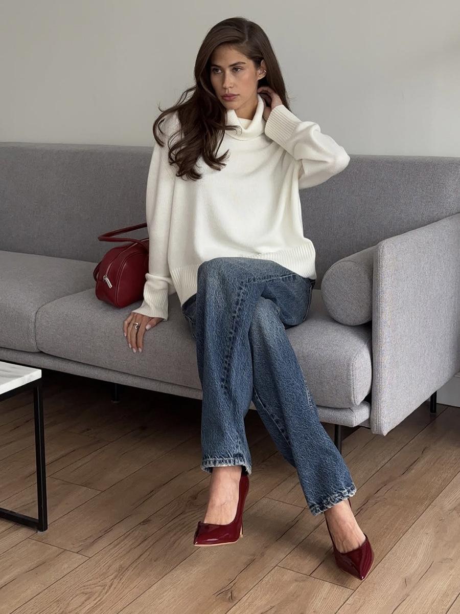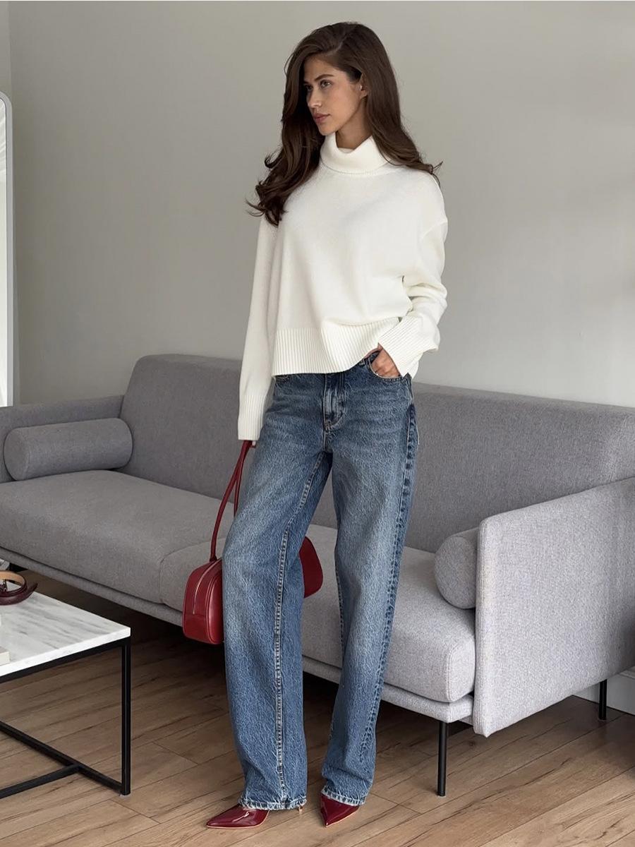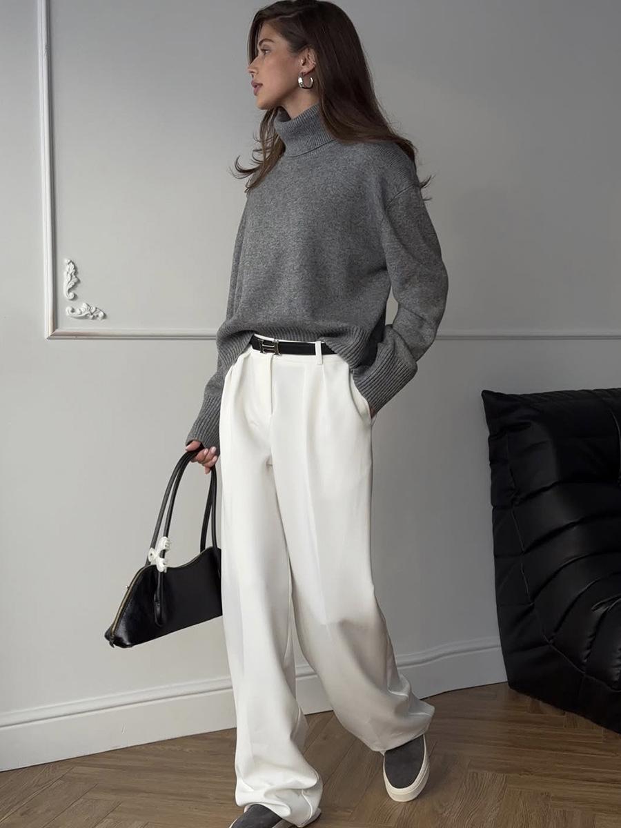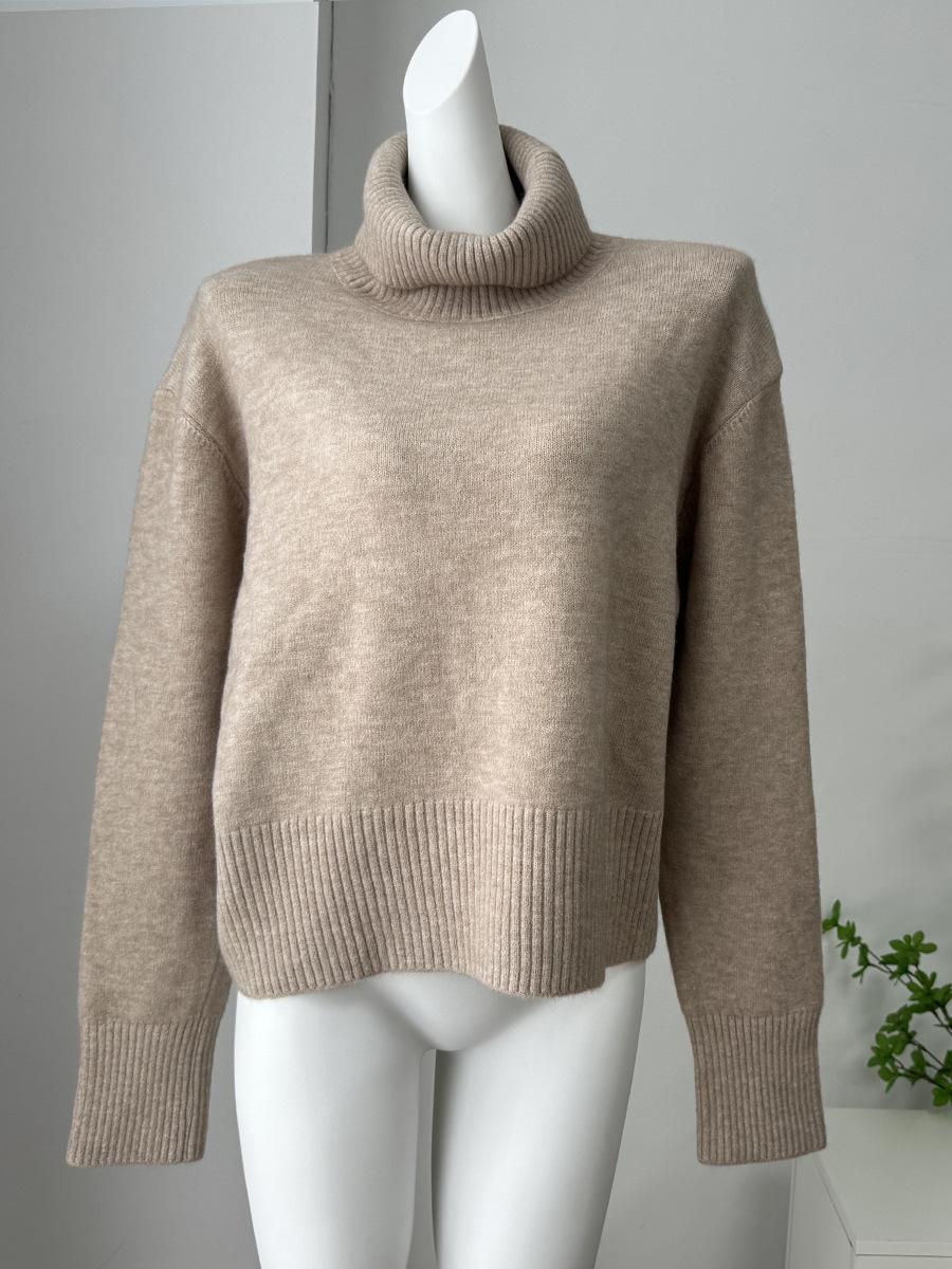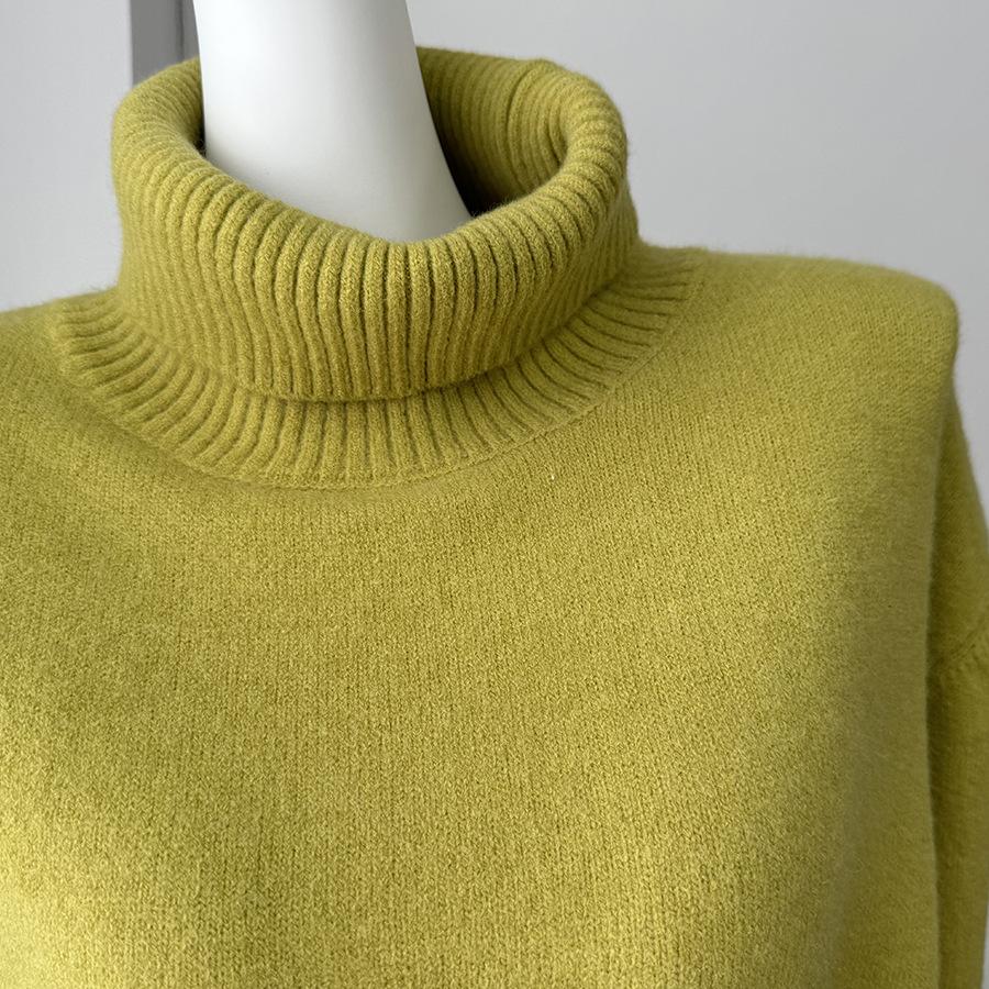 Suéter de Punto de Cuello Alto Corto de Color Puro Otoño e Invierno Europeo y Americano para Mujer, Suelto Casual, 2025 Nuevo Top Versátil Engrosado