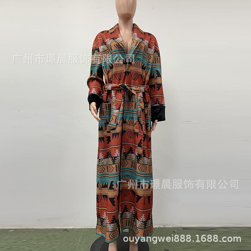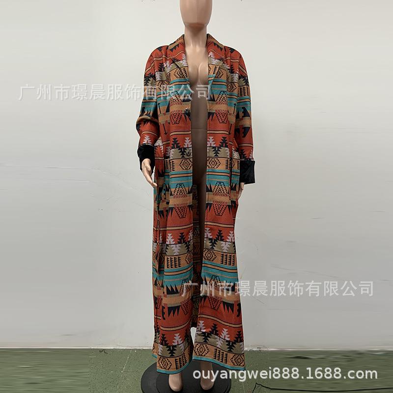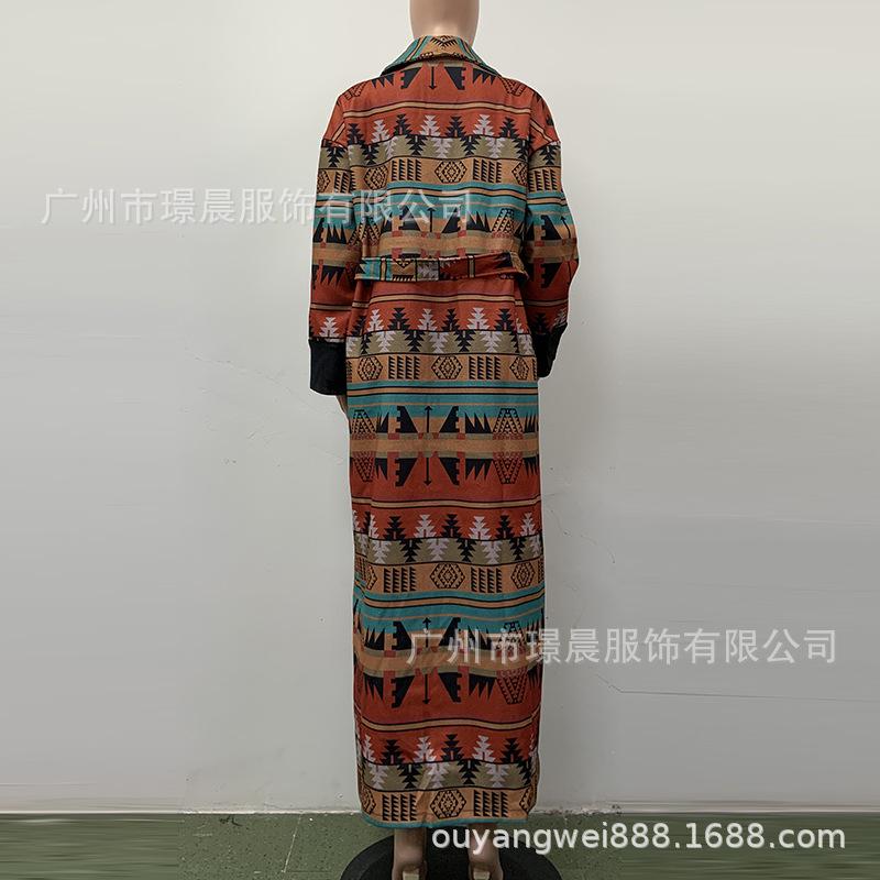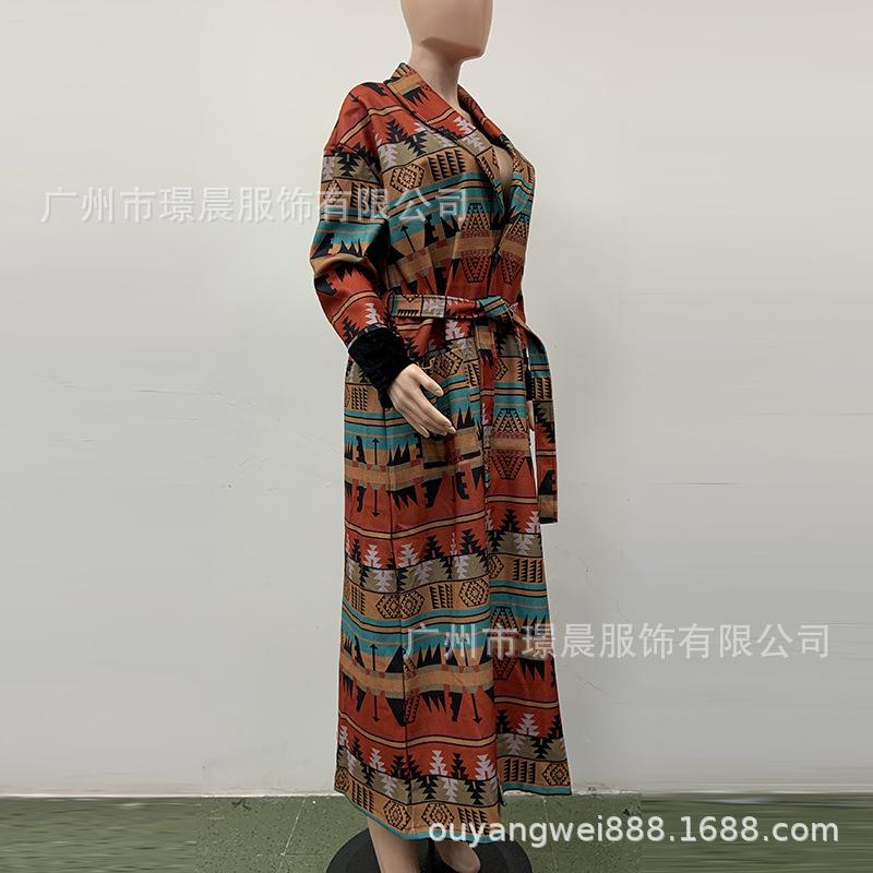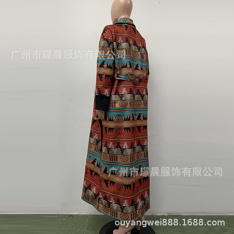 Yama 2022 Otoño Europeo y Americano Nuevo Comercio Exterior Abrigo Largo de Solapa Británica con Estampado Doble Cara para Mujer