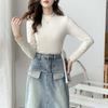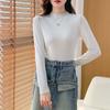 Camiseta de Fondo de Terciopelo para Mujer, Cuello Medio Alto, Terciopelo Engrosado, Cálida y Versátil, Top Interior de Manga Larga y Corte Slim para Mujer