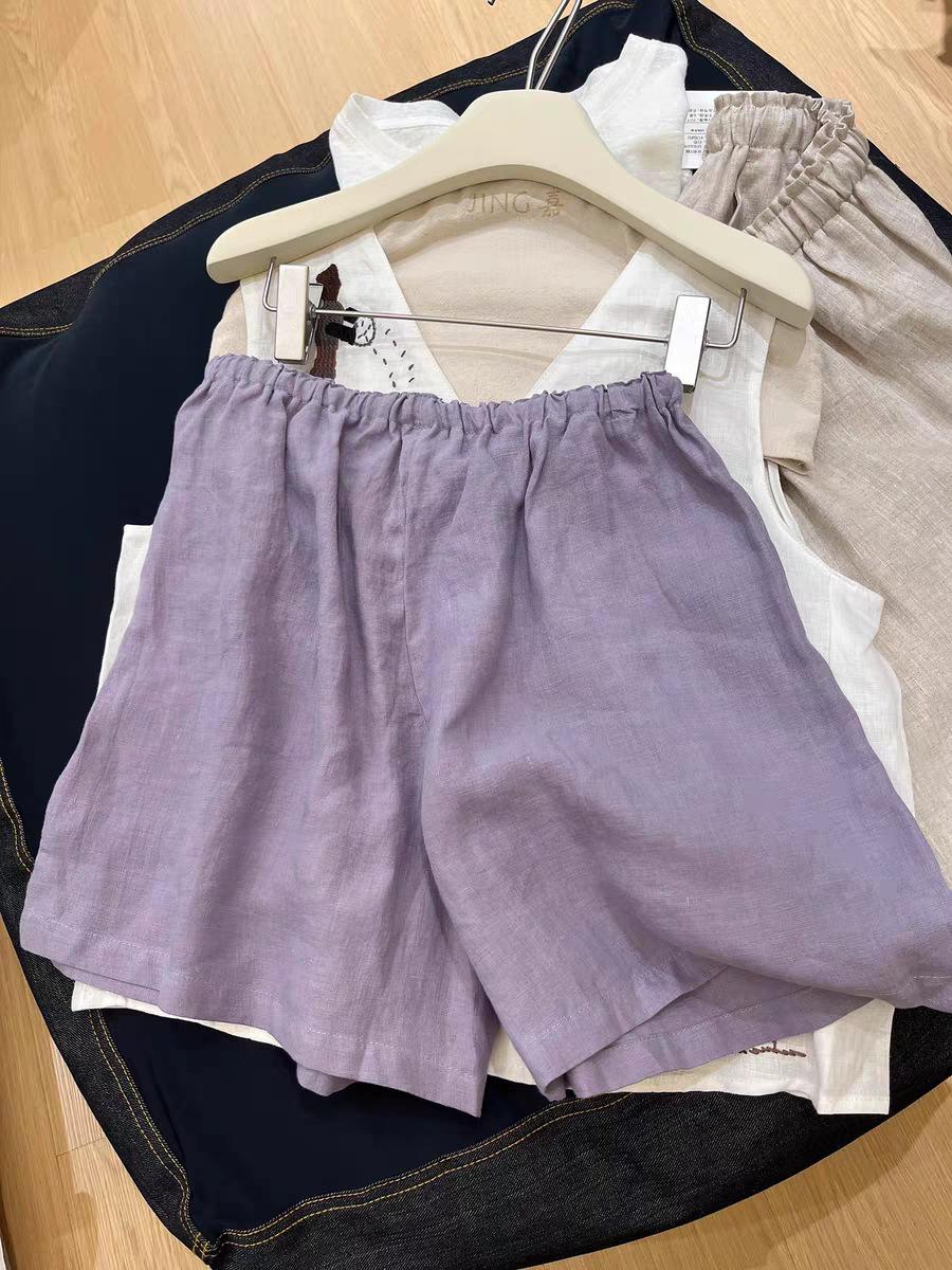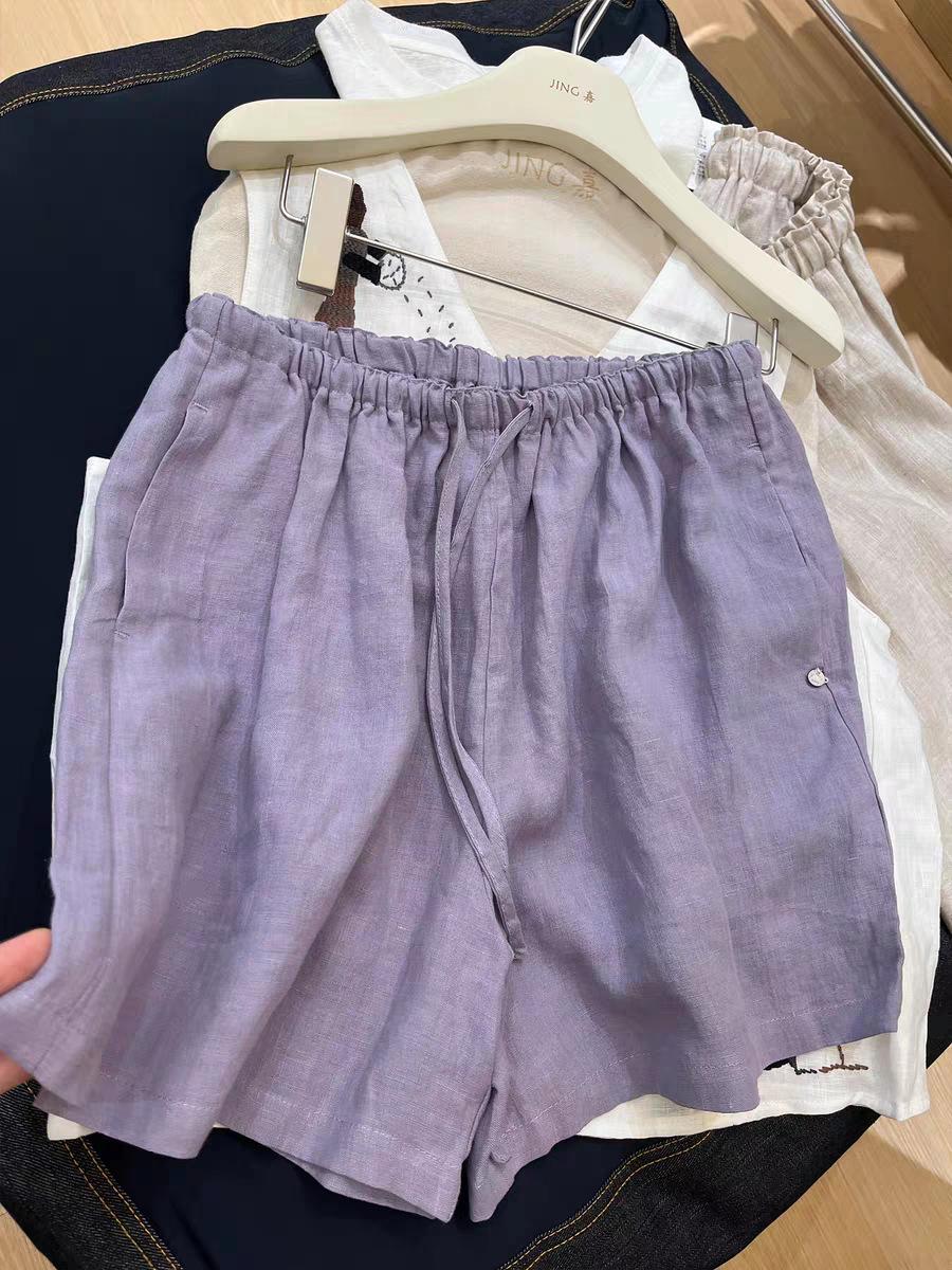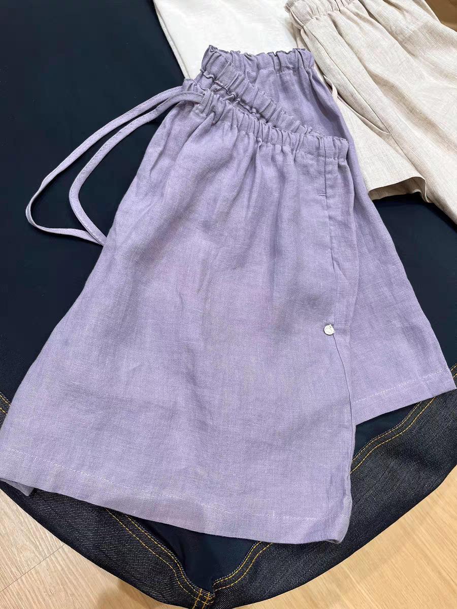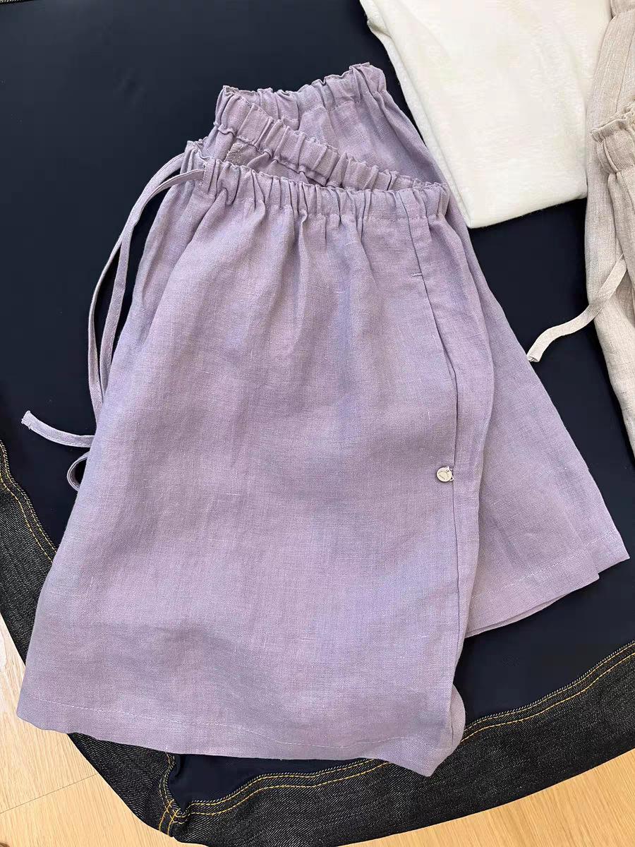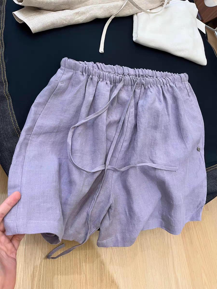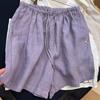 ¡Recomendación nivel CHAO! Shorts de lino morado de cintura alta super lindos para mujer verano holgados adelgazantes versátiles casuales de pierna ancha