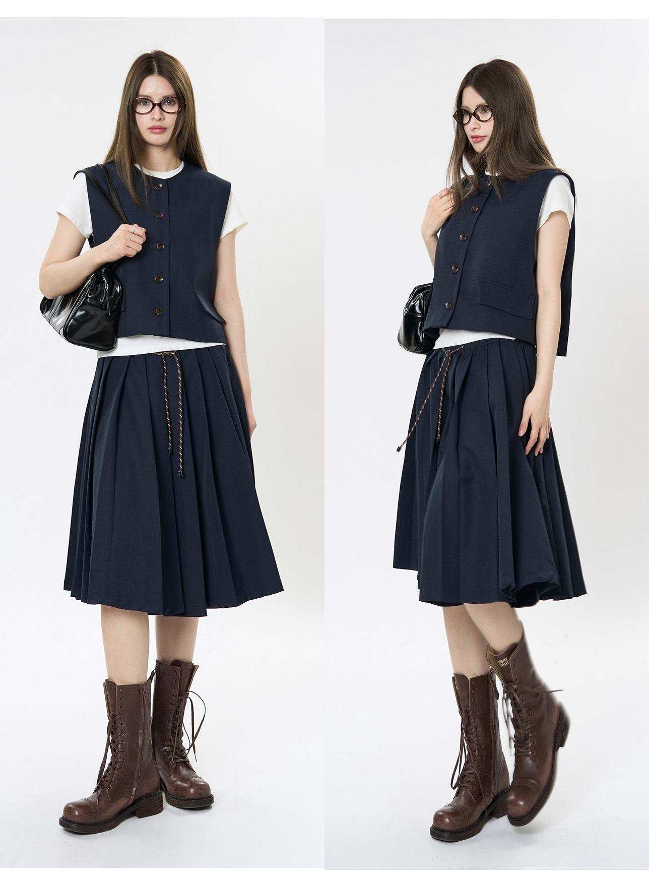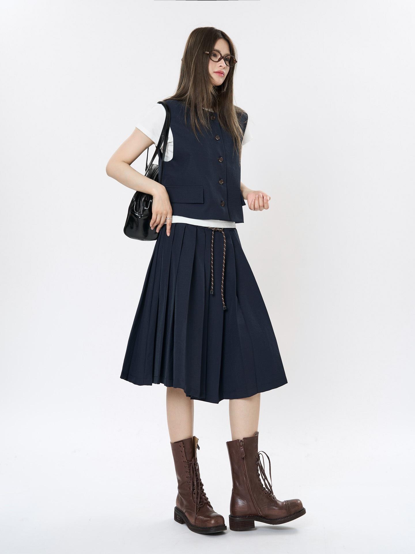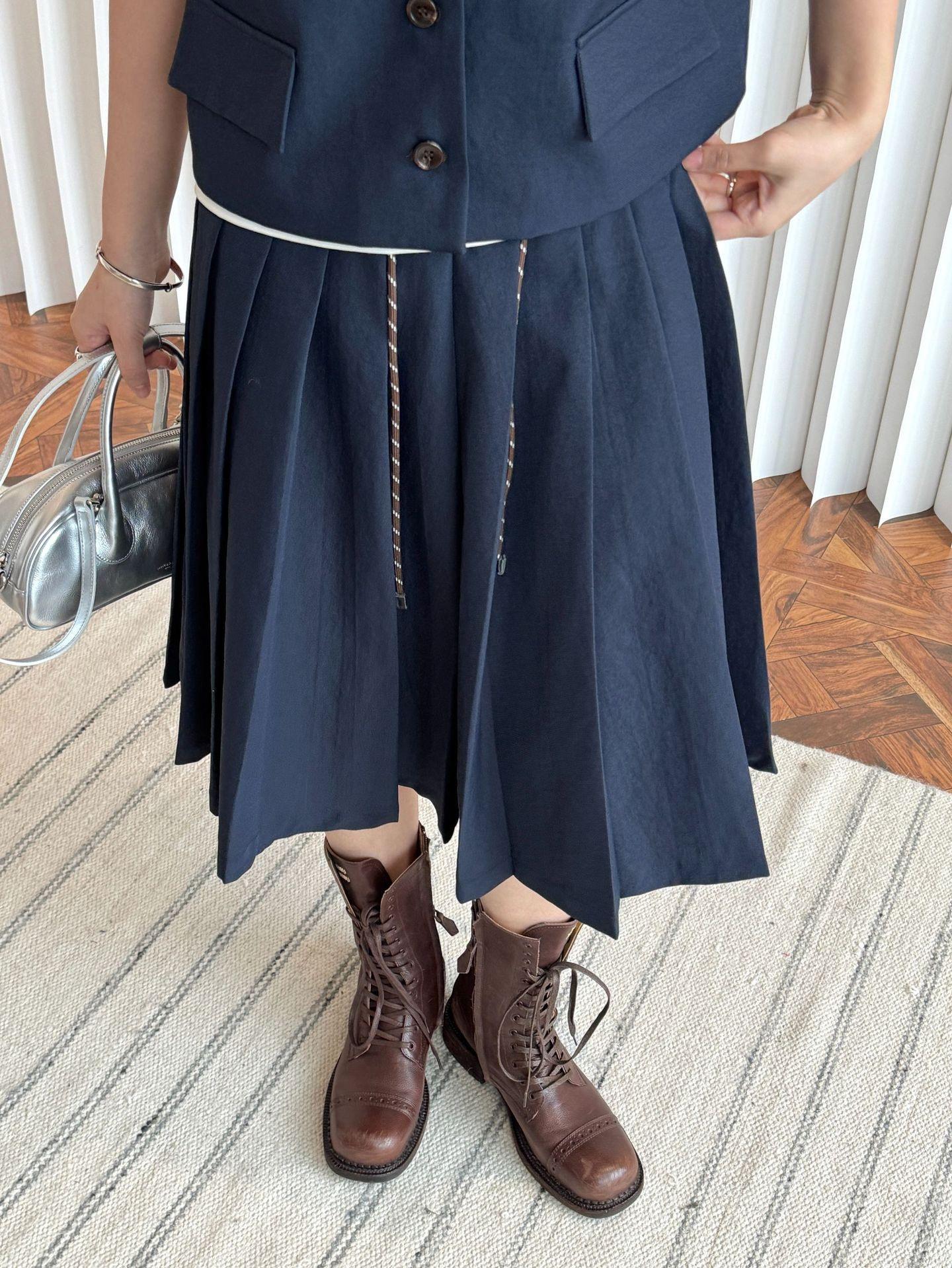 Nueva Falda Plisada en Contraste Retro Coreana para Primavera y Verano, Falda Casual Slim de Línea A Estéreo que Reduce la Edad para Mujer