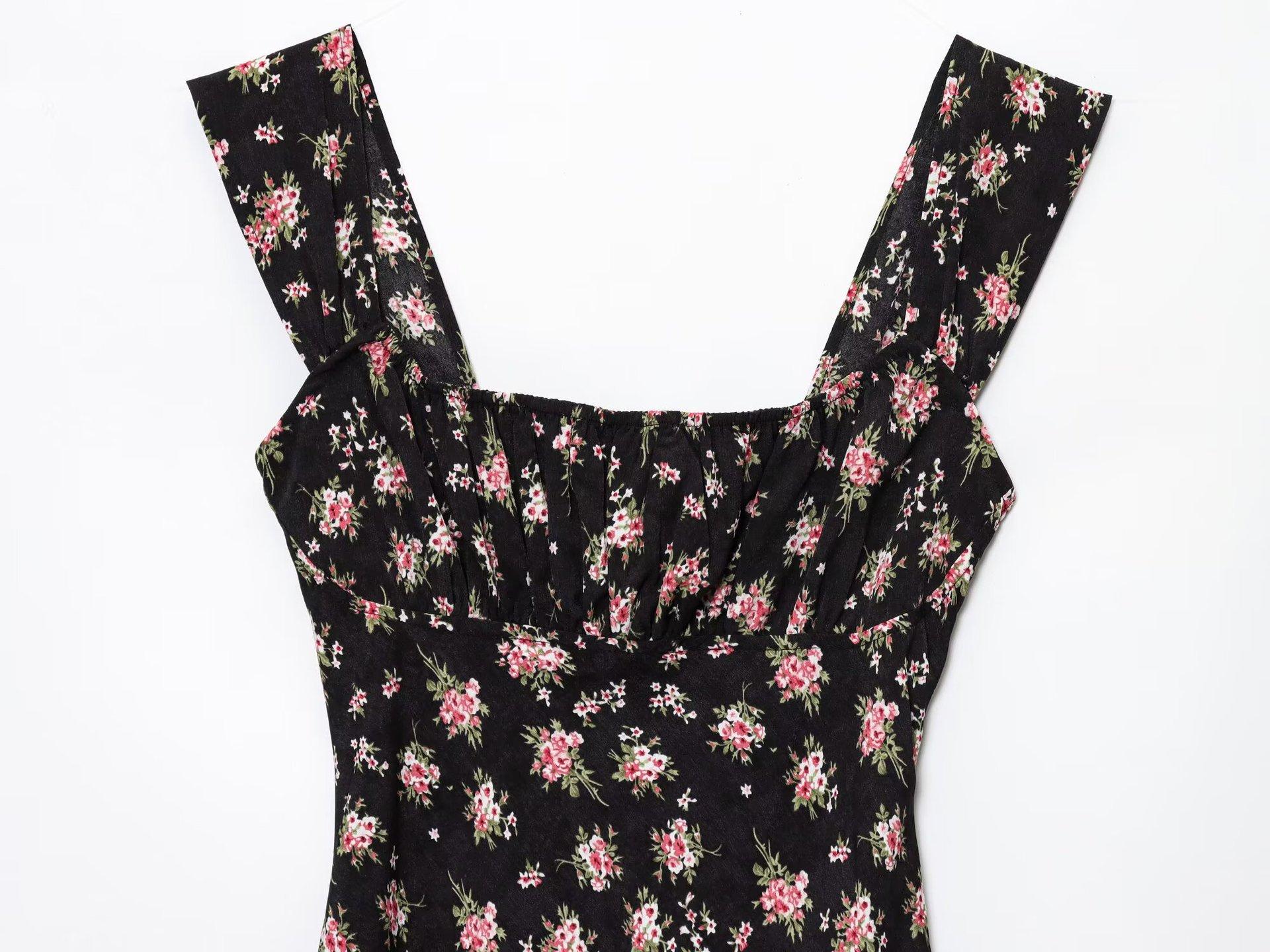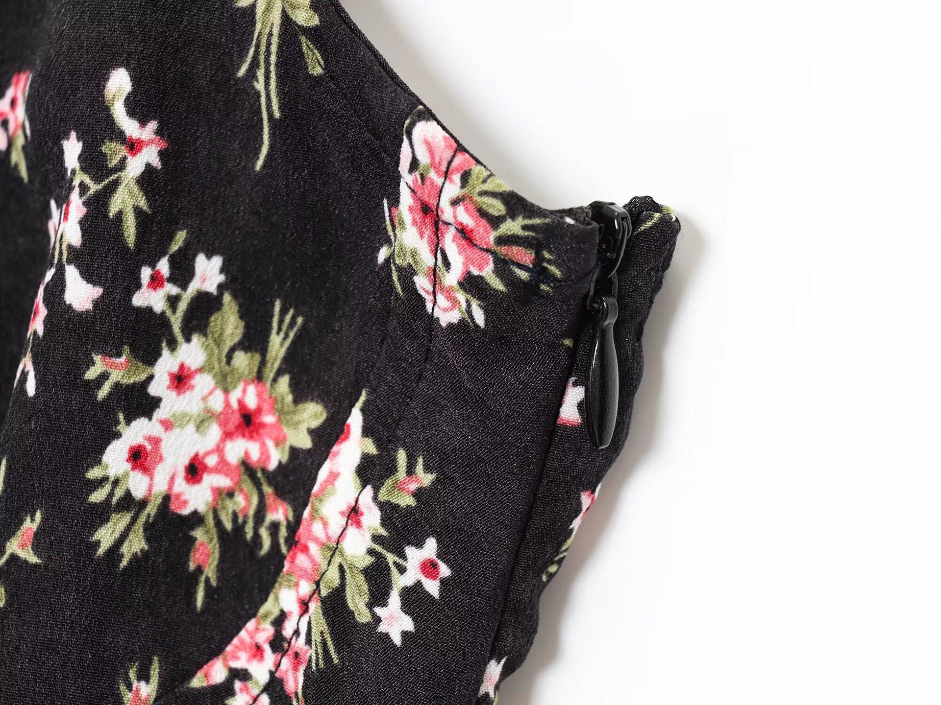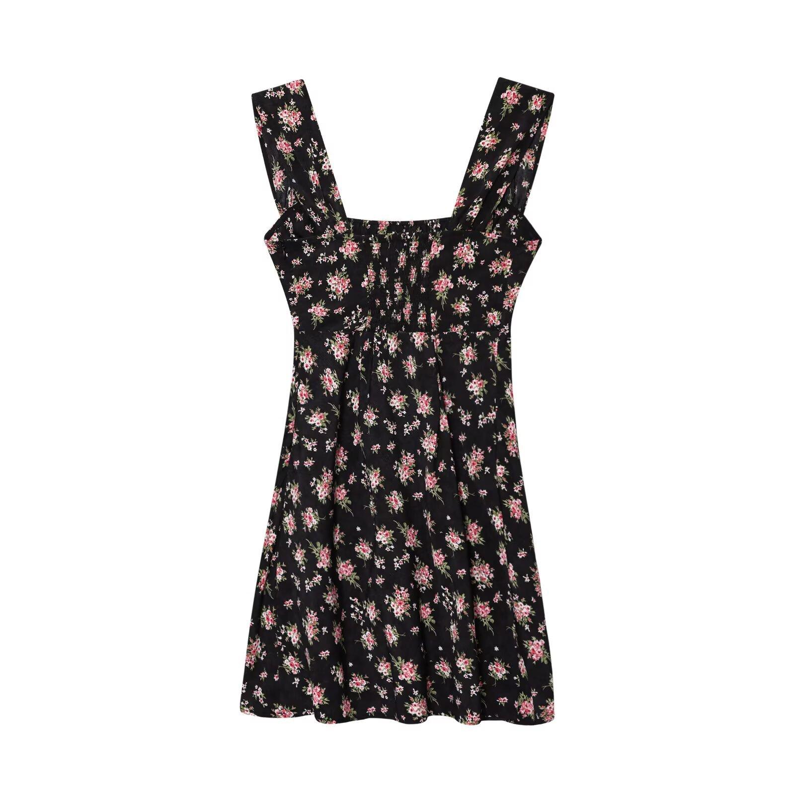 Exportación Transfronteriza Ropa de Mujer 2025 Verano Estilo Europeo y Americano Cintura Línea A Vestido Corto Floral Ancho con Tirantes para Mujer E490026
