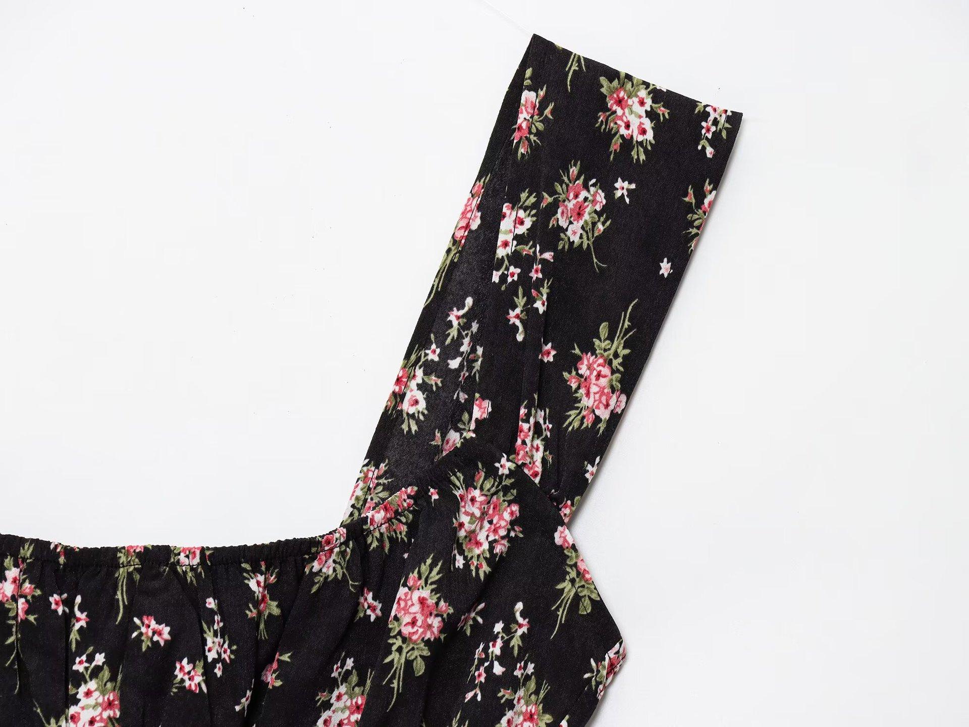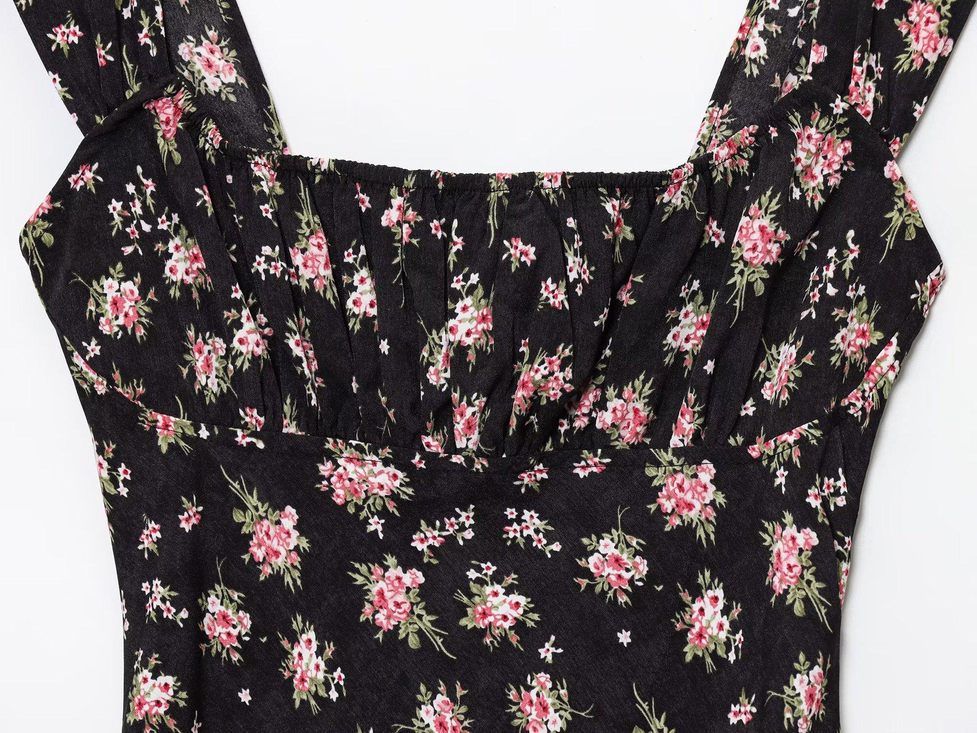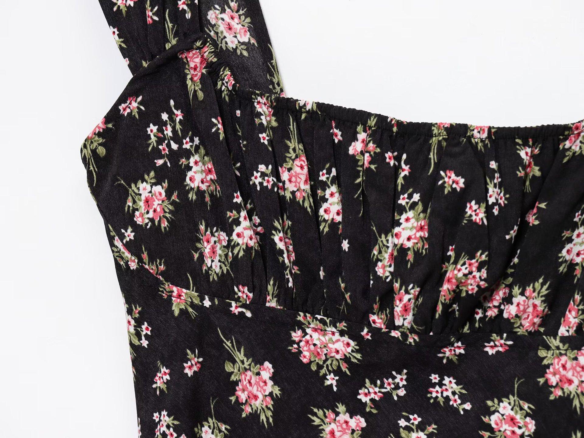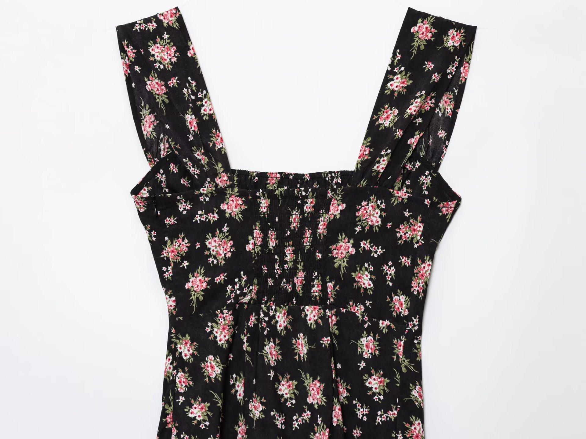 Exportación Transfronteriza Ropa de Mujer 2025 Verano Estilo Europeo y Americano Cintura Línea A Vestido Corto Floral Ancho con Tirantes para Mujer E490026