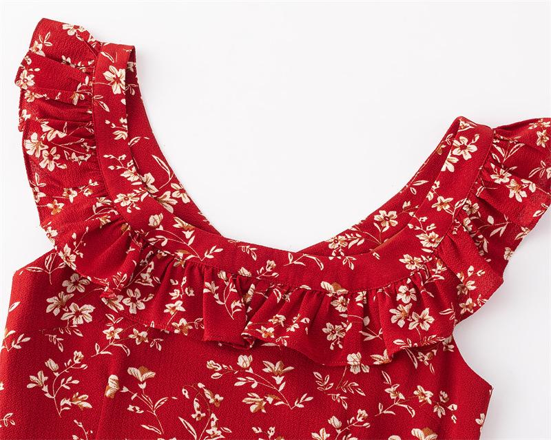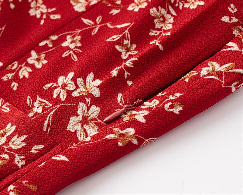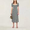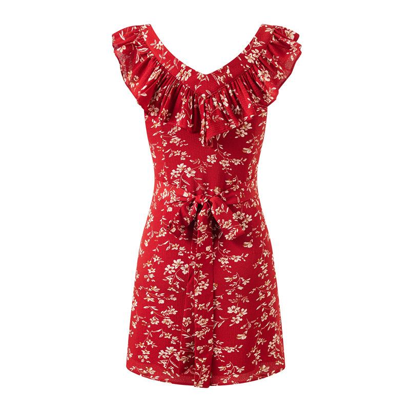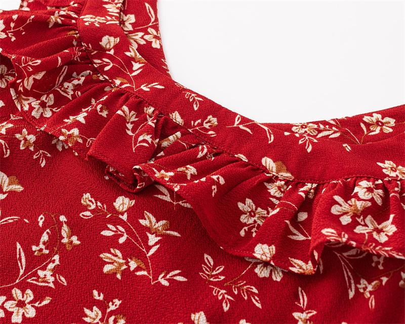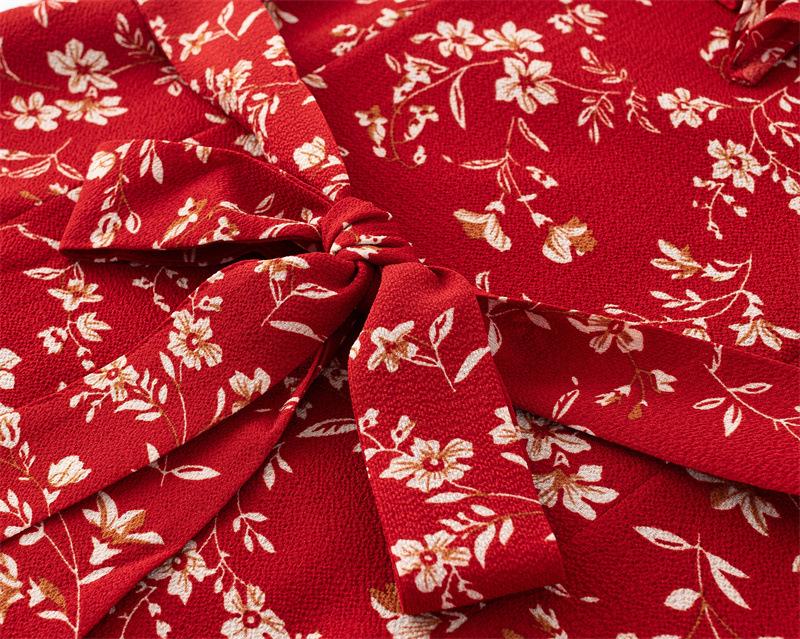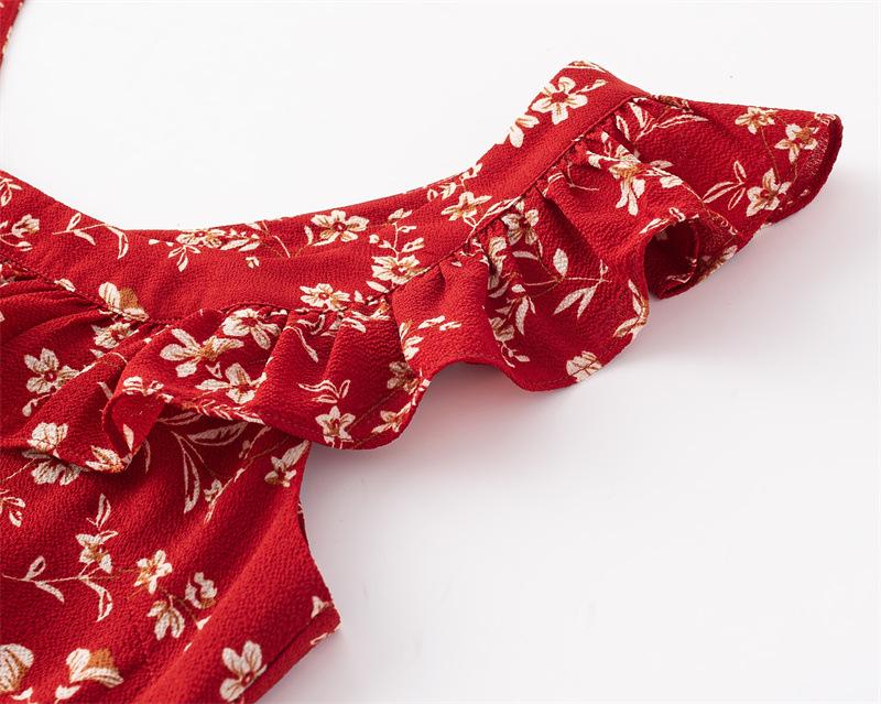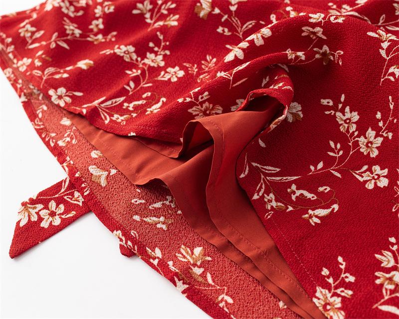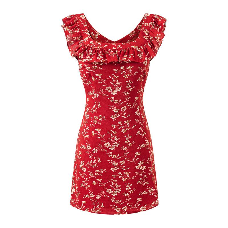 Vestido Francês Doce e Picante Decote Quadrado Babados Estampado Verão Novo Cinto na Cintura Emagrecimento Saia de Férias