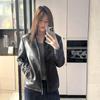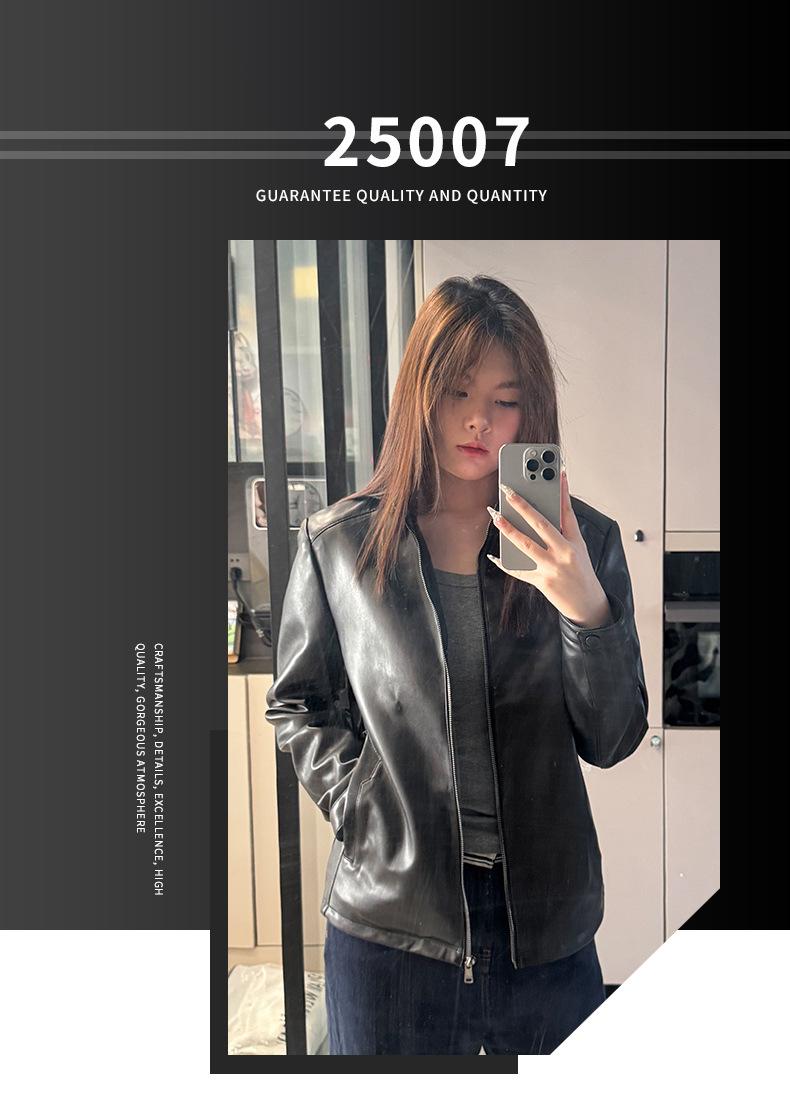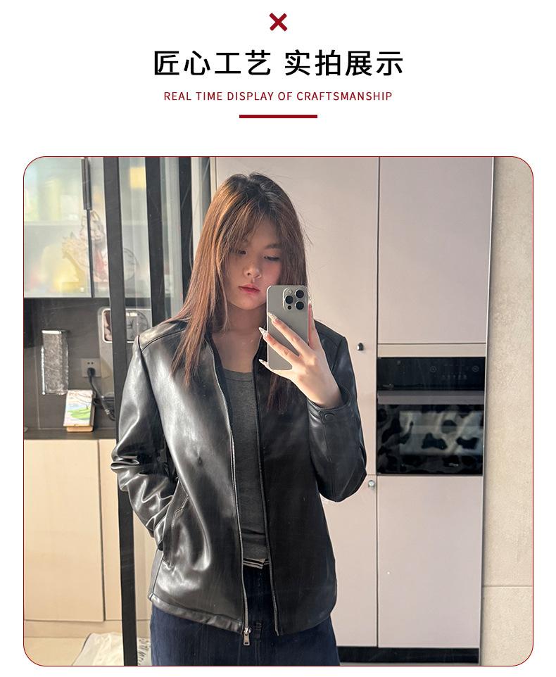 Chaqueta de Cuero Negra para Mujer 2025 Primavera y Otoño Nuevo Estilo de Alta Gama Americana Retro Chaqueta de Motociclista Fabricante Estilo Retro