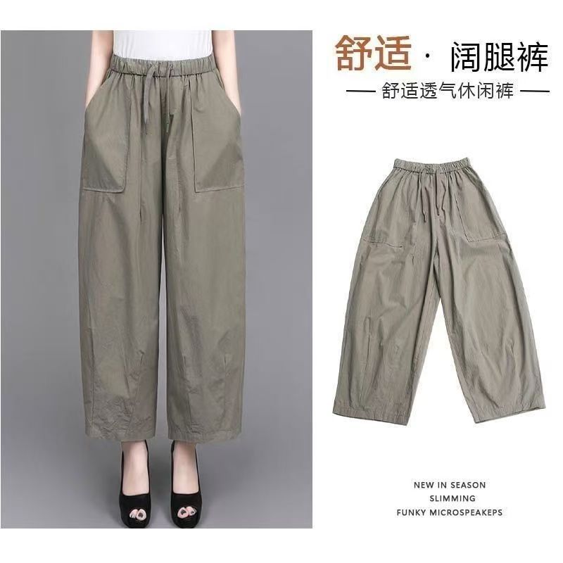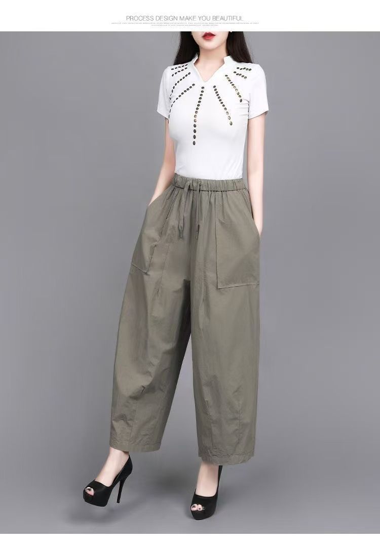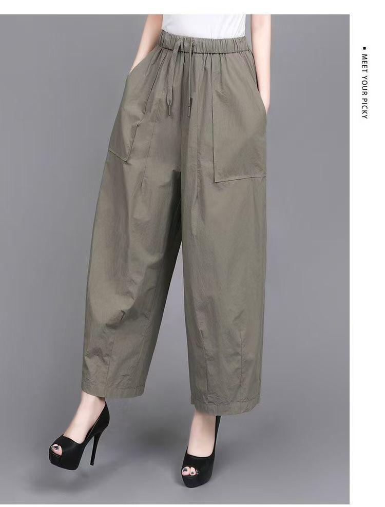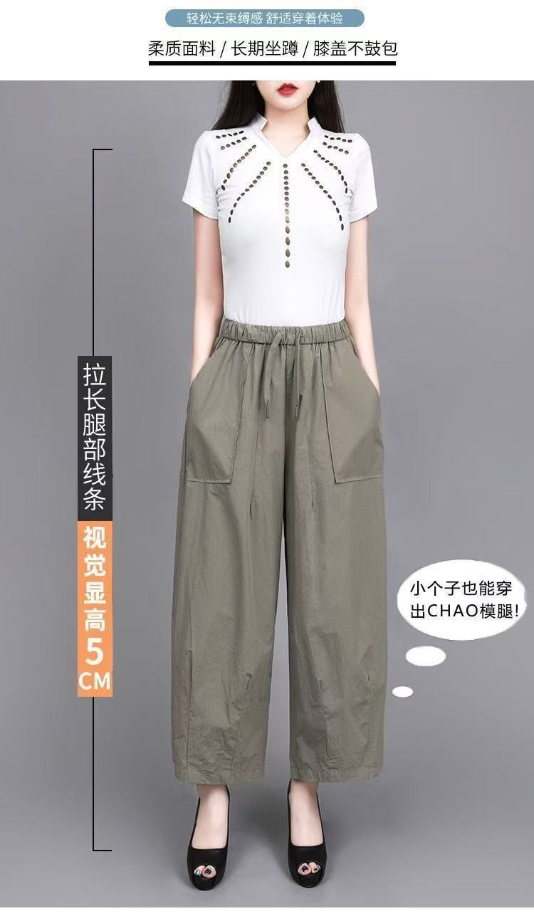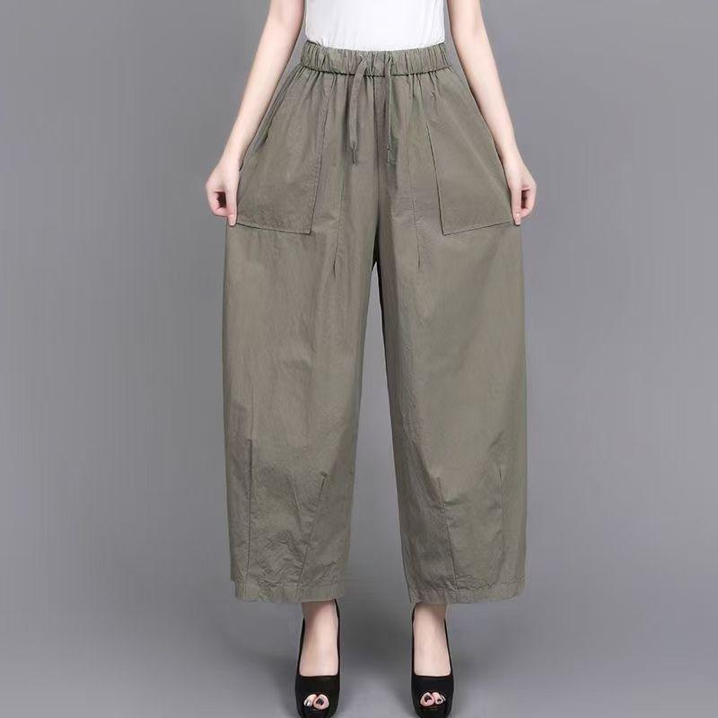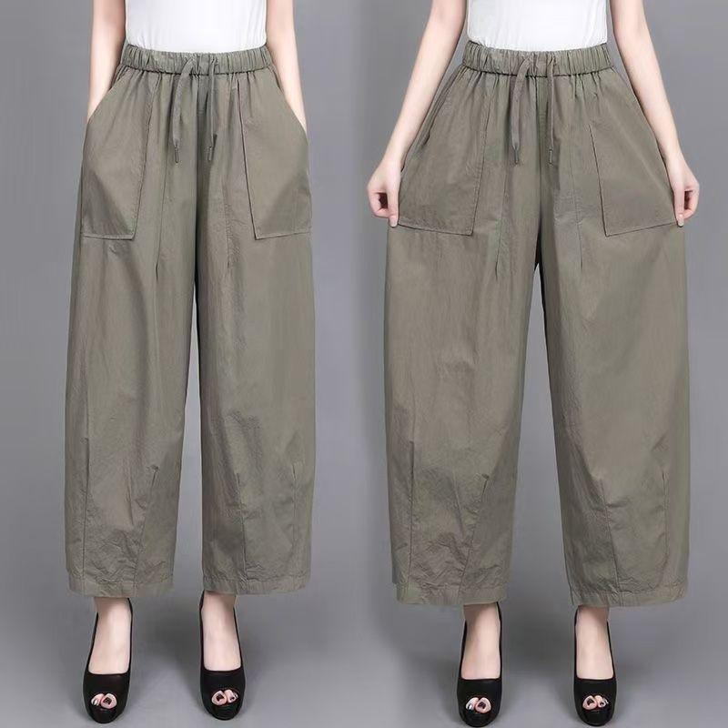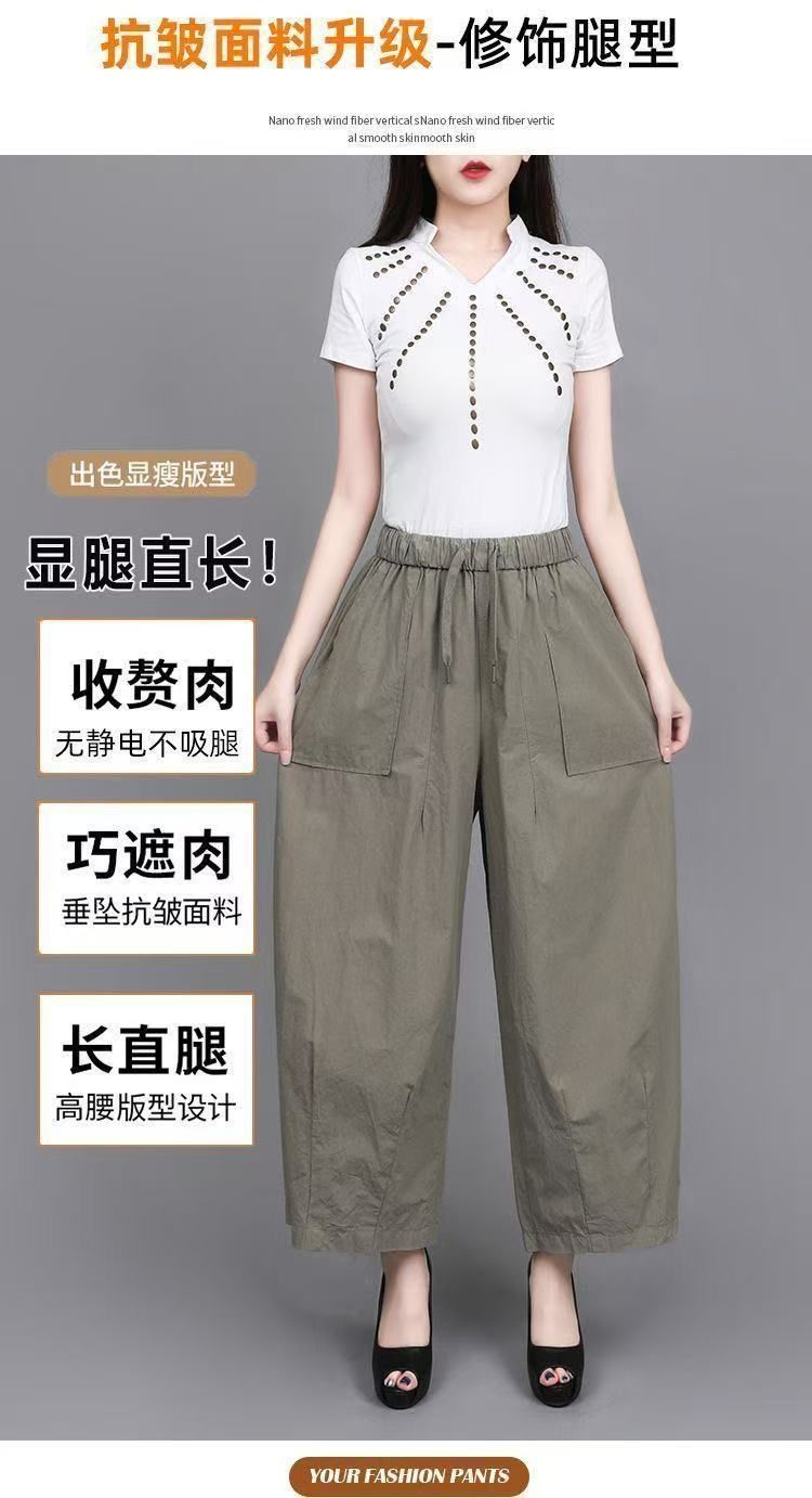 Moda de Verano Versátiles Pantalones Harem Delgados 2025 Talla Grande Pierna Ancha Caída Cintura Alta Adelgazantes Sueltos Casuales Pantalones Recortados