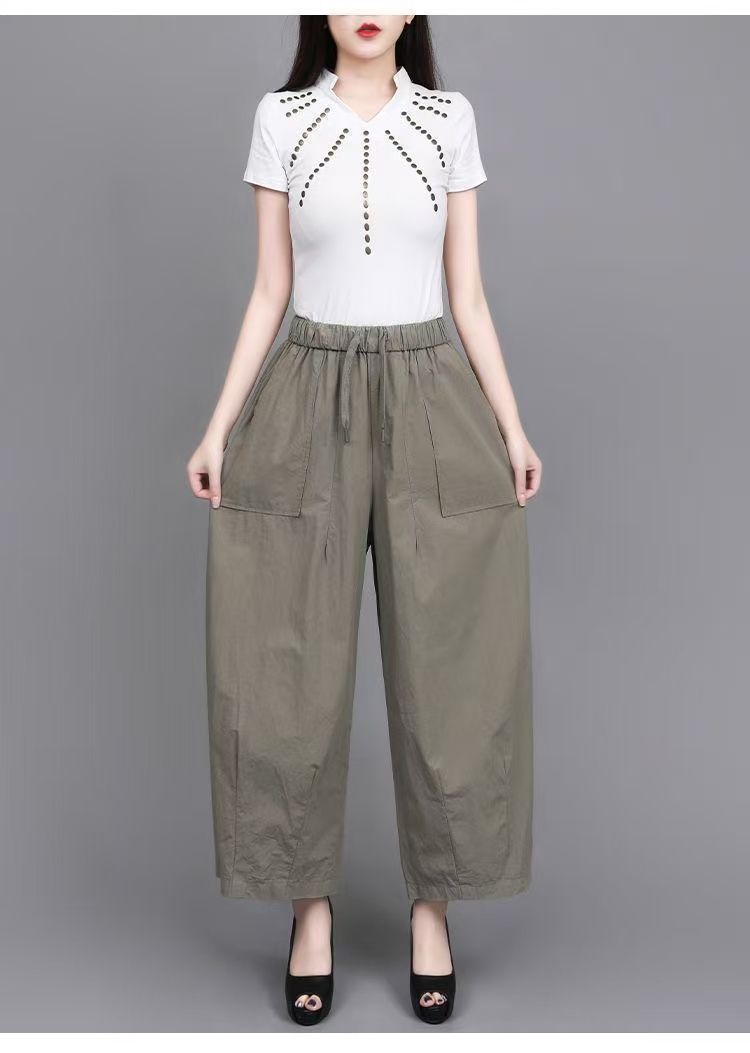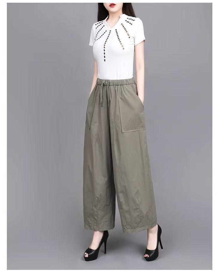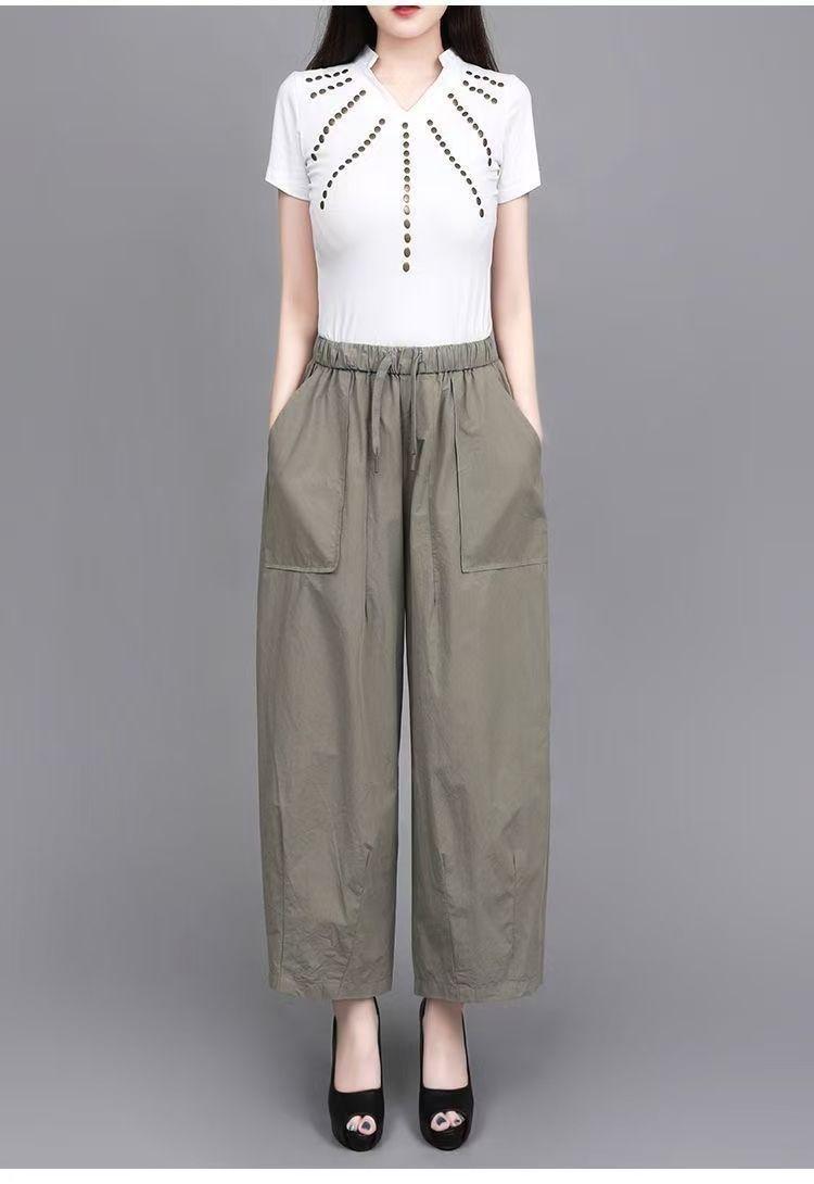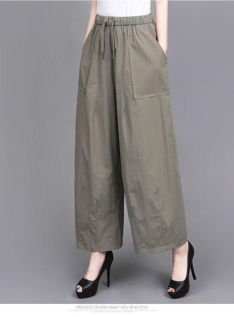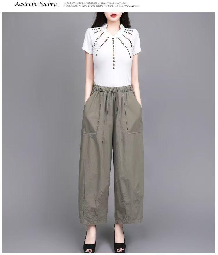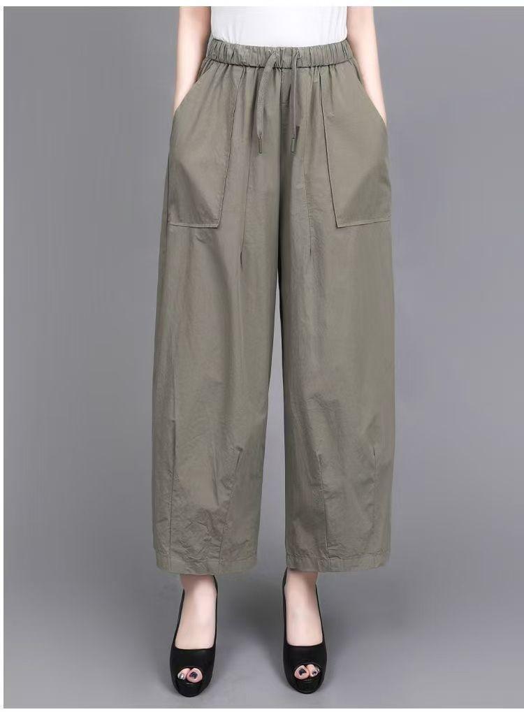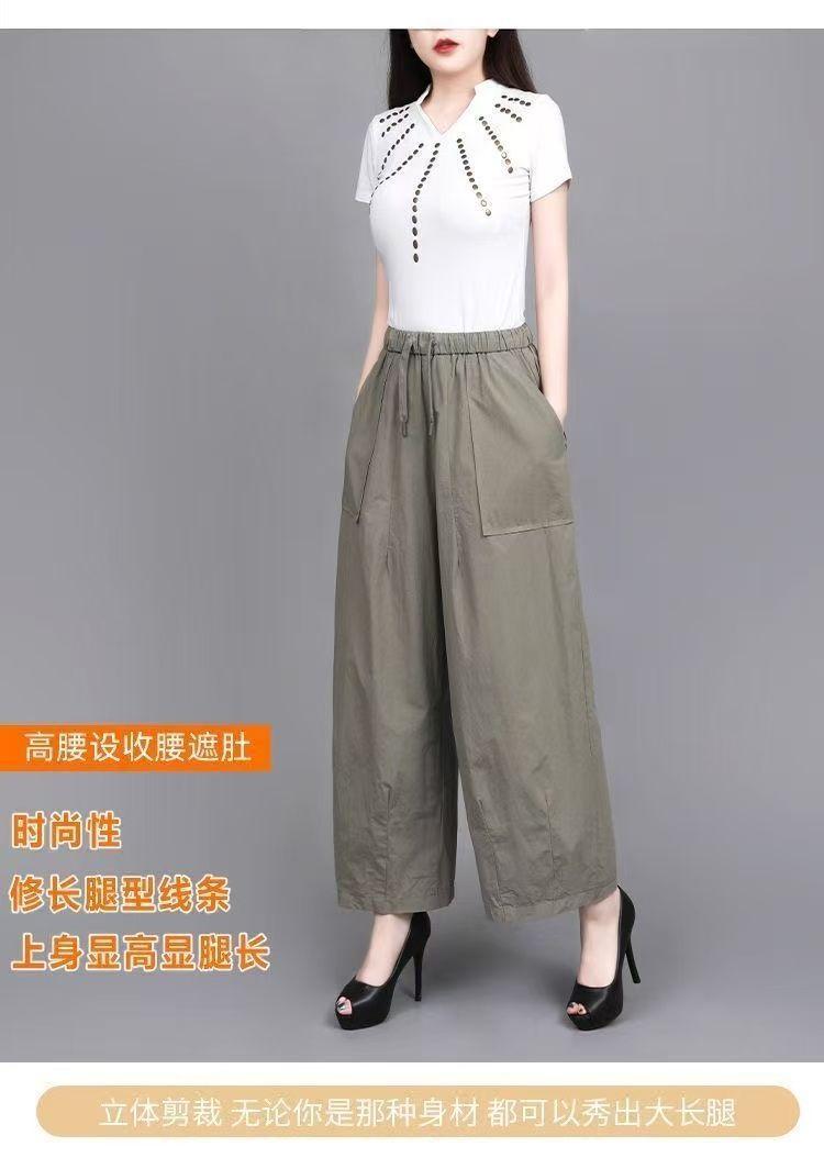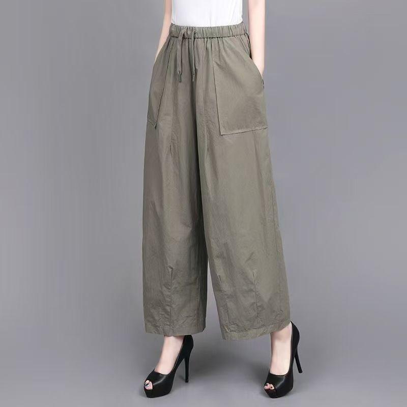 Moda de Verano Versátiles Pantalones Harem Delgados 2025 Talla Grande Pierna Ancha Caída Cintura Alta Adelgazantes Sueltos Casuales Pantalones Recortados