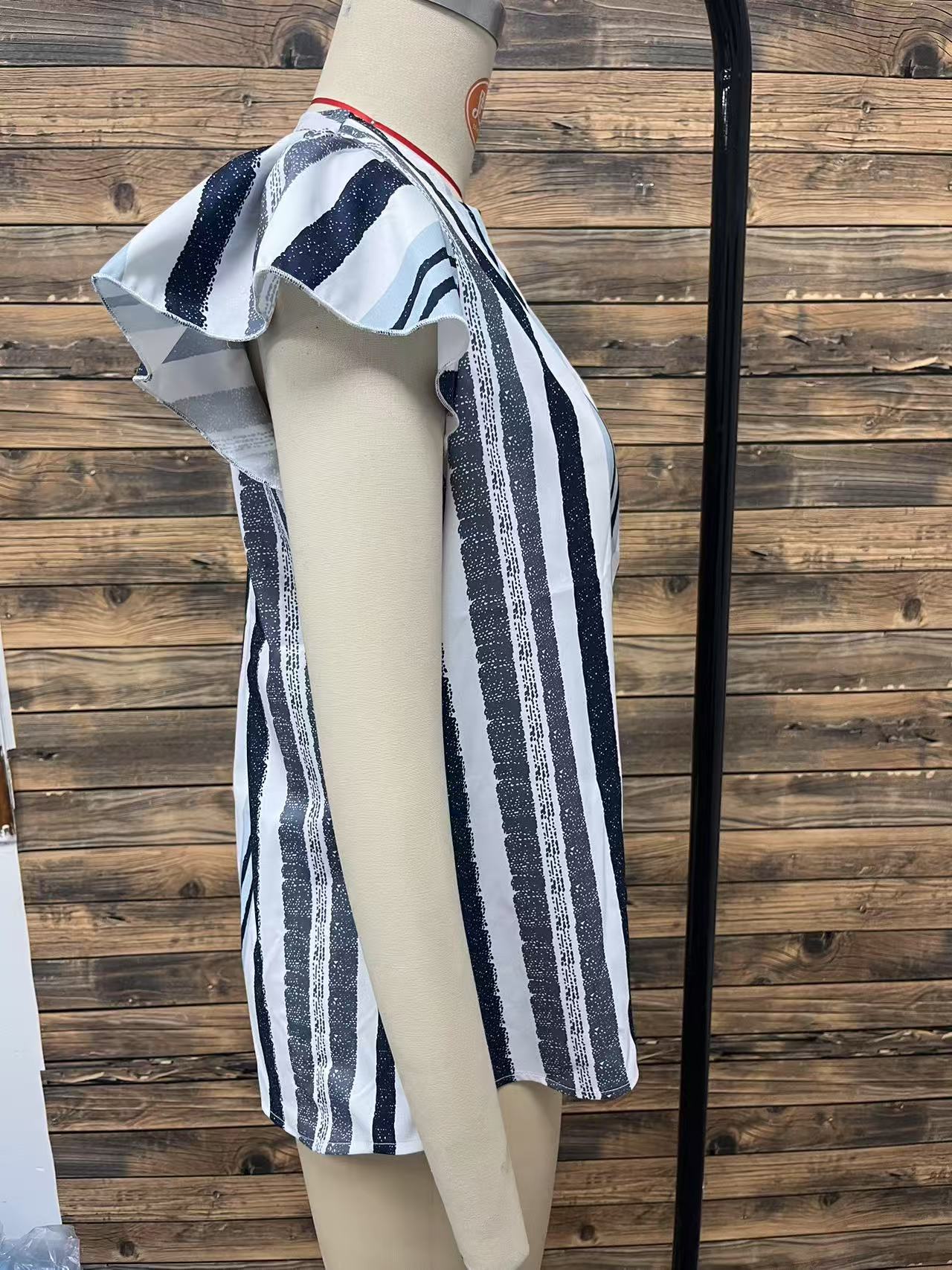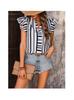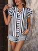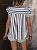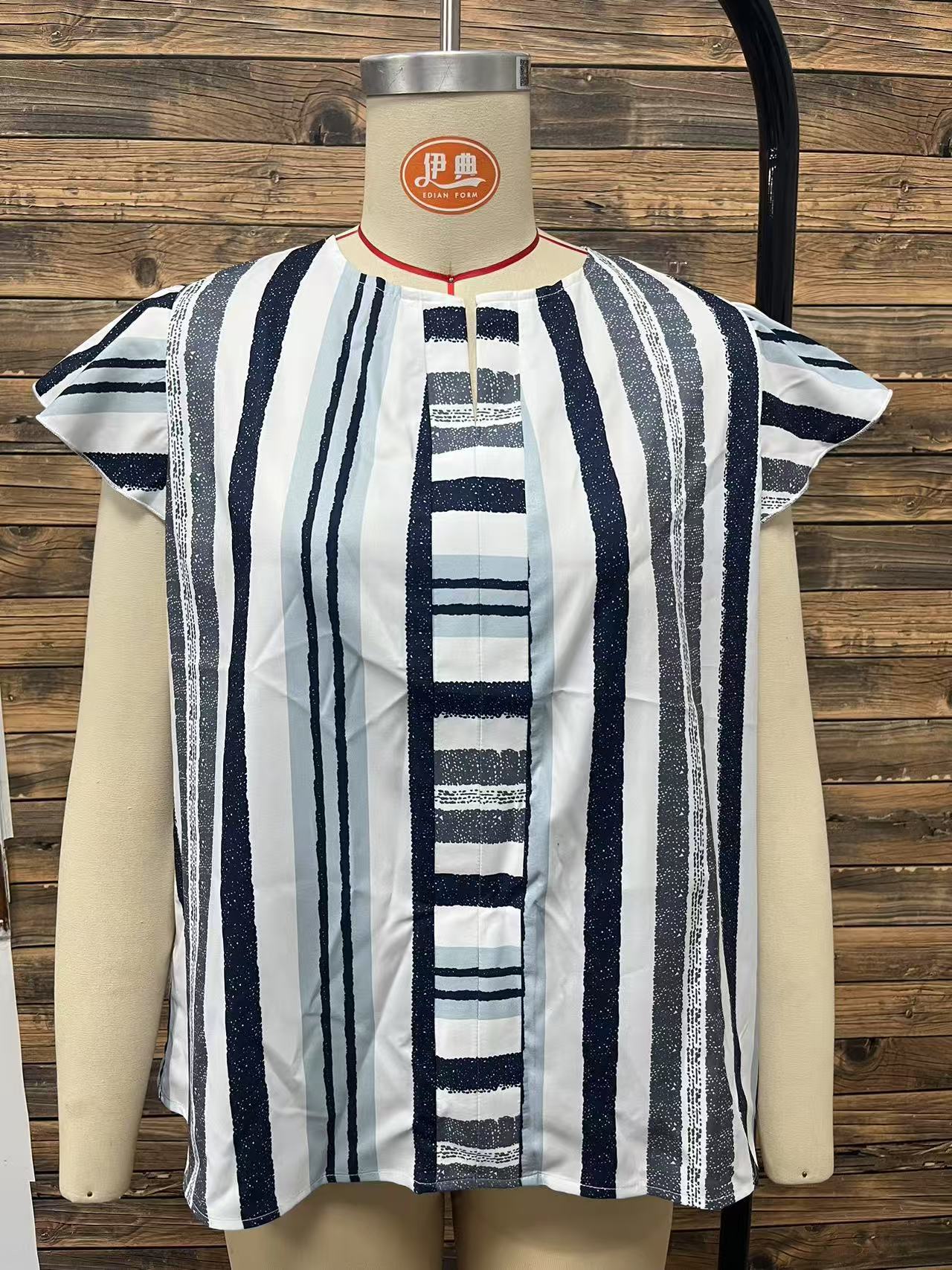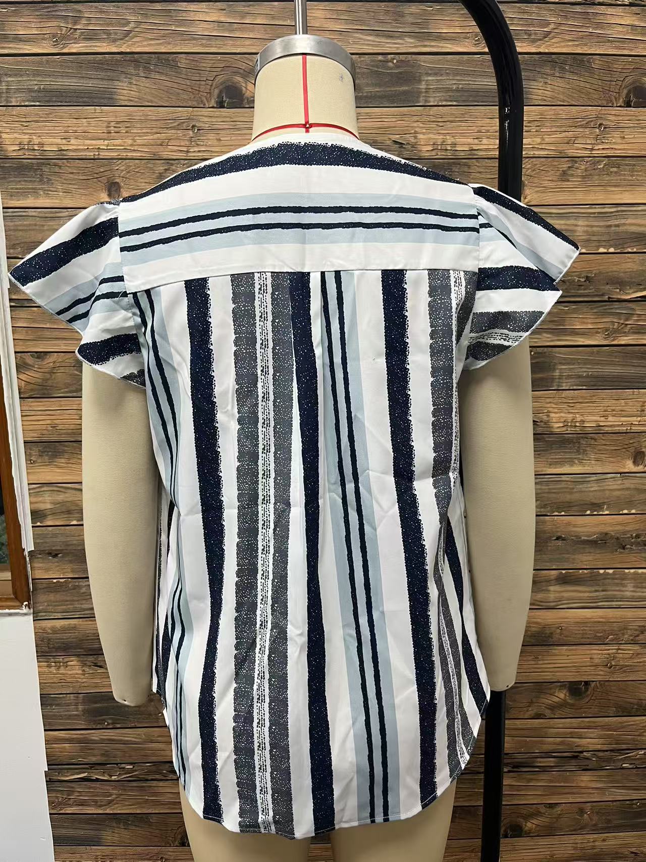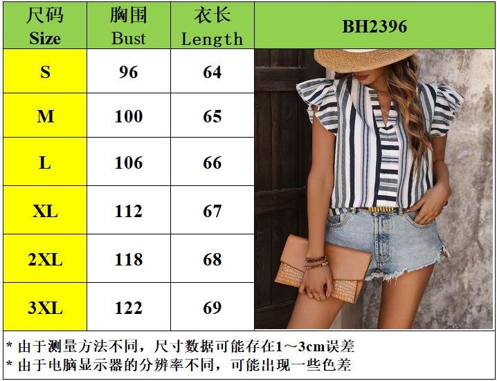 Verano Nuevo Top Contraste Rayas Costuras Camisa Europea y Americana Transfronteriza Camisa Pulóver de Manga Hoja de Loto para Mujer