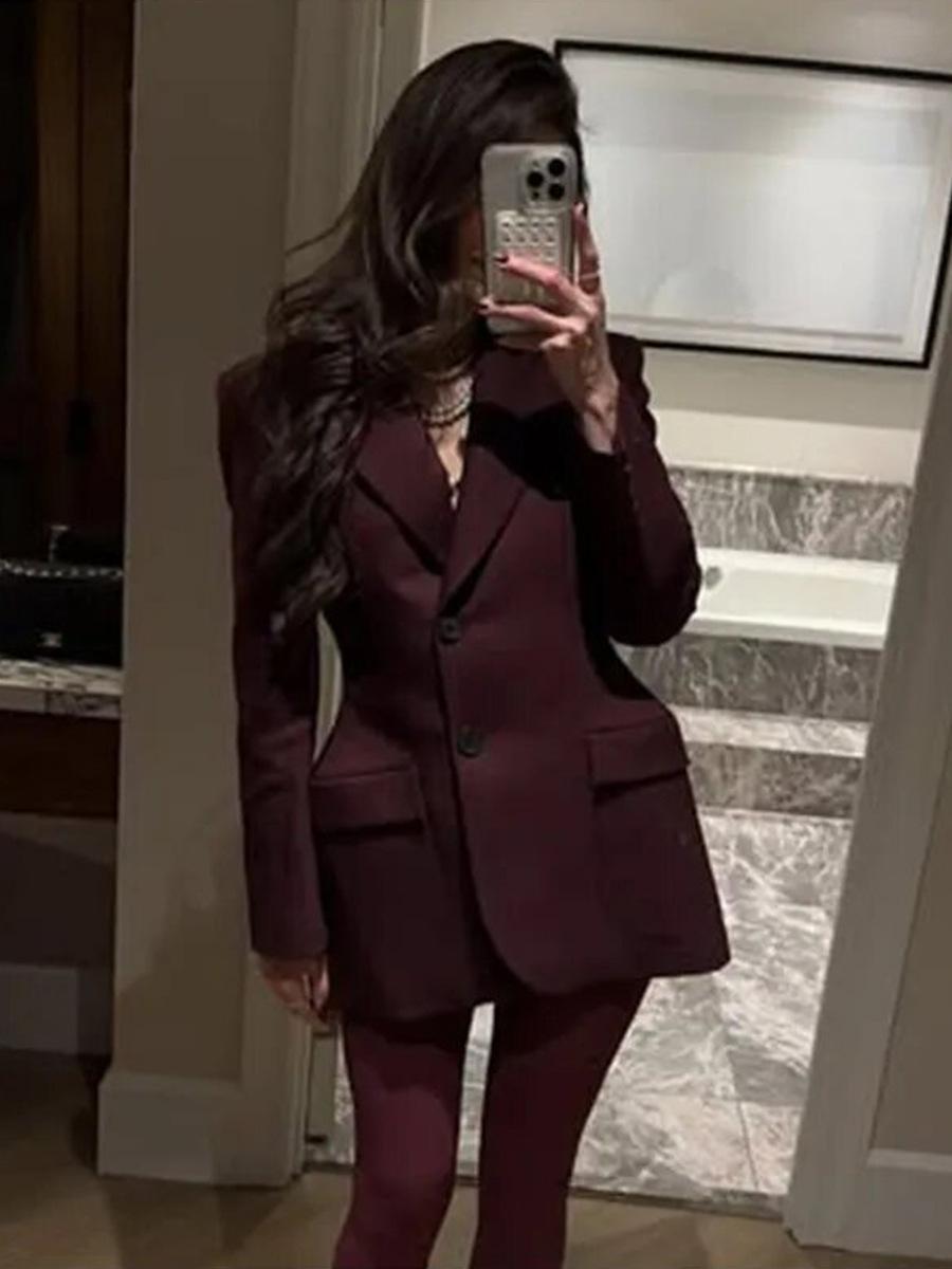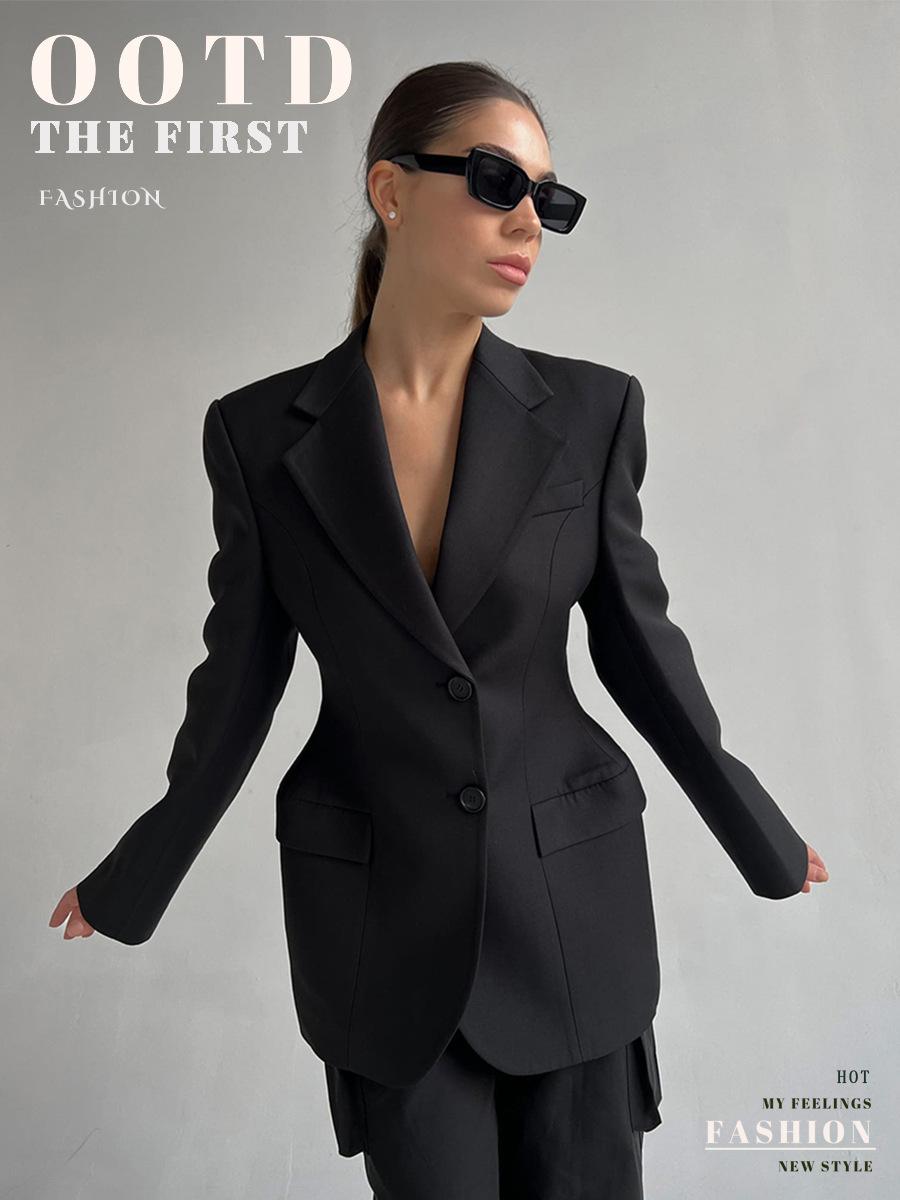 Traje Slim Transfronterizo para Mujer 2025 Otoño Cuello en V Ajuste Adelgazante Traje de Aspecto de Gama Alta Ins Traje de Chaqueta para Mujer