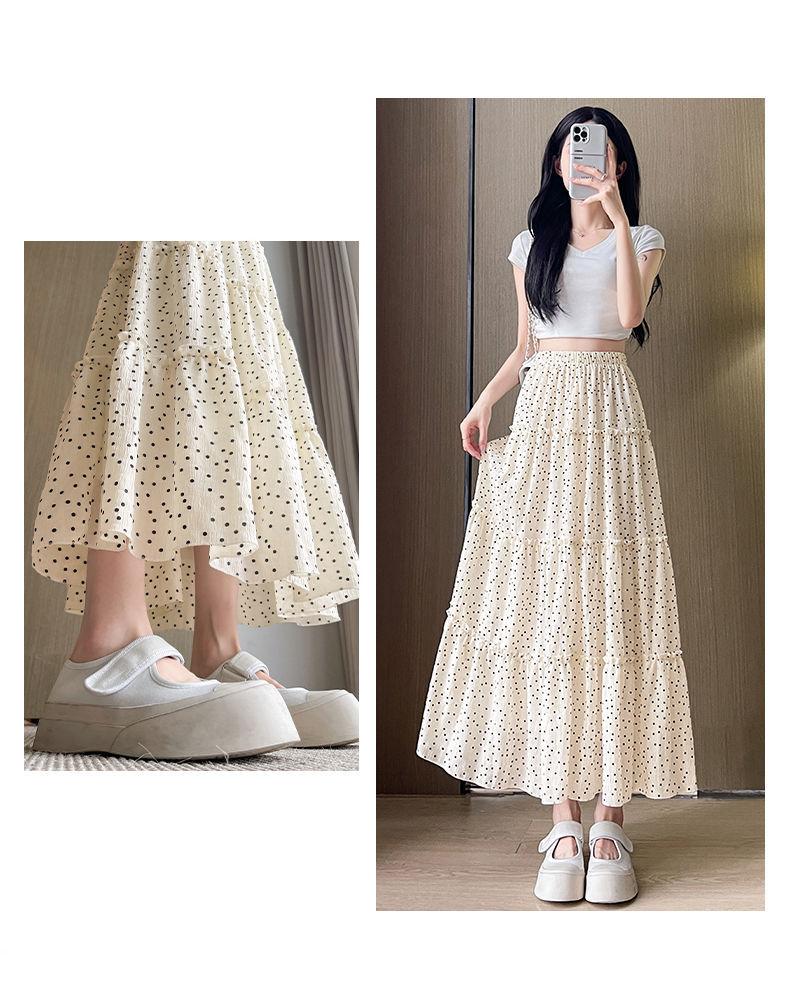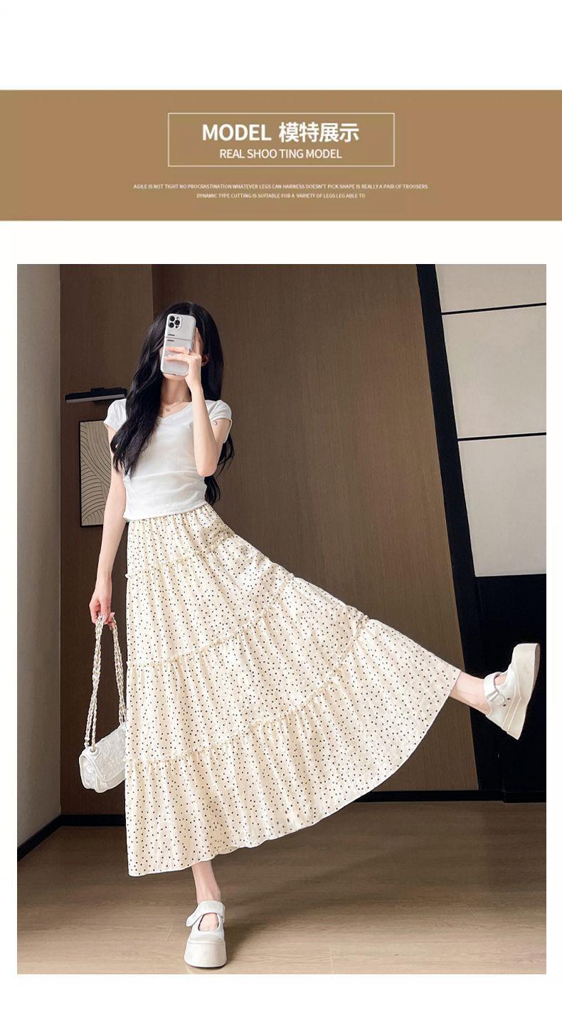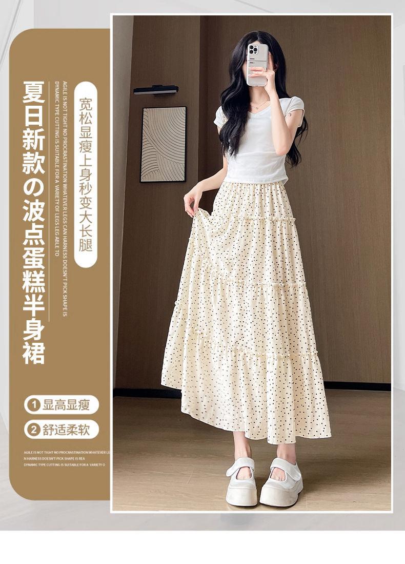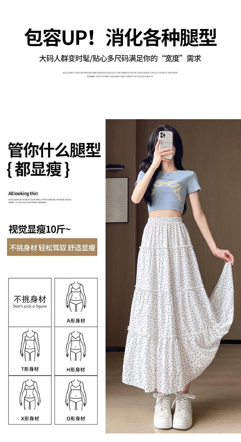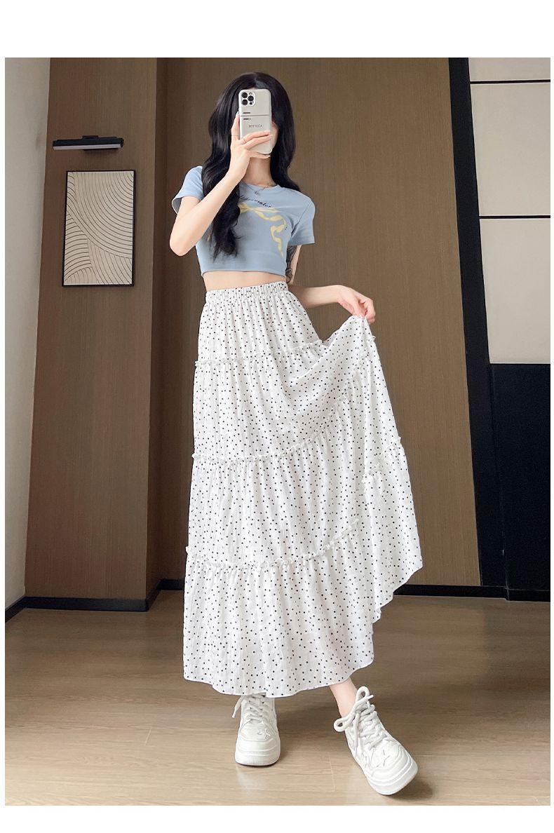 Falda de Lunares Verano 2024 para Mujer Nueva Cintura Alta Corte A Slim Media Longitud Versátil Falda Larga Blanca para Personas Pequeñas
