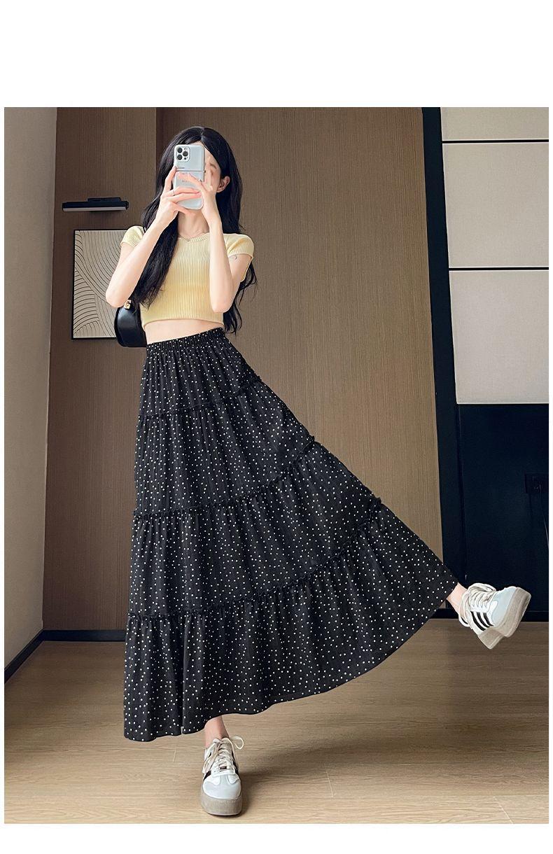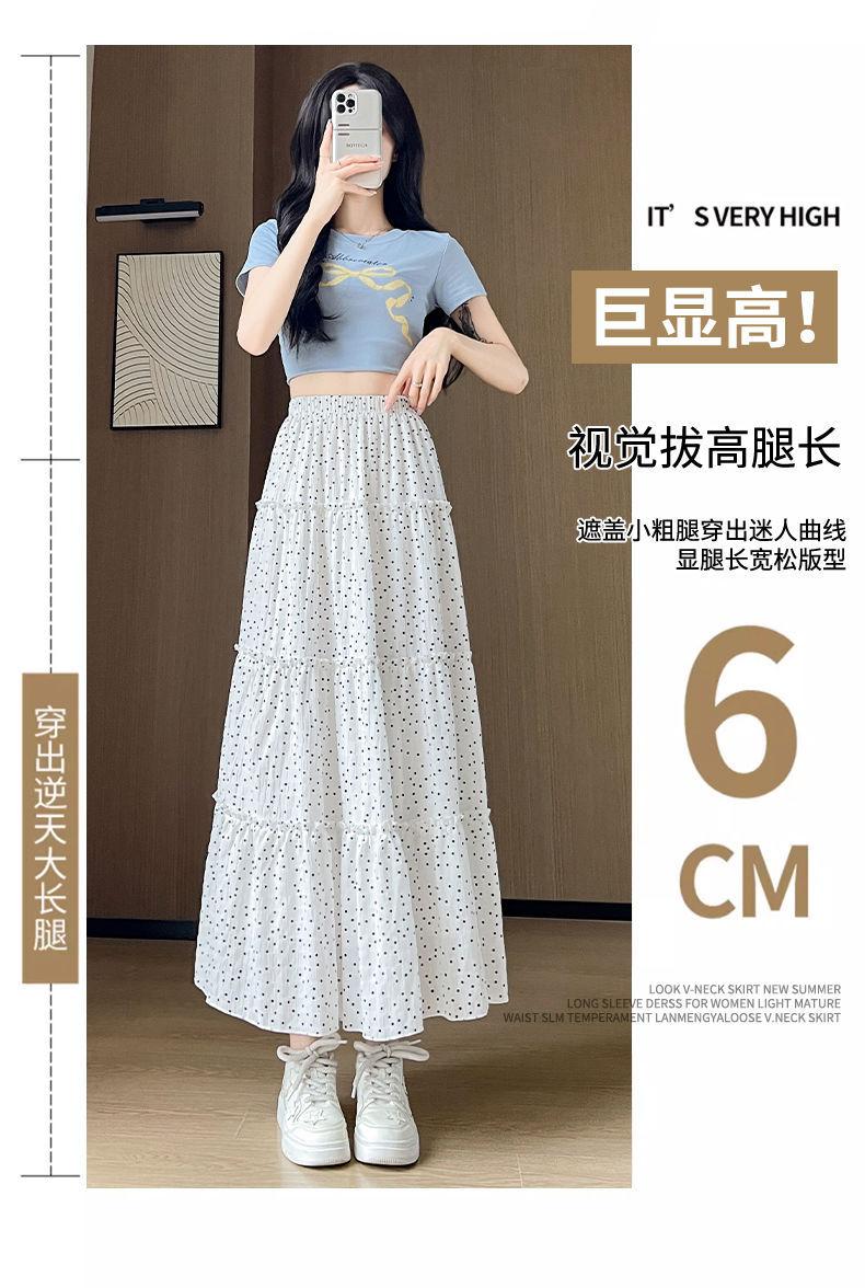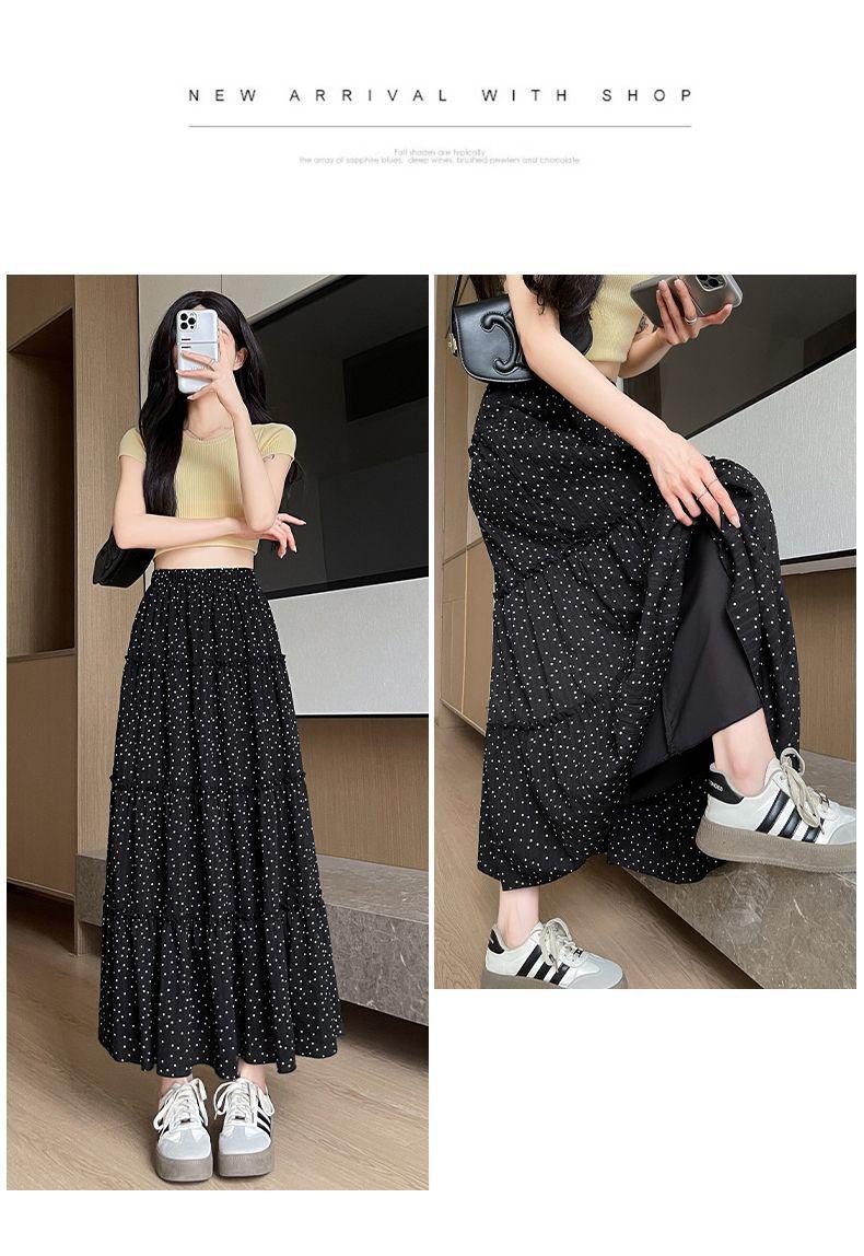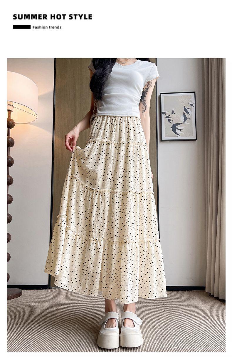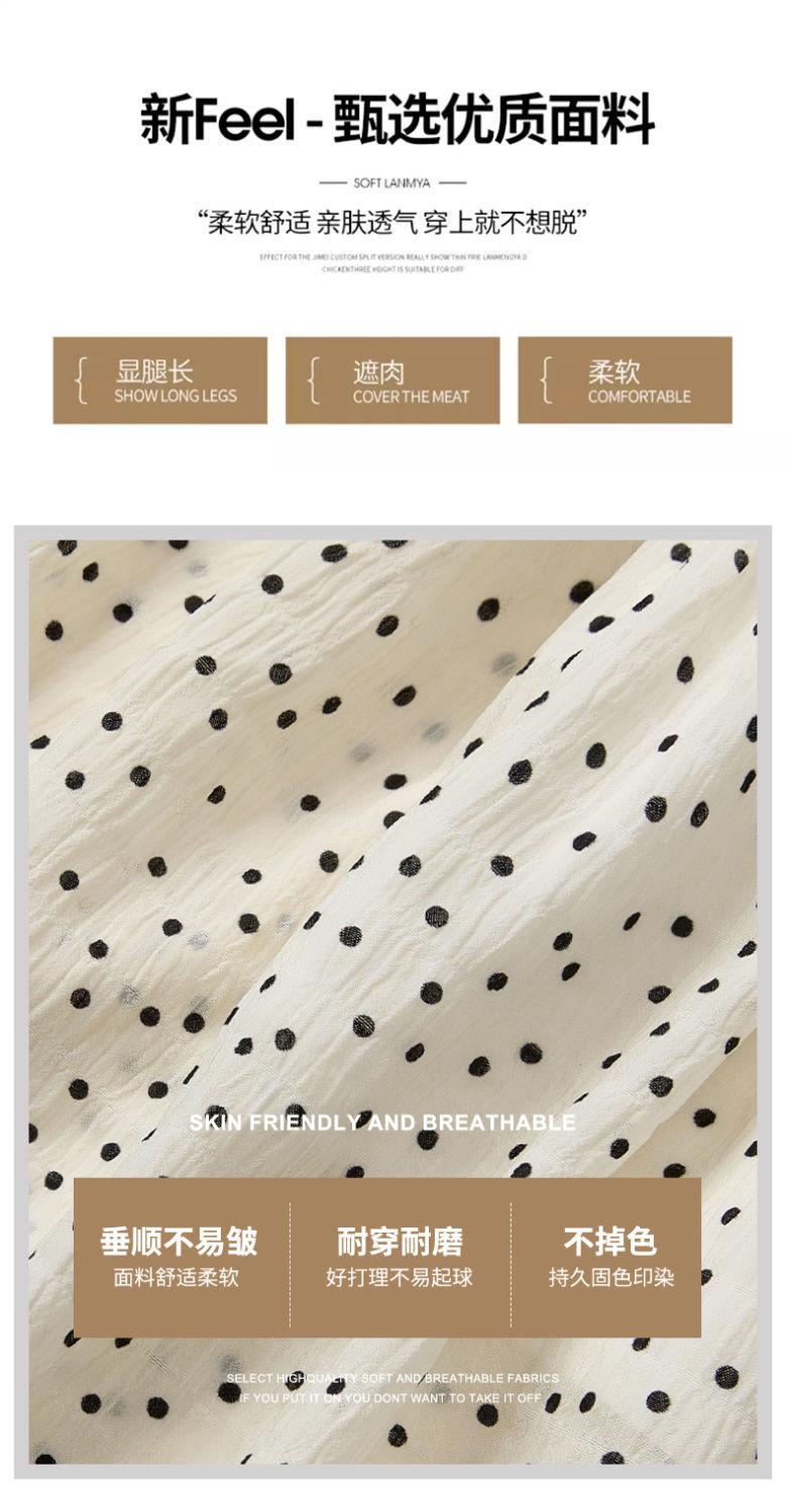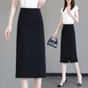 Falda de Lunares Verano 2024 para Mujer Nueva Cintura Alta Corte A Slim Media Longitud Versátil Falda Larga Blanca para Personas Pequeñas
