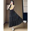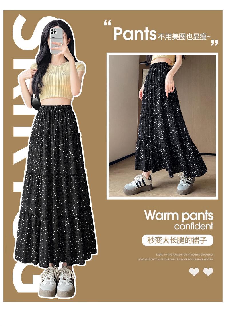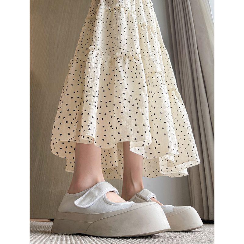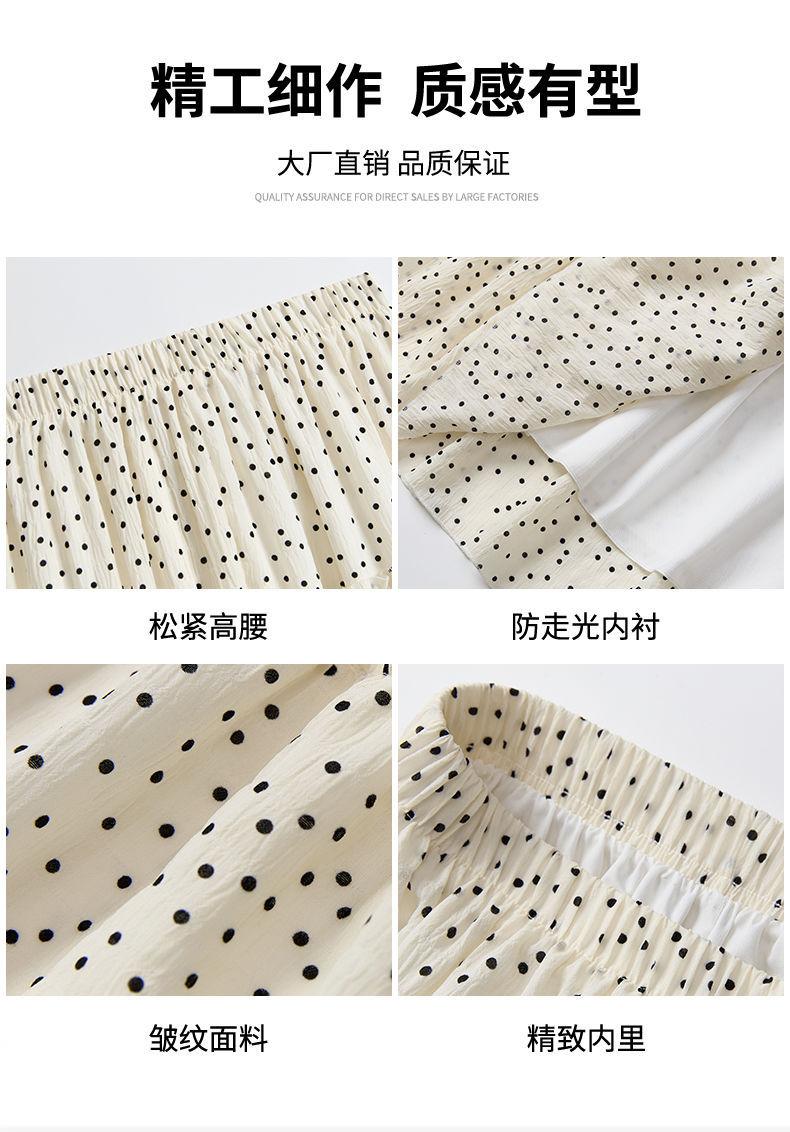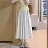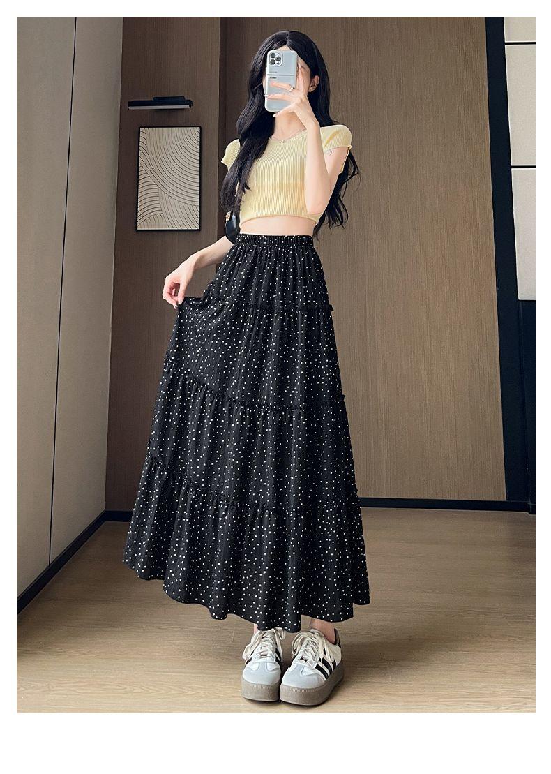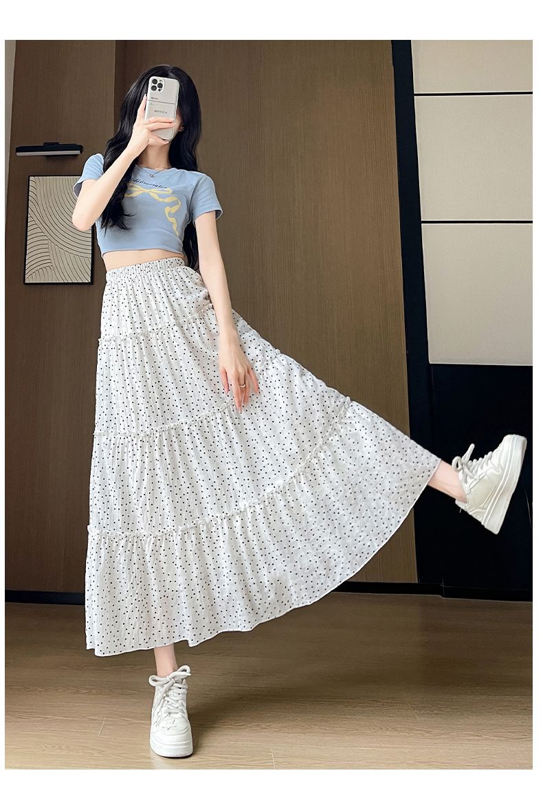 Falda de Lunares Verano 2024 para Mujer Nueva Cintura Alta Corte A Slim Media Longitud Versátil Falda Larga Blanca para Personas Pequeñas