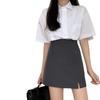 2025 Nueva Falda de Verano de Cintura Alta Corte A para Mujer Cubriendo el Tramo Primavera y Otoño Talla Grande Cubre Caderas Tela de Traje Falda Corta Negra