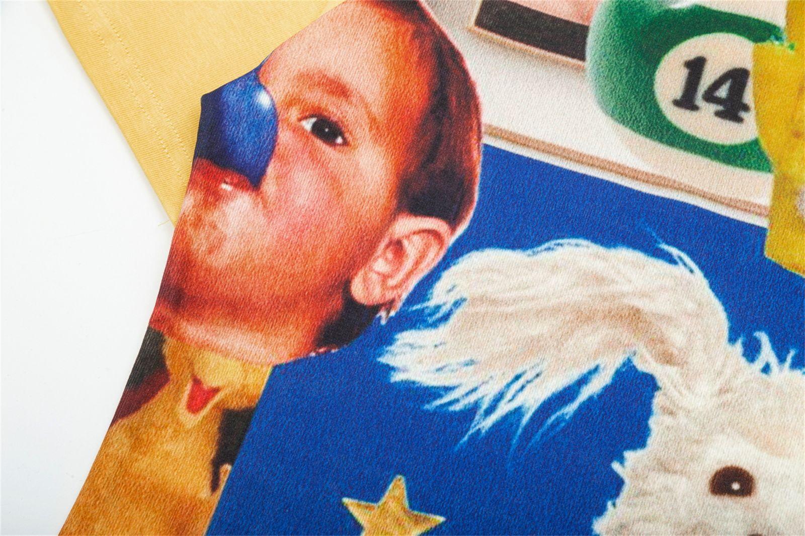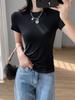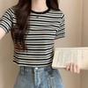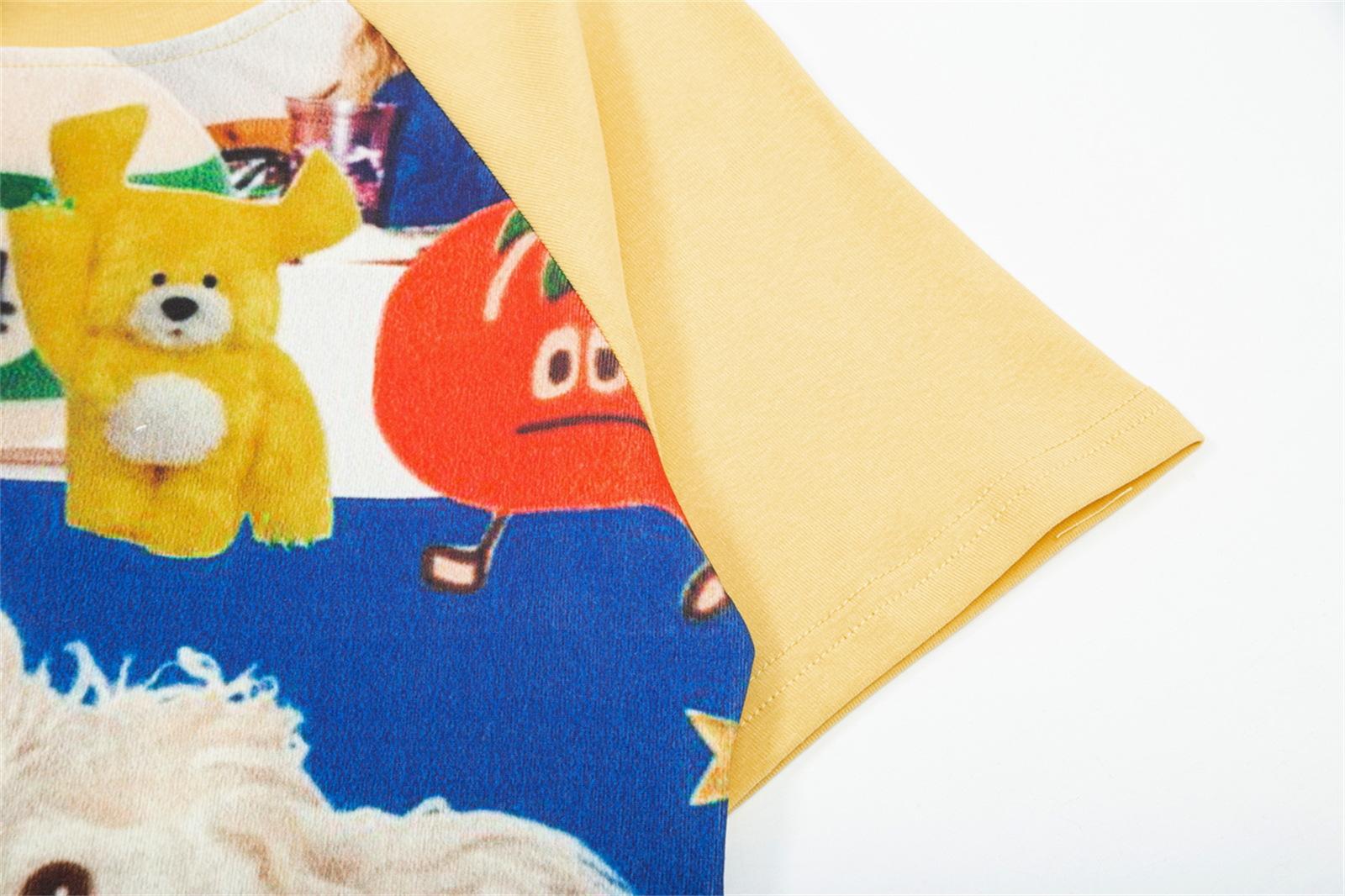 Playera de Manga Corta para Mujer Verano 2025 Nuevo Diseño Sentido Chic Estampado de Dibujos Animados Corta Ajustada Versátil Top de Manga Raglán