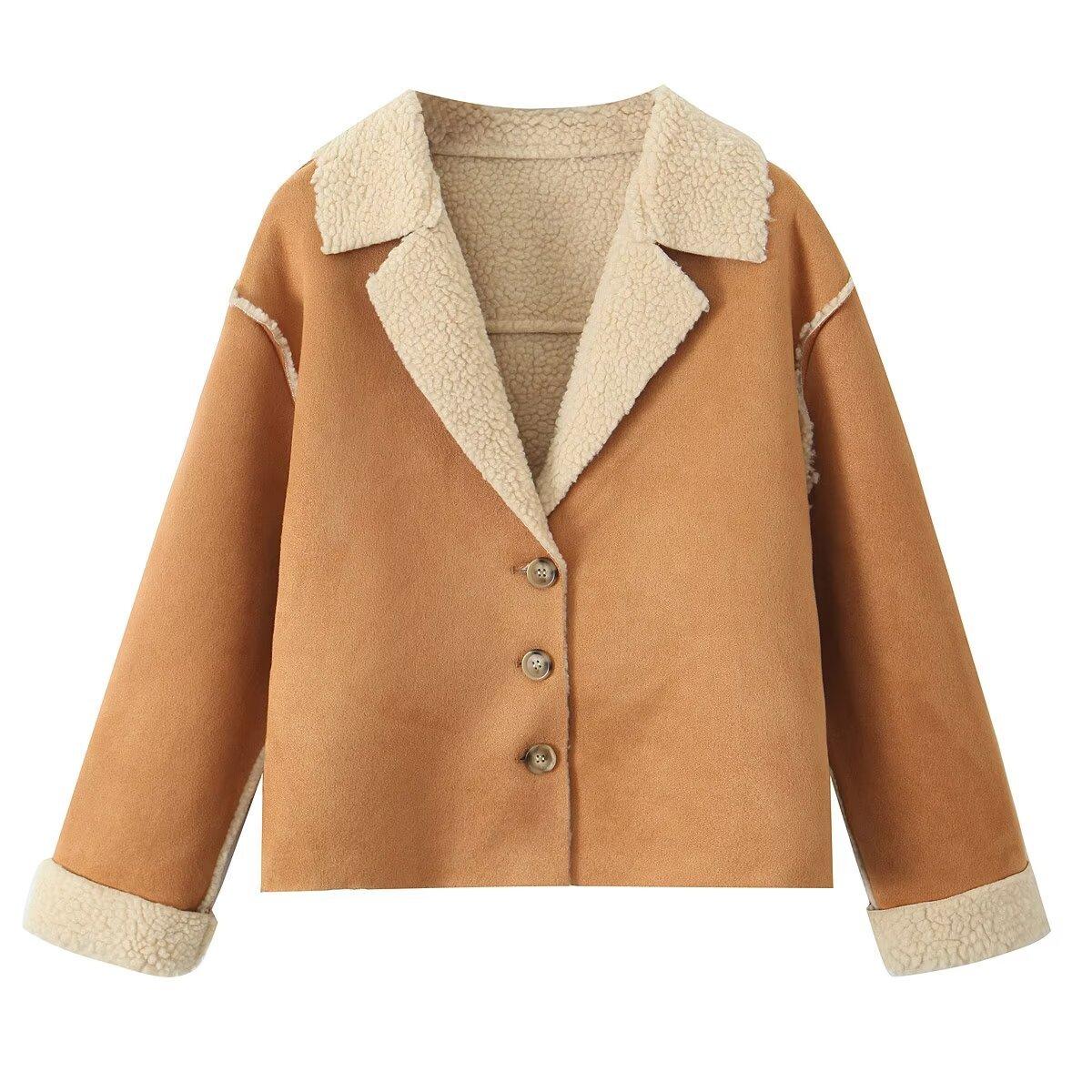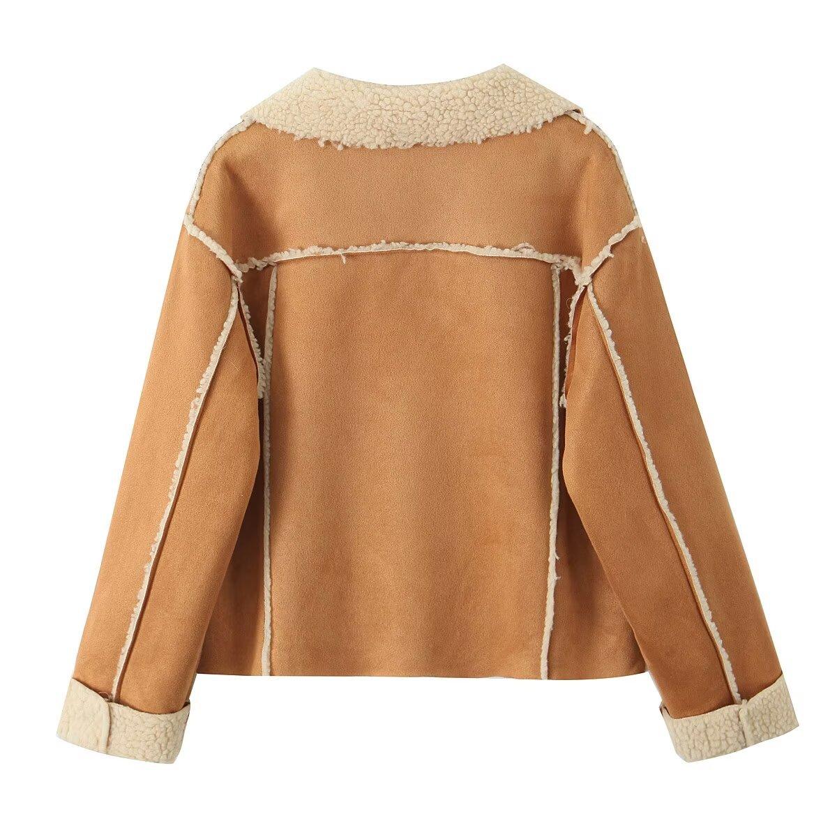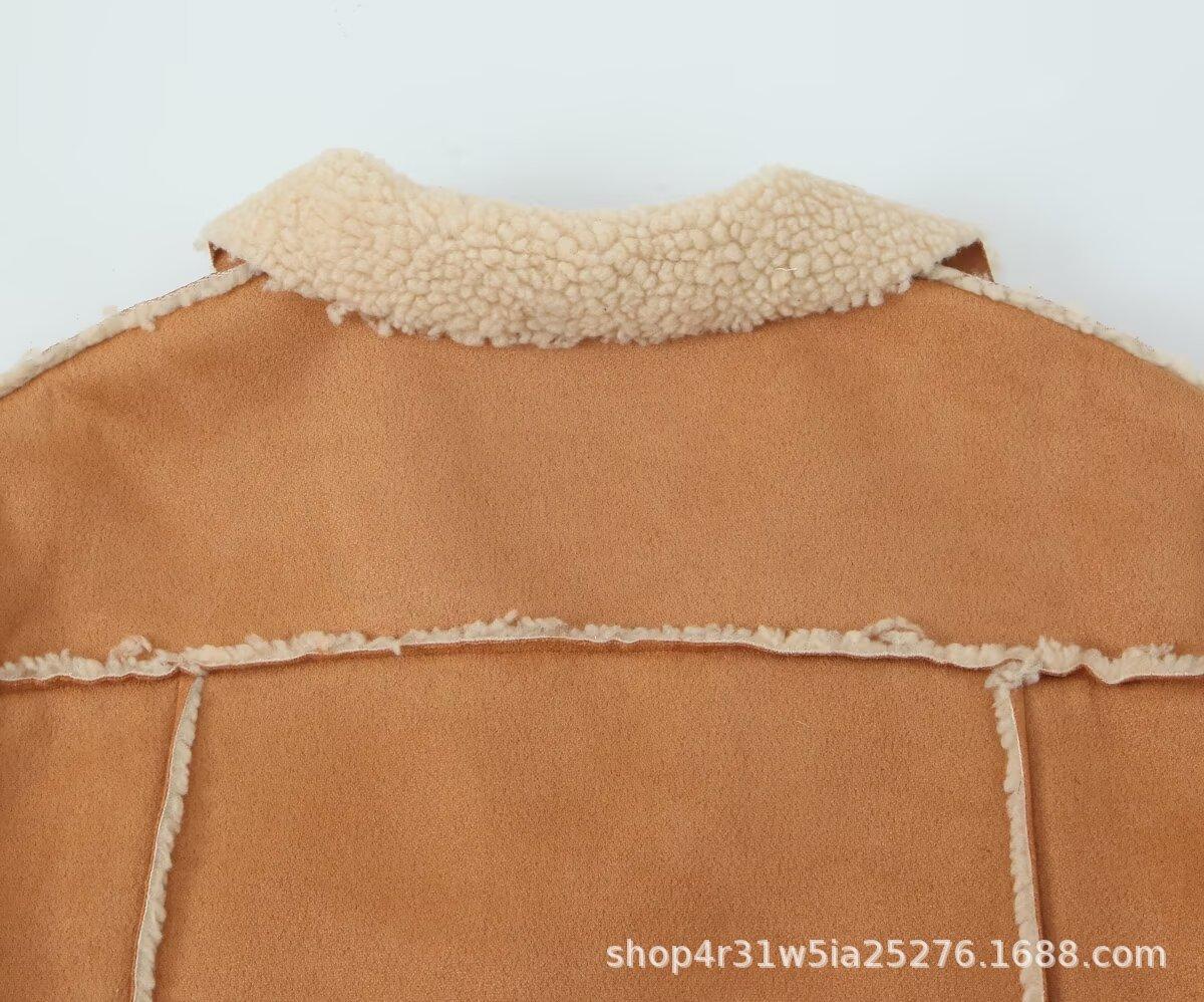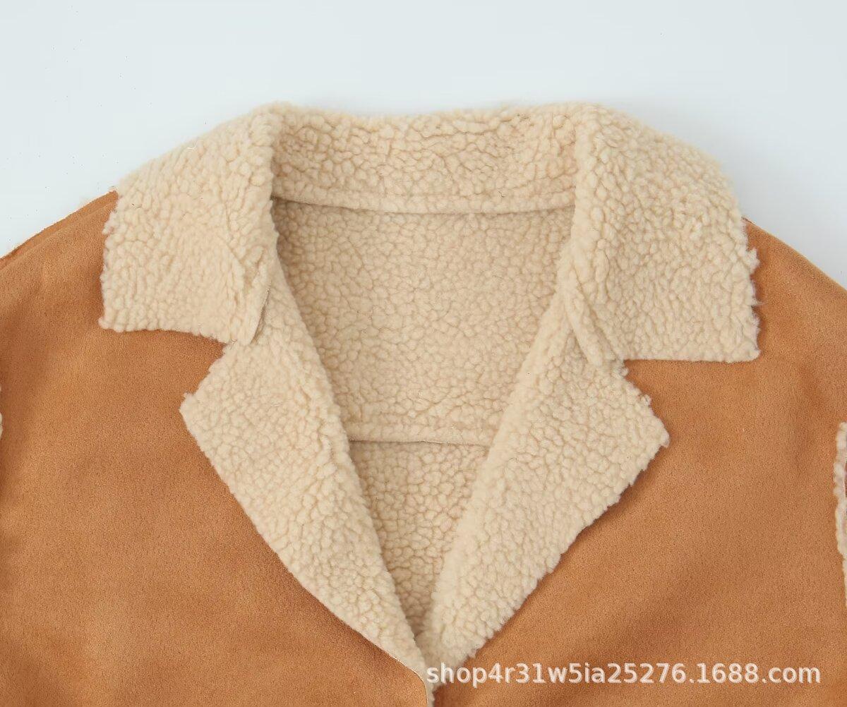 Venta al por mayor transfronteriza europea y americana 2025 Invierno Nueva moda Lana de cordero compuesta Solapa Manga larga Chaqueta de lana