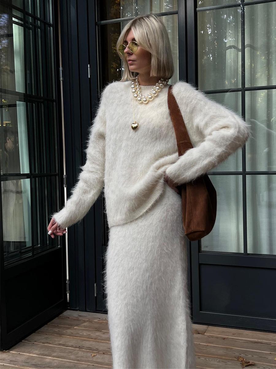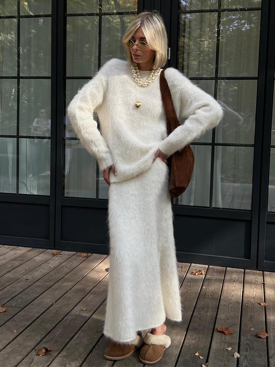 Traje de Suéter y Falda Pulóver Transfronterizo Europeo y Americano Otoño e Invierno 2025 Estilo Ins Tejido de Dos Piezas Traje de Suéter para Mujer