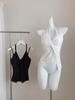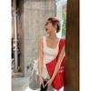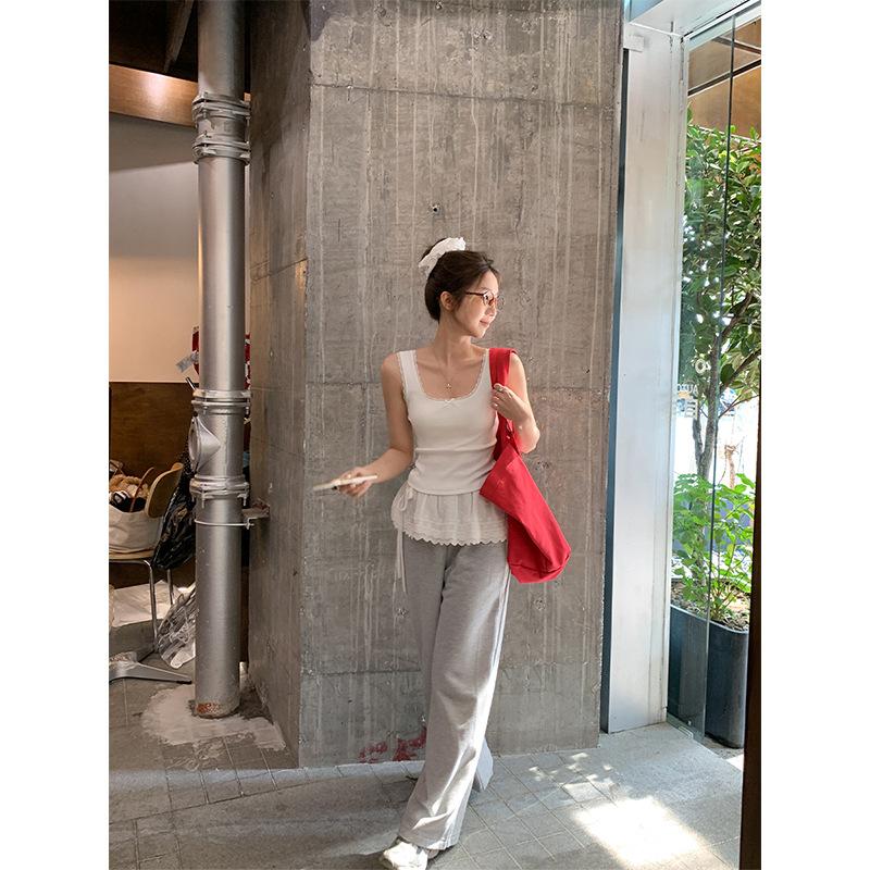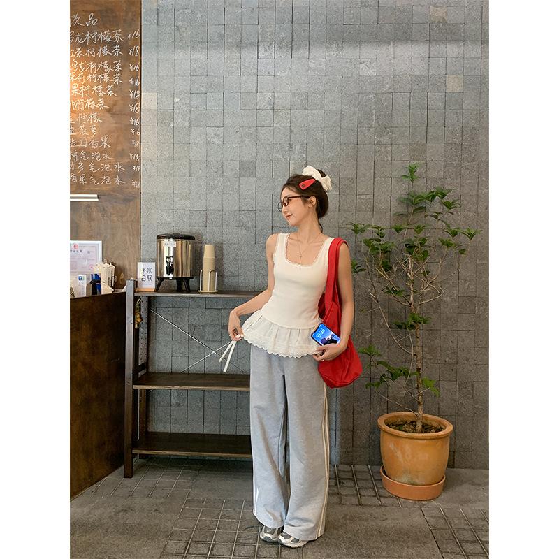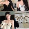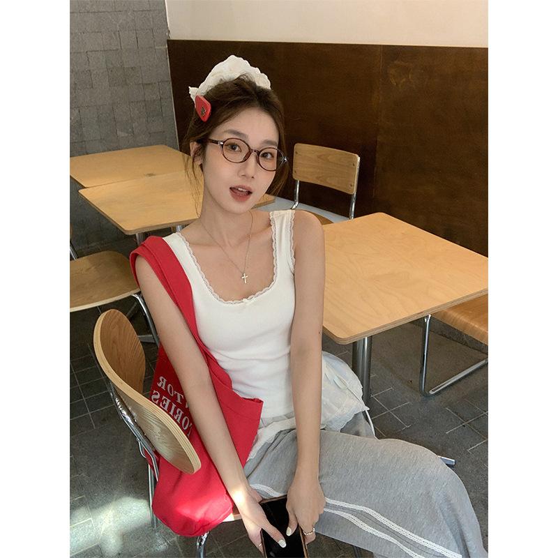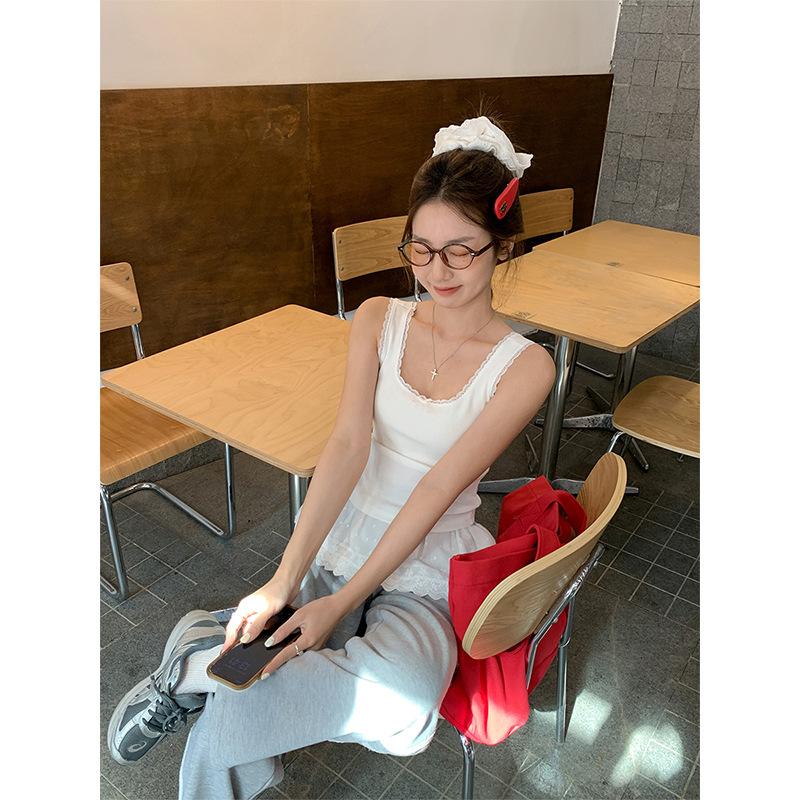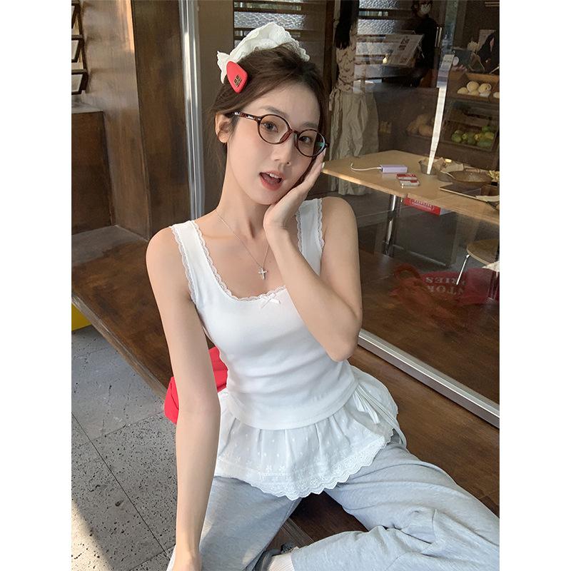 Foto Real Precio Real Camiseta sin Mangas con Cuello en U Lazo Encaje Tirantes Espagueti para Mujer Primavera Chica Caliente Sexy Ropa Interior Top Corto