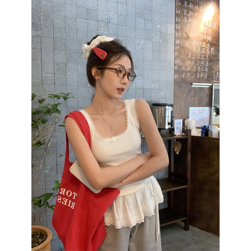 Camisola de Encaje con Lazo de Cuello U para Mujer Verano 2025 Nueva Sexy Sexy Interior Top Corto Trendy