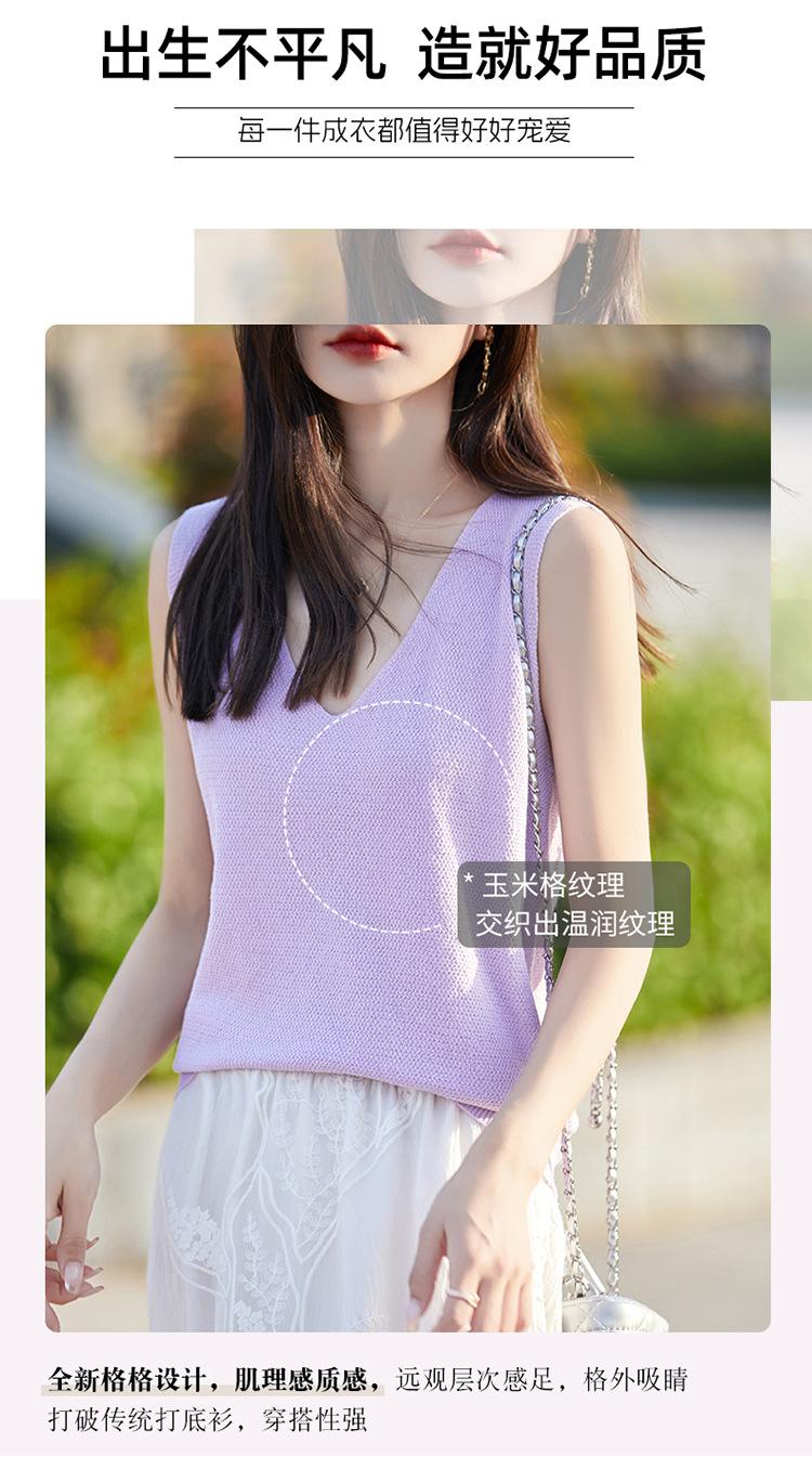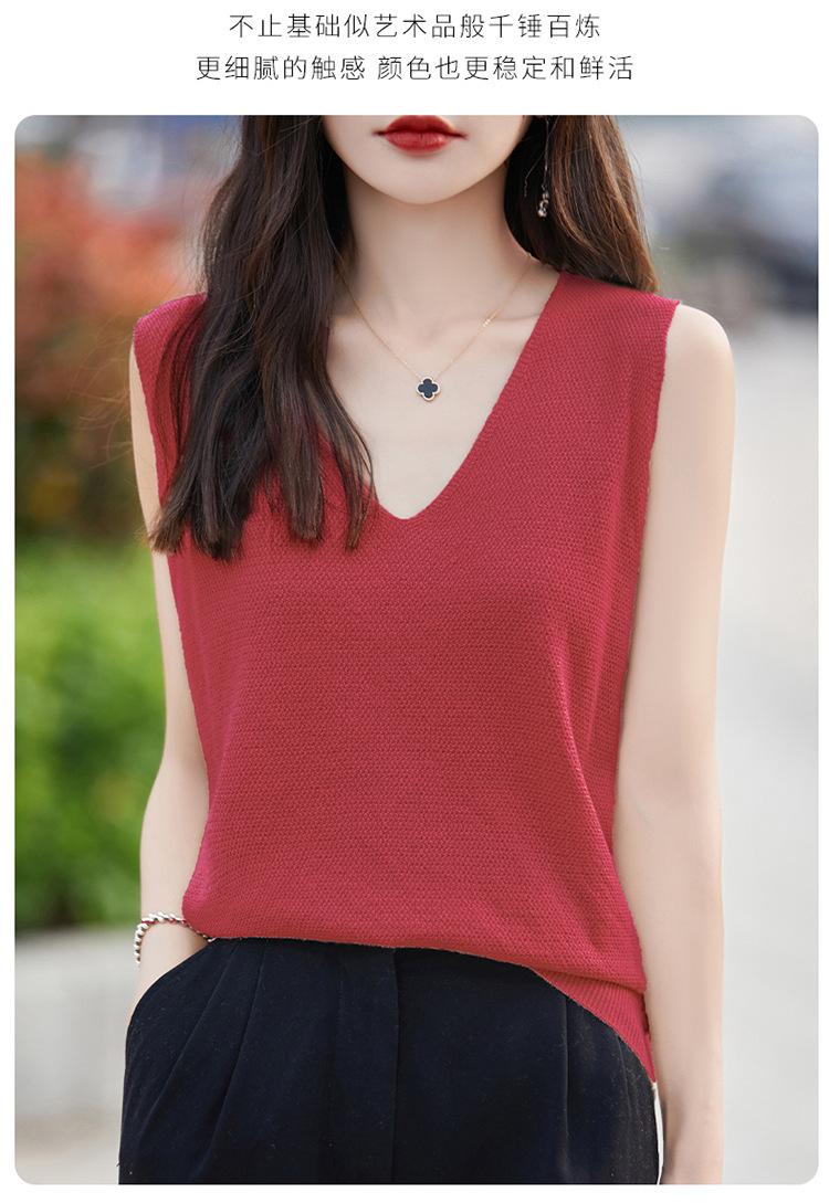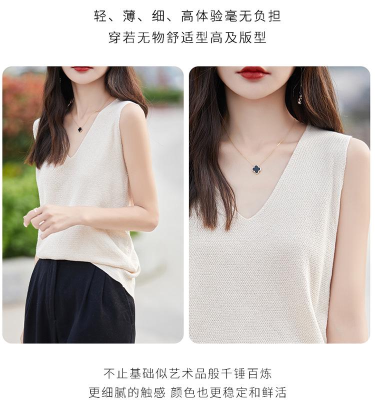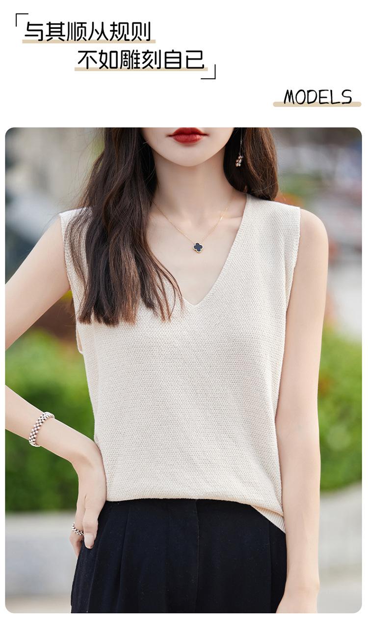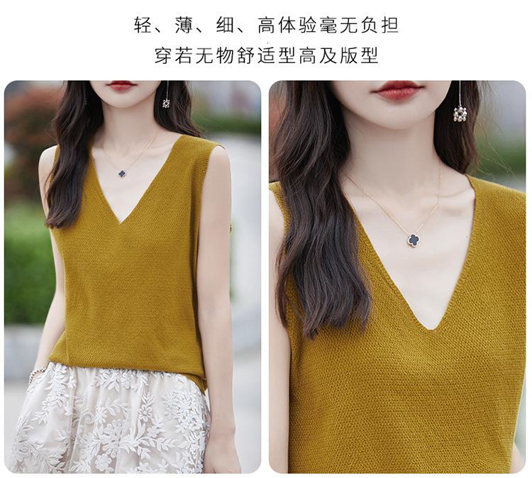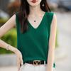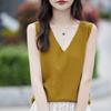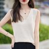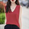 Camisola para Mujer Interior Cuello en V Top Corto Primavera y Verano 2025 Nuevo Nicho Sin Mangas Tejido Camiseta Base