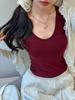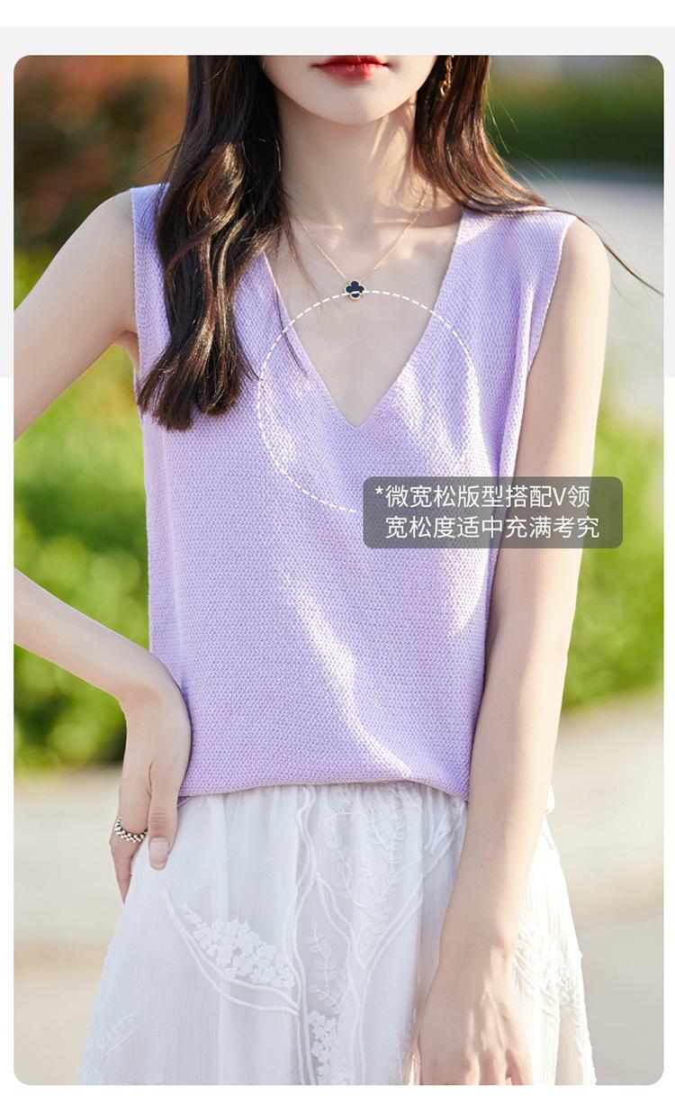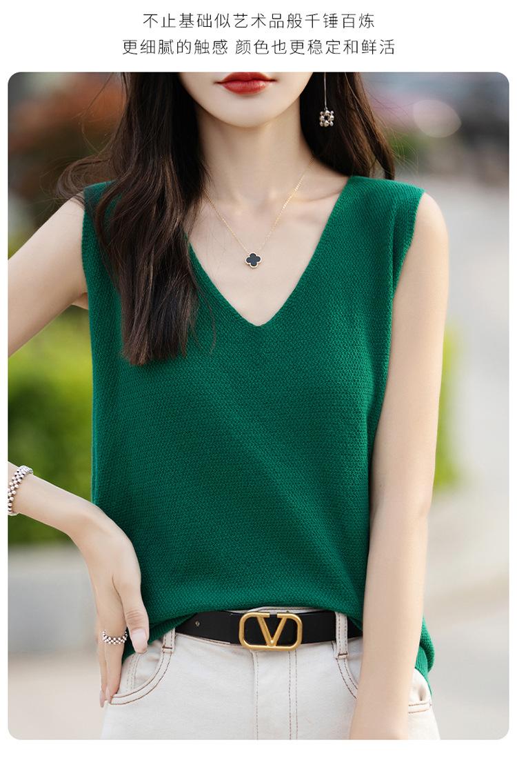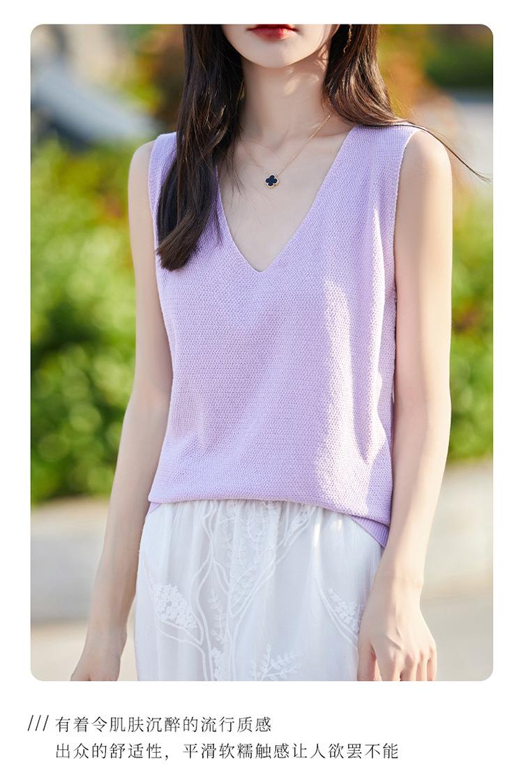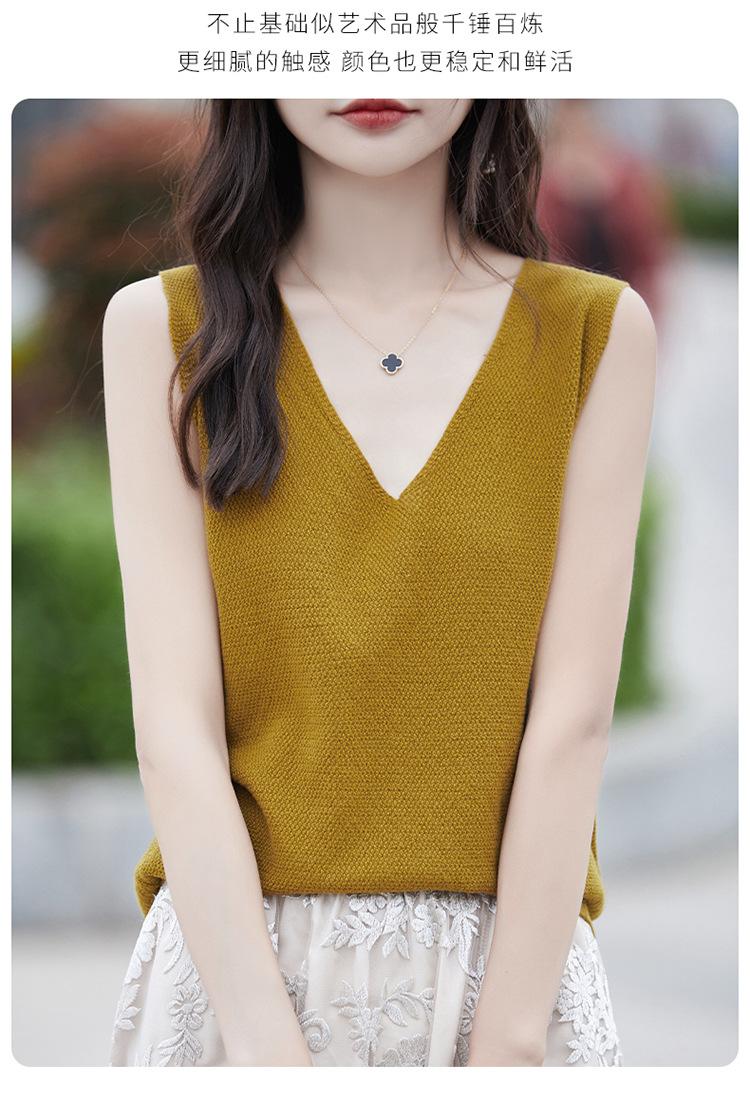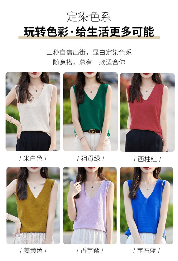 Camisola para Mujer Interior Cuello en V Top Corto Primavera y Verano 2025 Nuevo Nicho Sin Mangas Tejido Camiseta Base