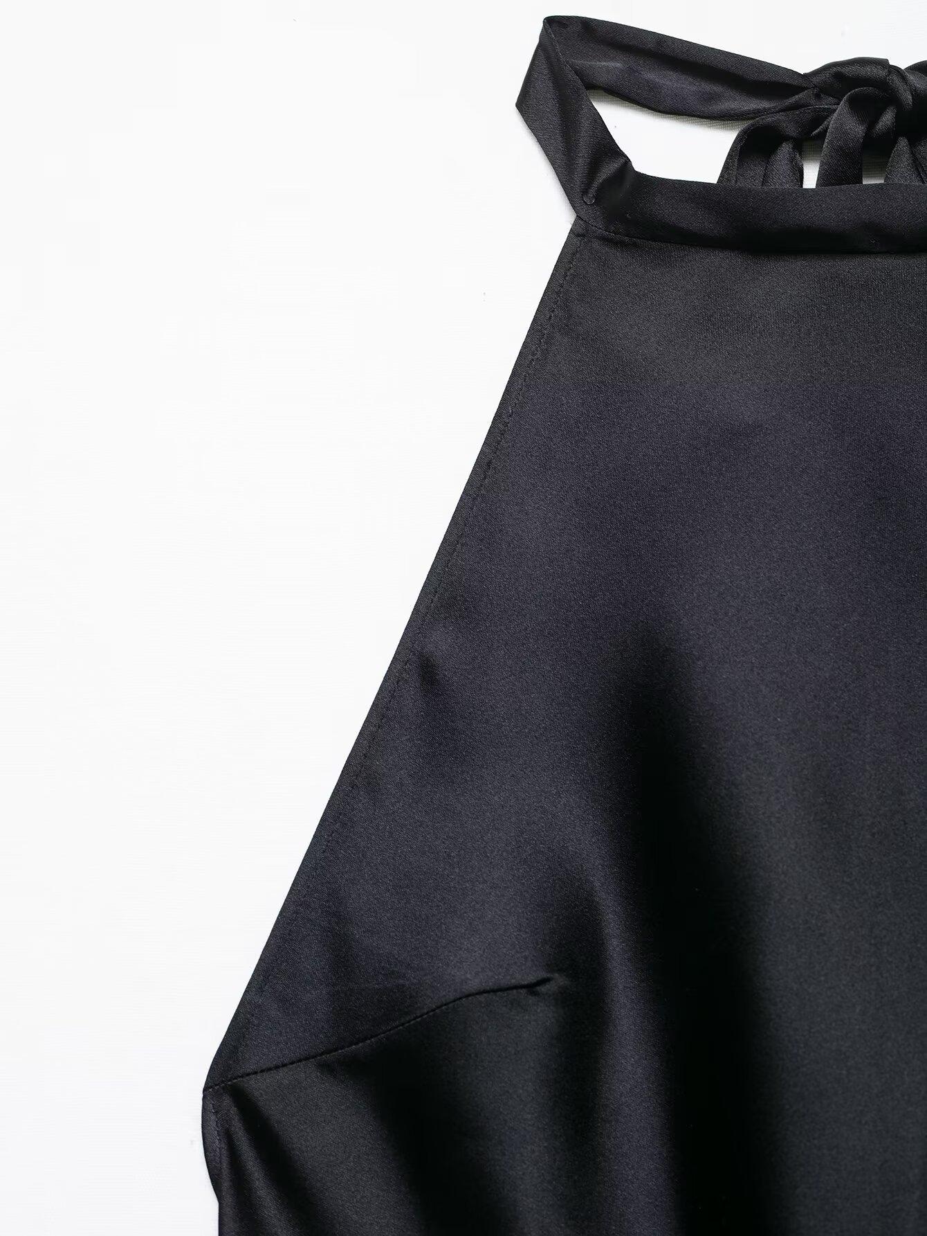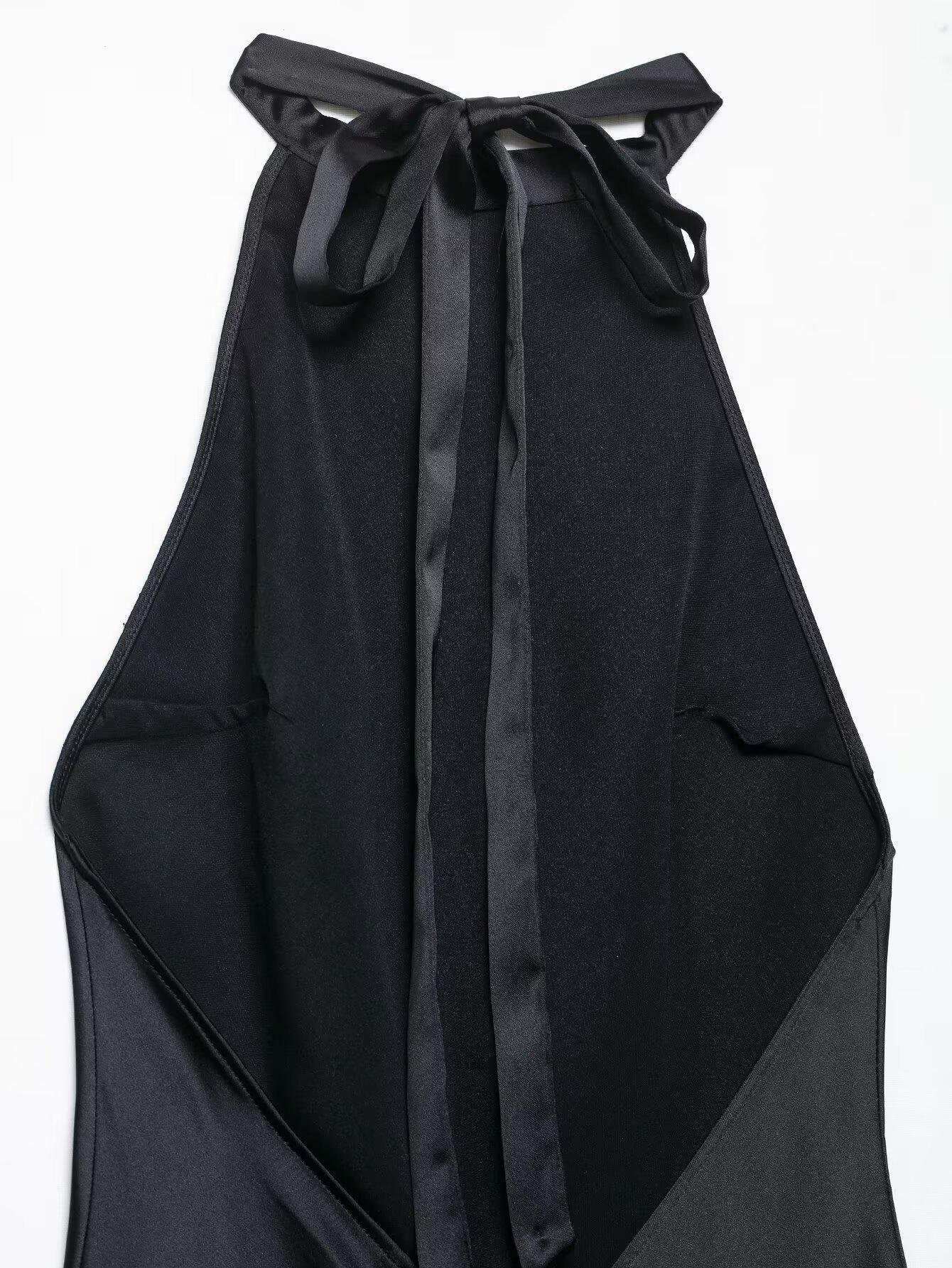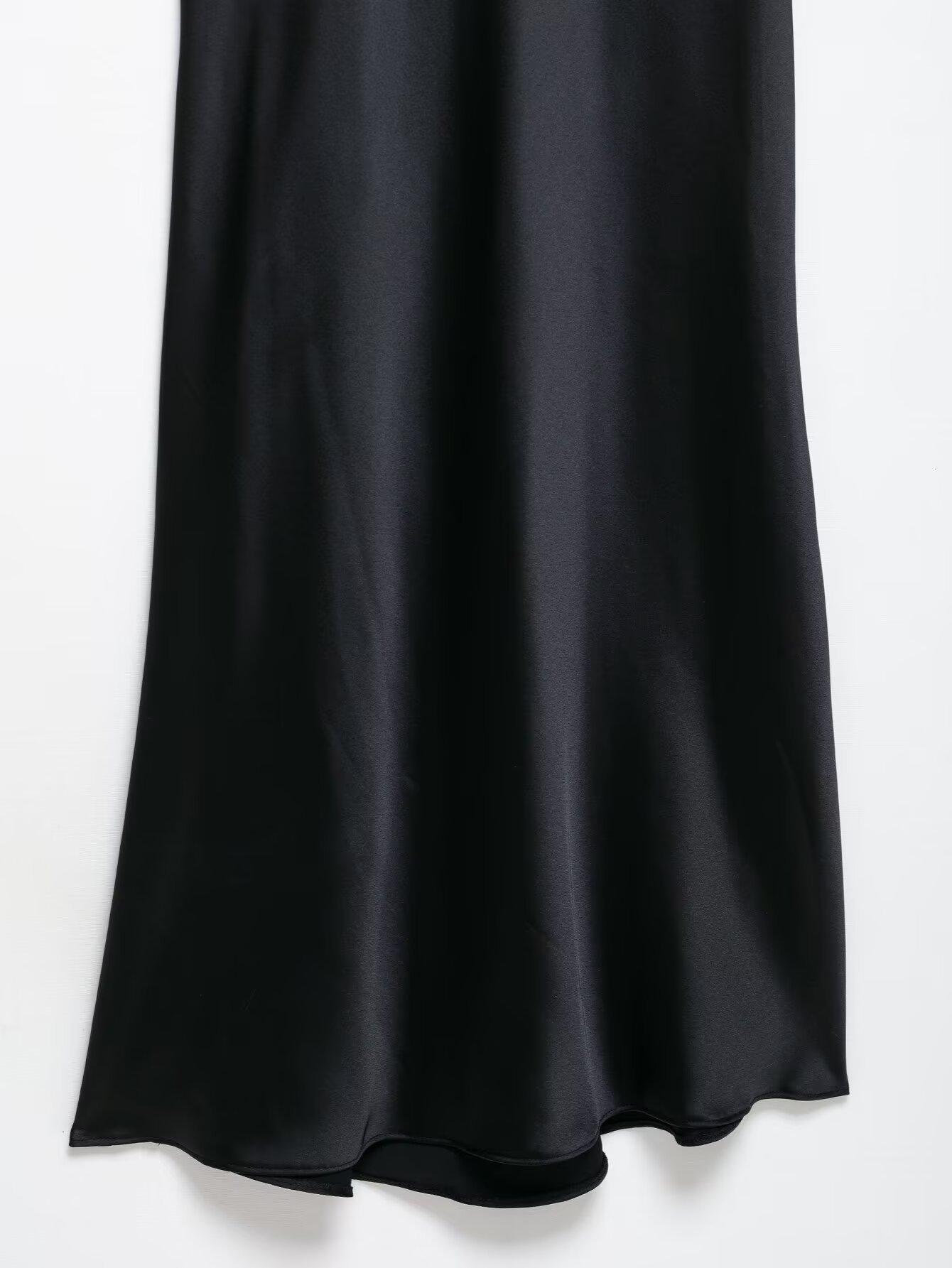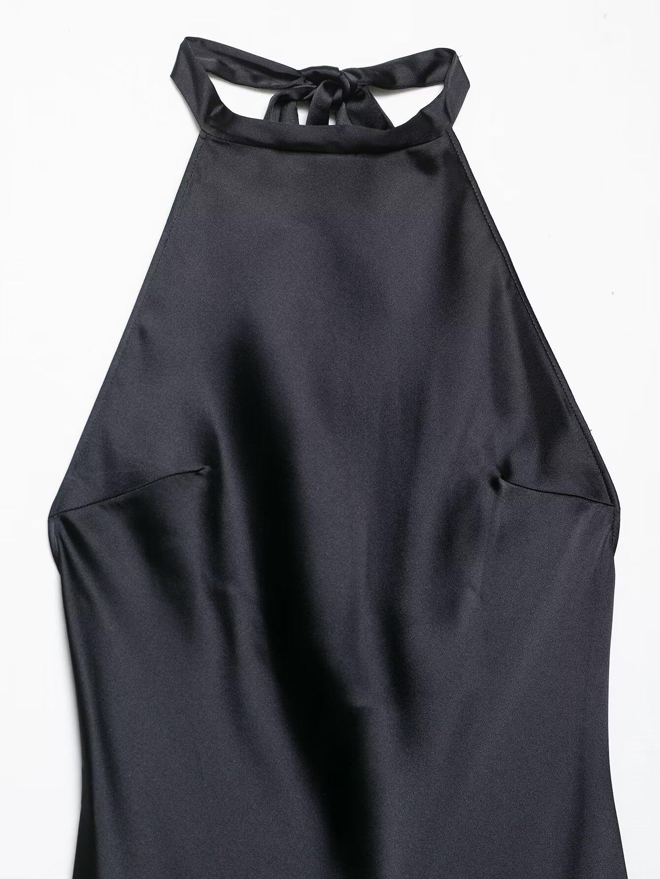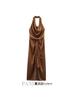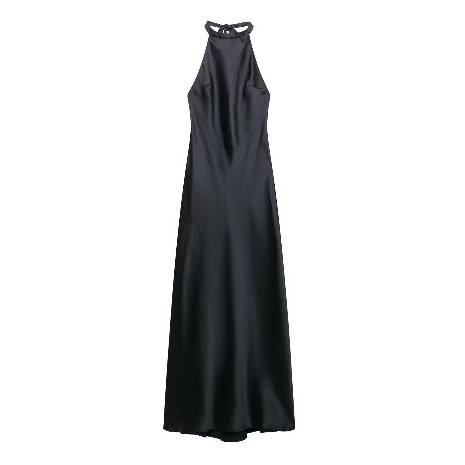Ropa Europea y Americana Transfronteriza 2025 Nueva Moda de Verano Casual Cuello Halter Textura de Satén de Seda Vestido 3300331