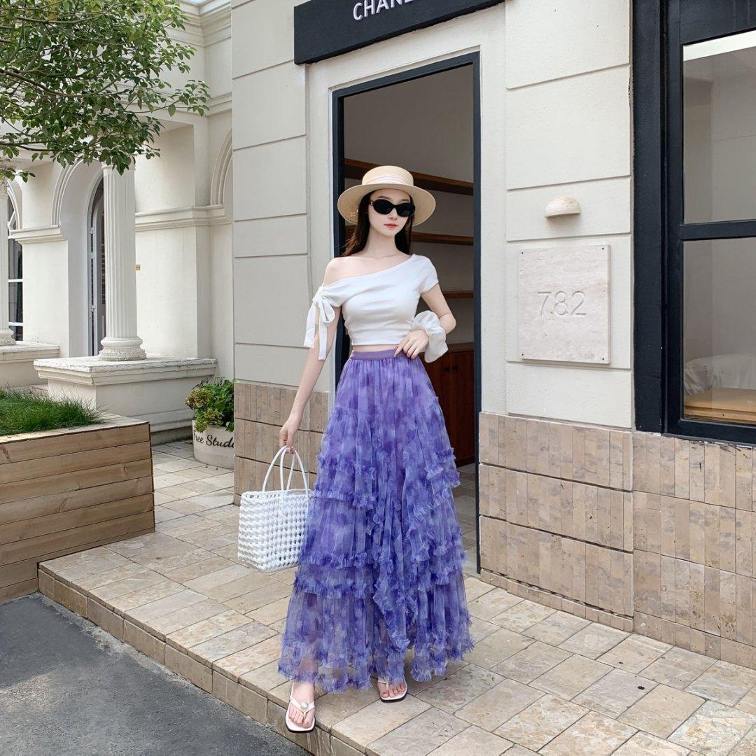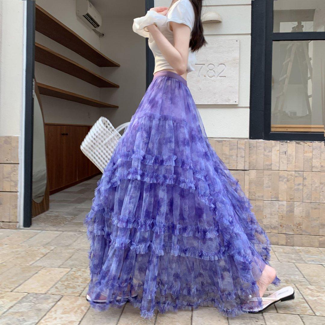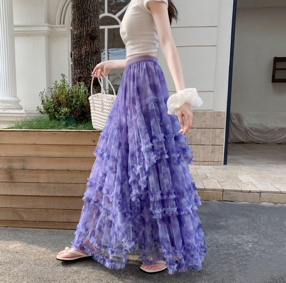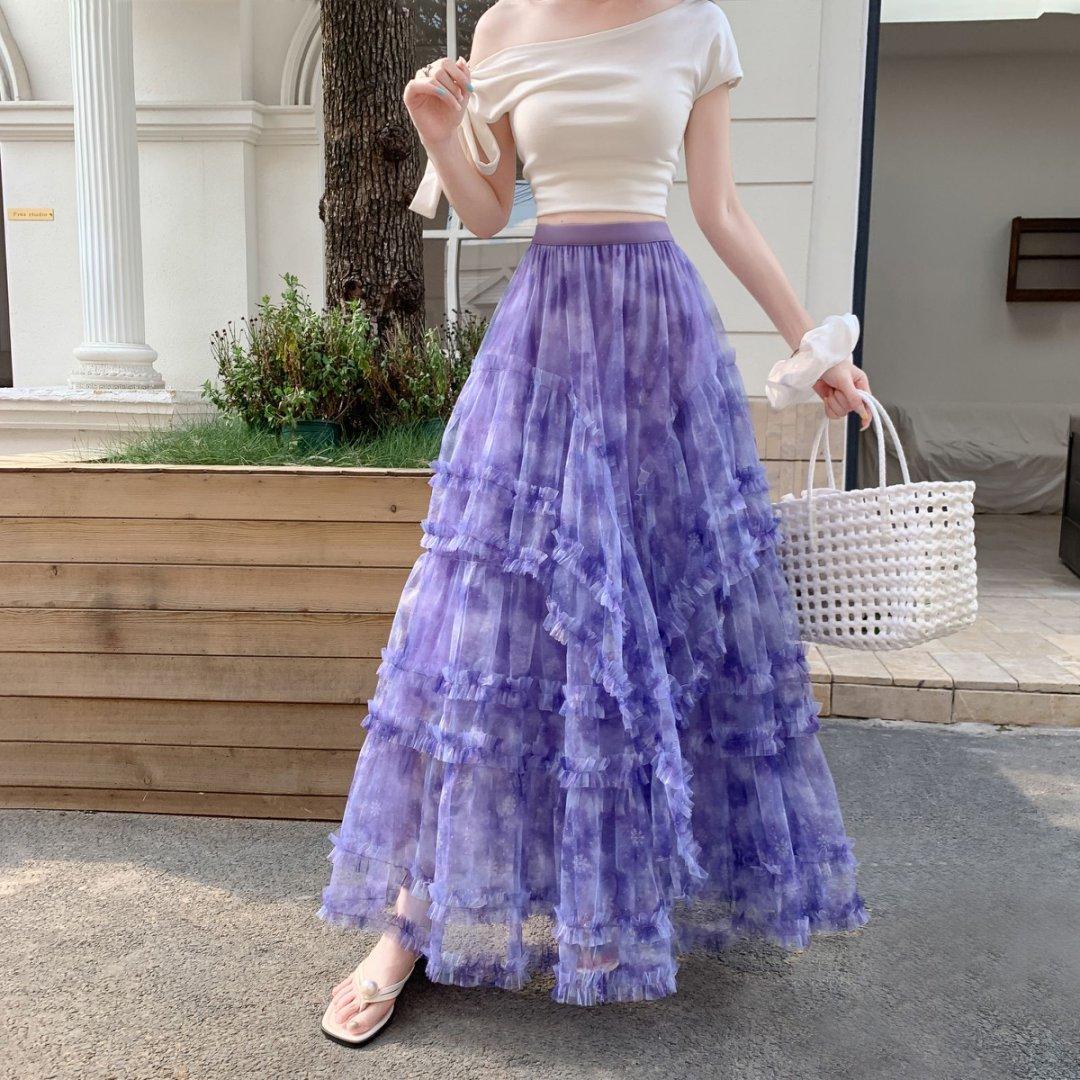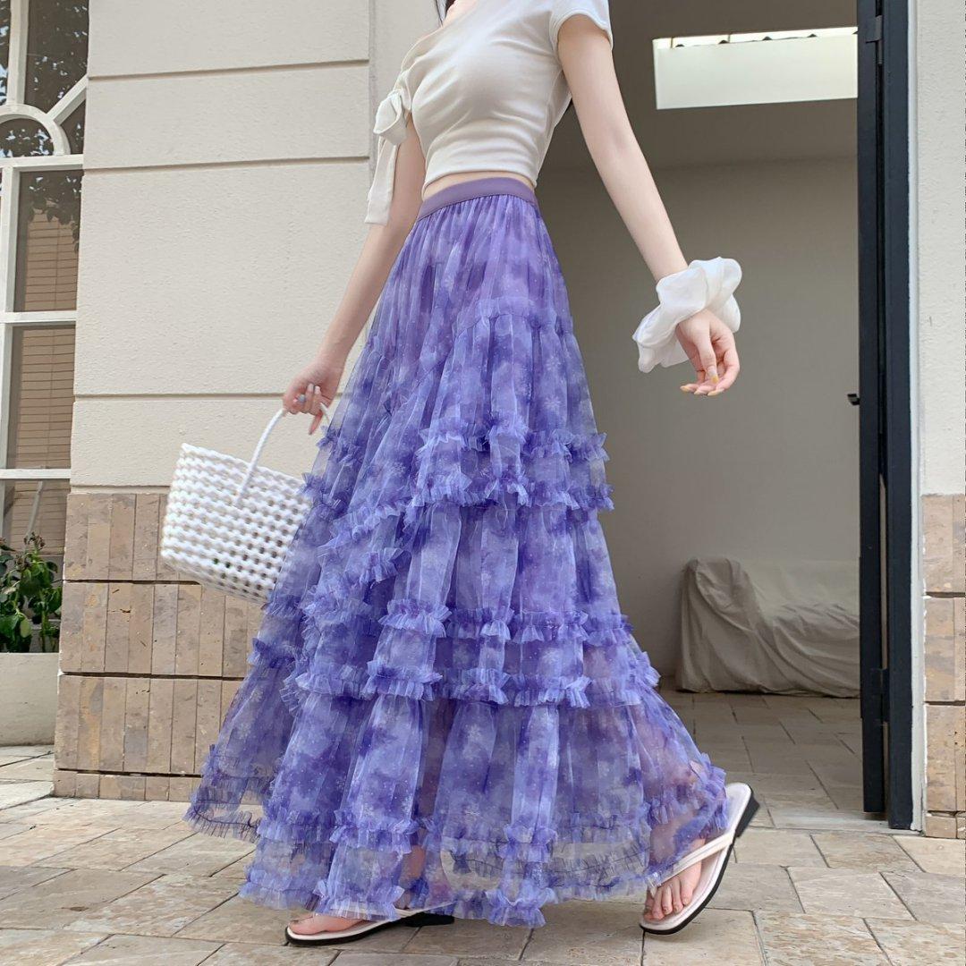 Falda de Hada 2025 Nuevo Estilo Estilo Suave Gama Alta Adelgazante Malla Irregular Falda Esponjosa