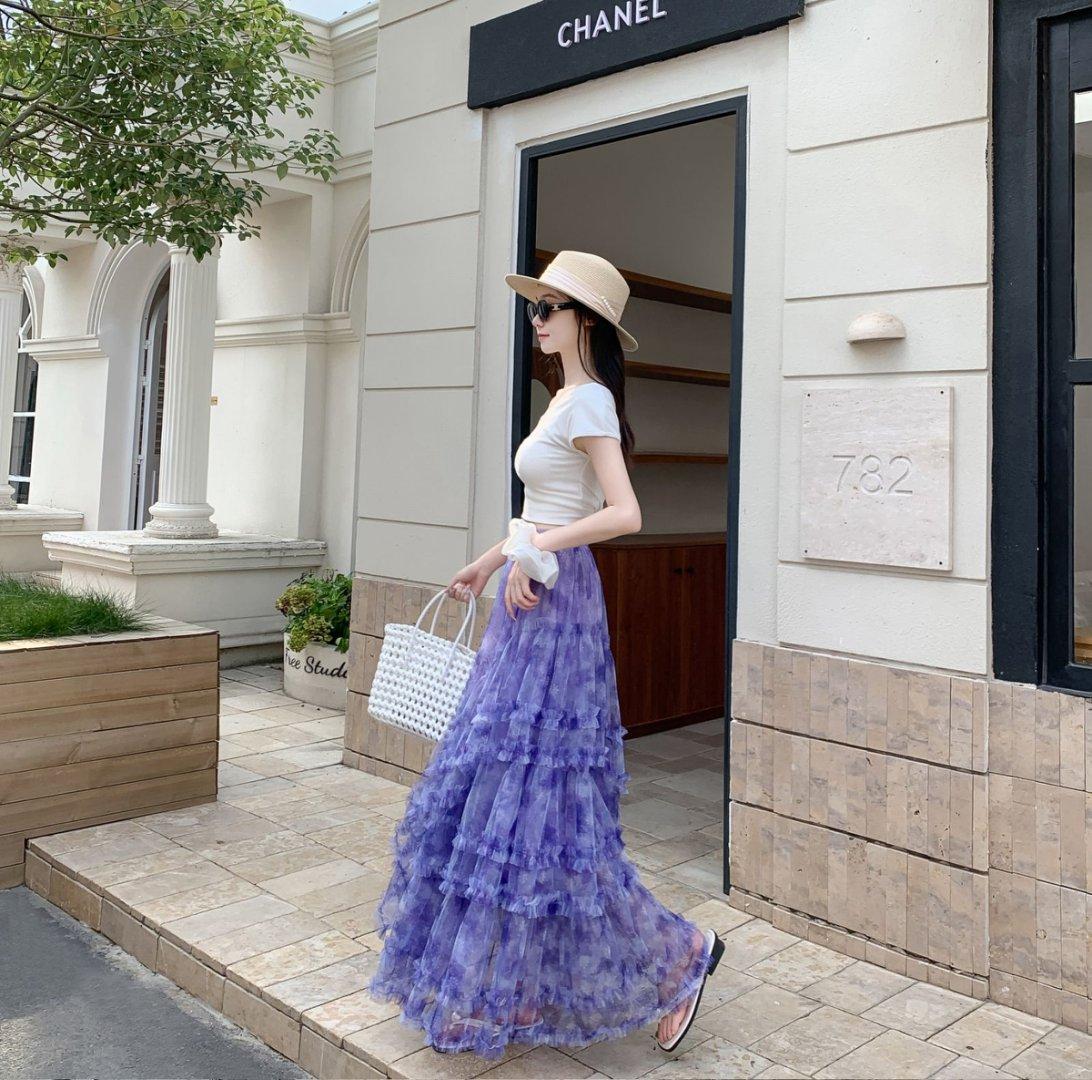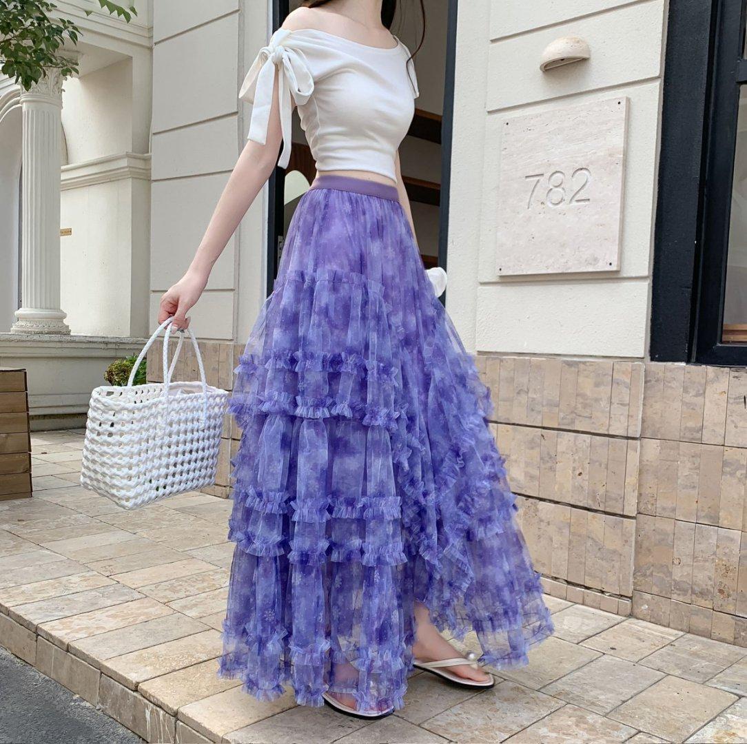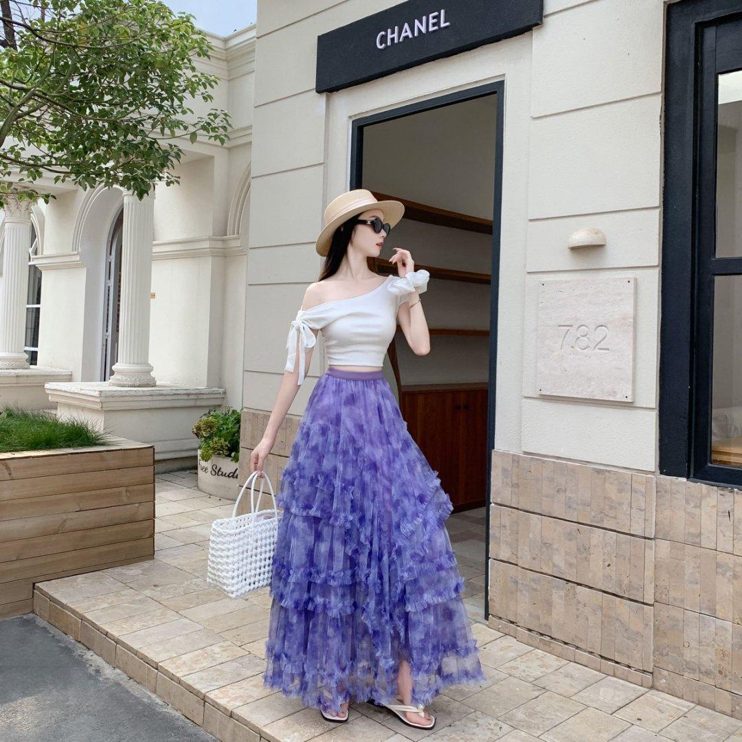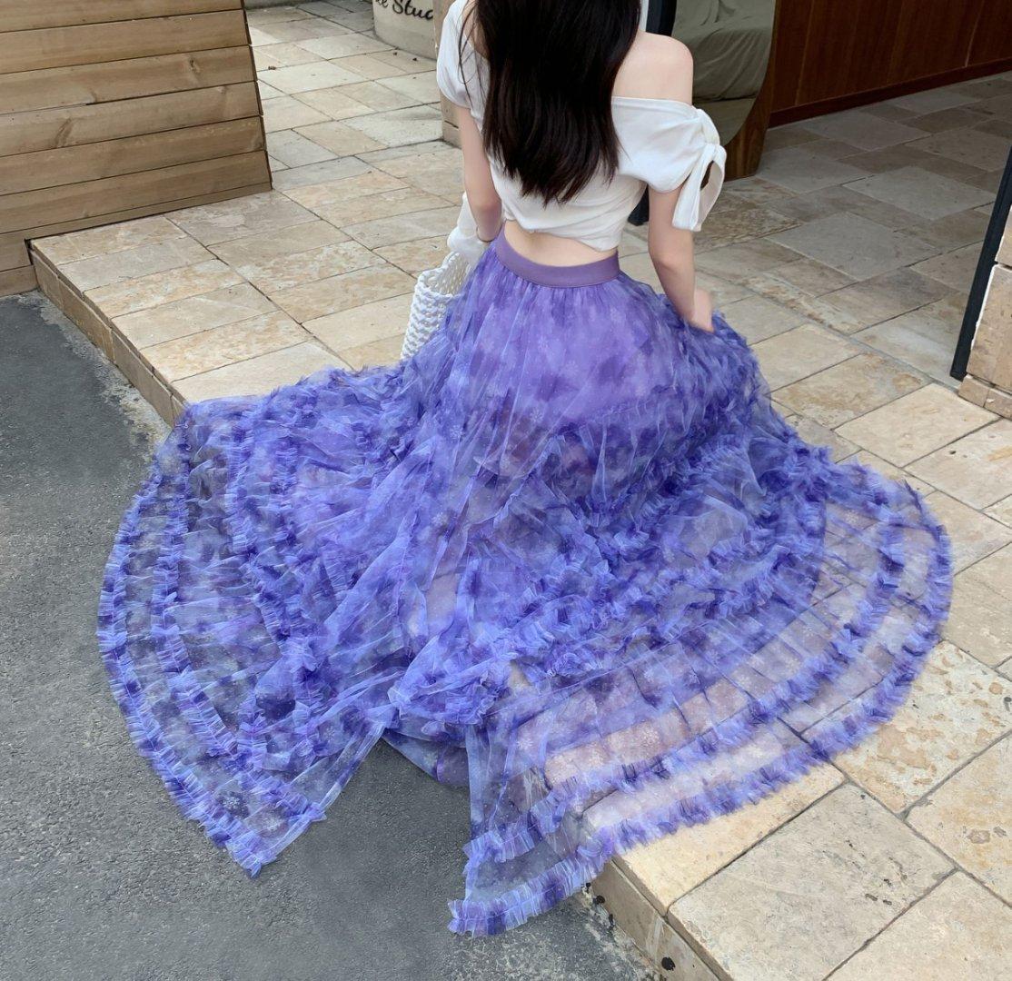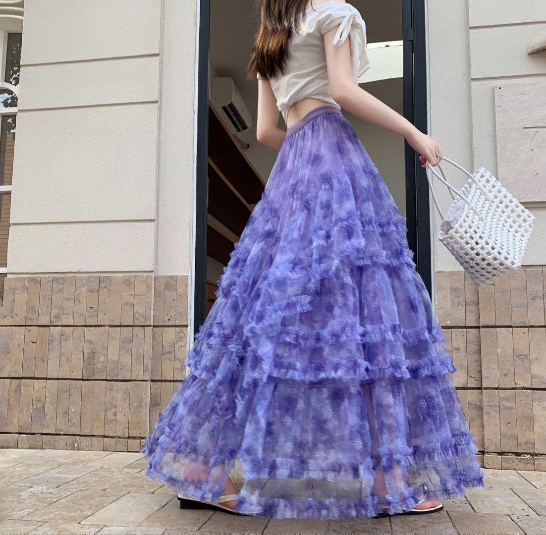 Falda de Hada 2025 Nuevo Estilo Estilo Suave Gama Alta Adelgazante Malla Irregular Falda Esponjosa