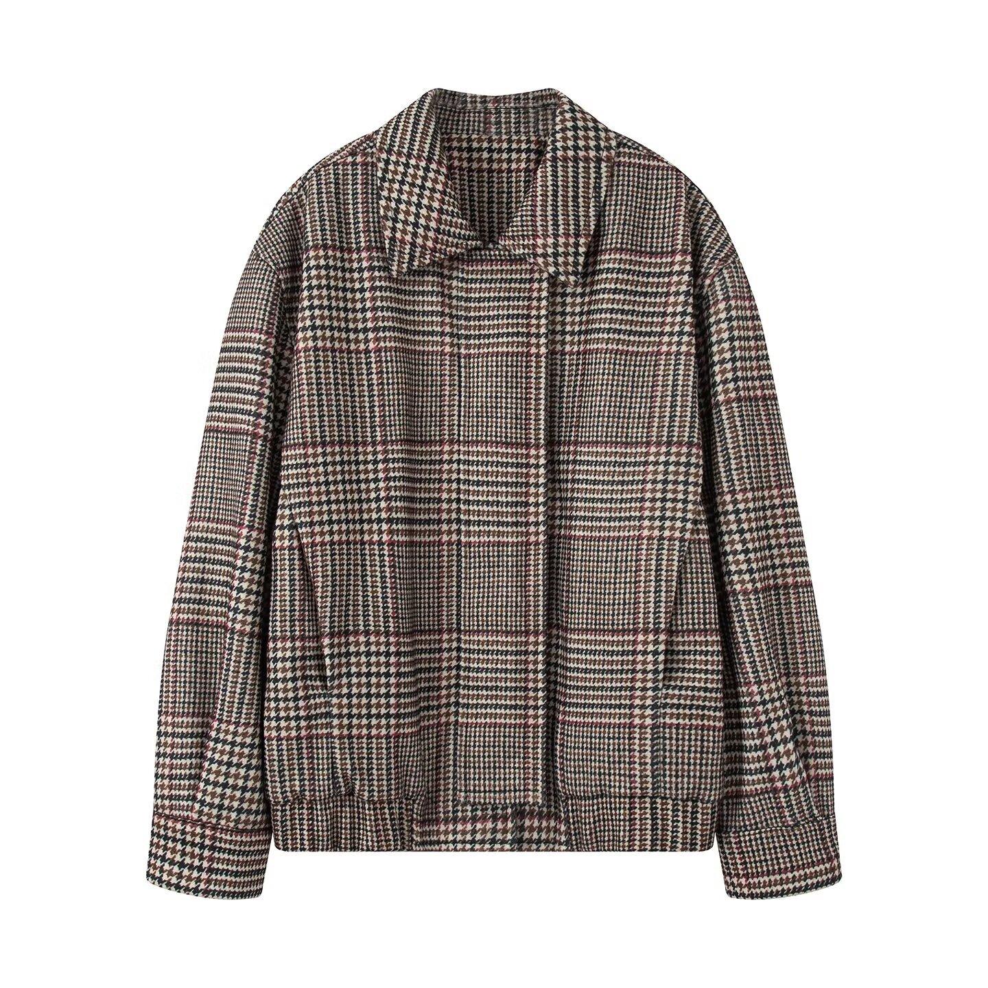Z Estilo transfronterizo europeo y americano otoño e invierno nuevo retro holgado versátil a cuadros mezclado bomber acolchada