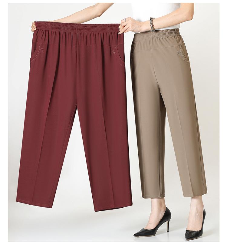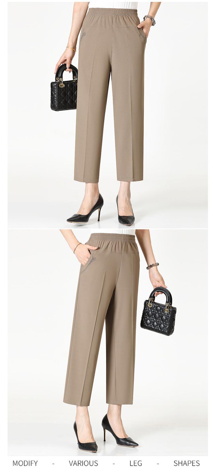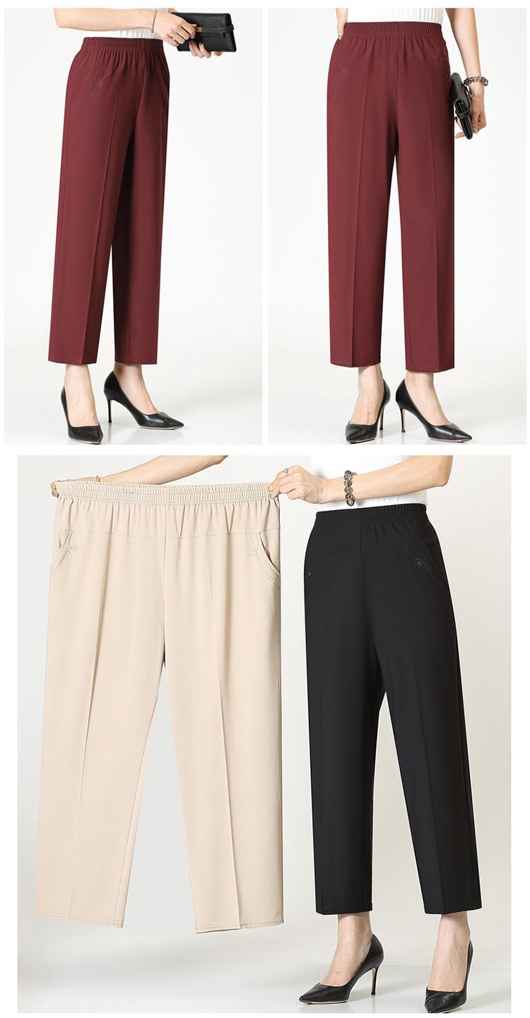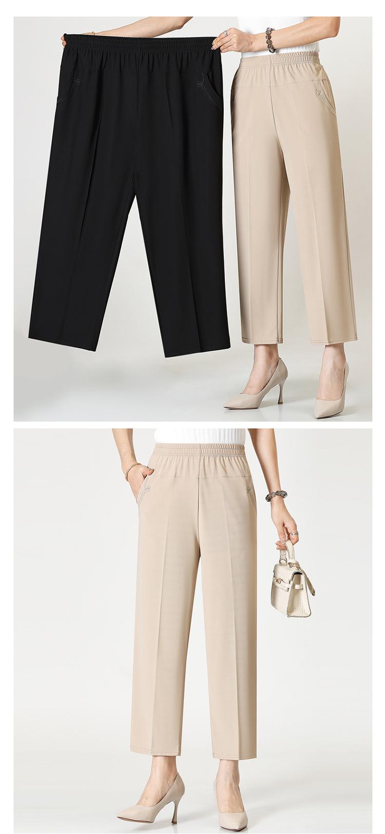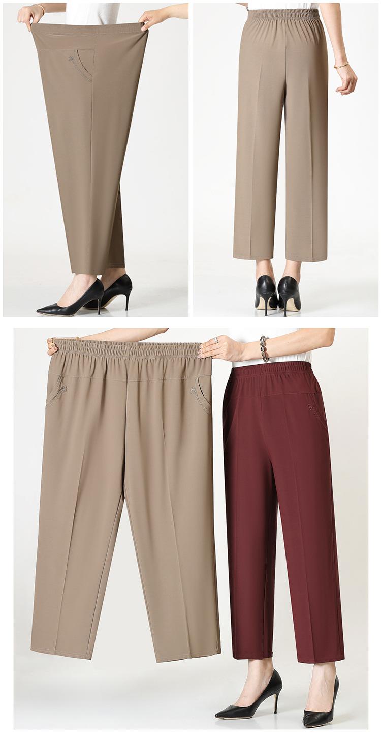 Pantalones de Verano Delgados de Mamá Elásticos Rectos Casuales Sueltos Talla Extra Pantalones Recortados Cintura Alta Elasticizada Pantalones para Mujeres de Mediana Edad