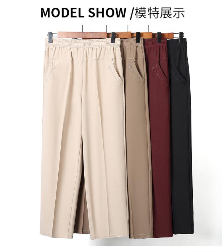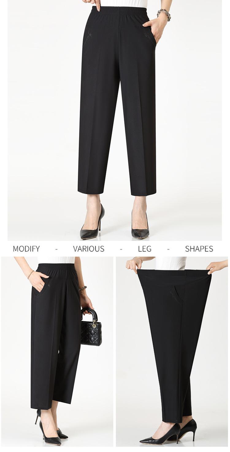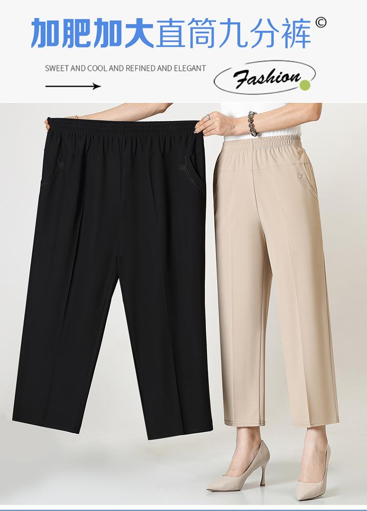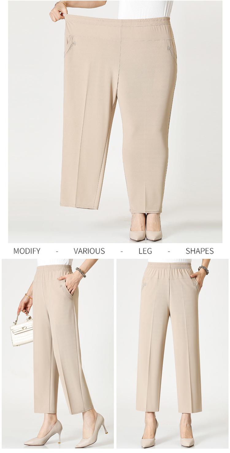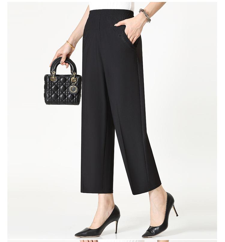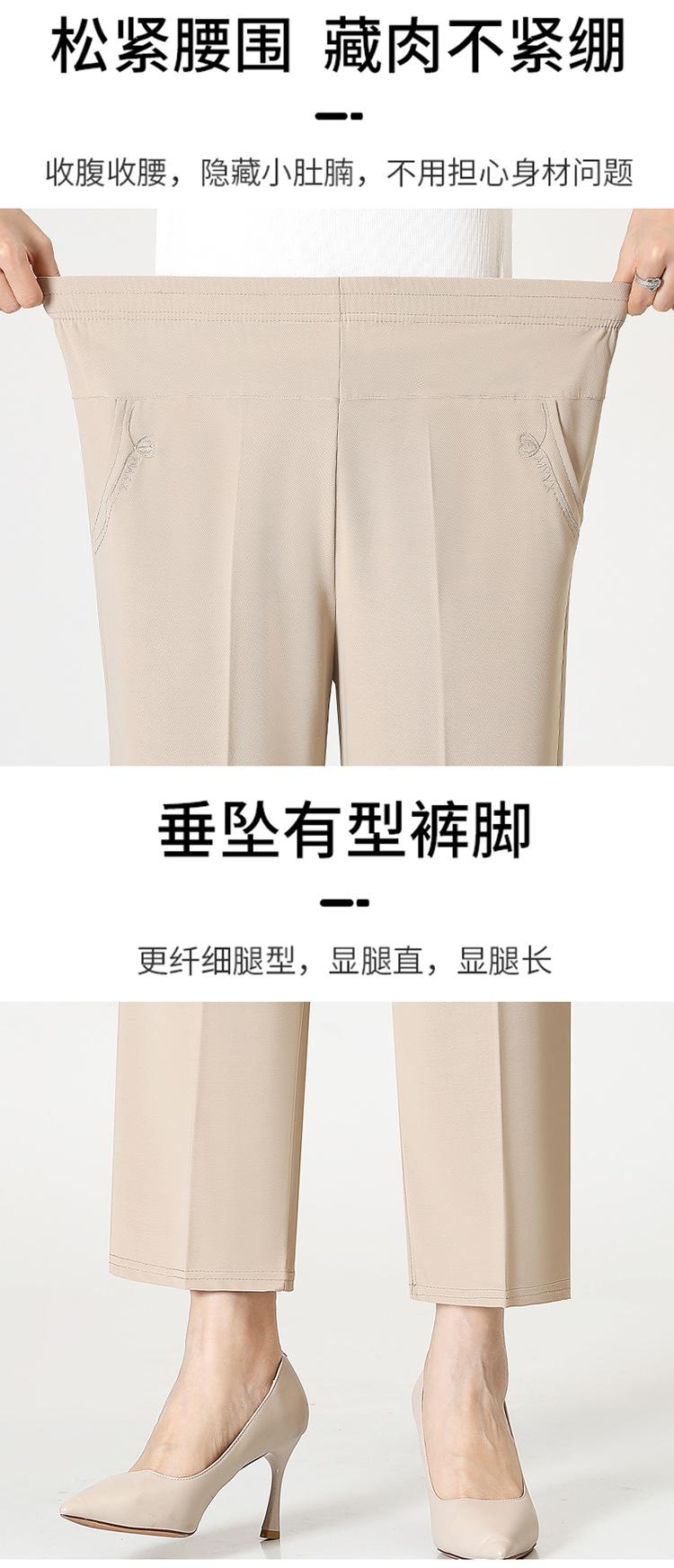 Pantalones de Verano Delgados de Mamá Elásticos Rectos Casuales Sueltos Talla Extra Pantalones Recortados Cintura Alta Elasticizada Pantalones para Mujeres de Mediana Edad