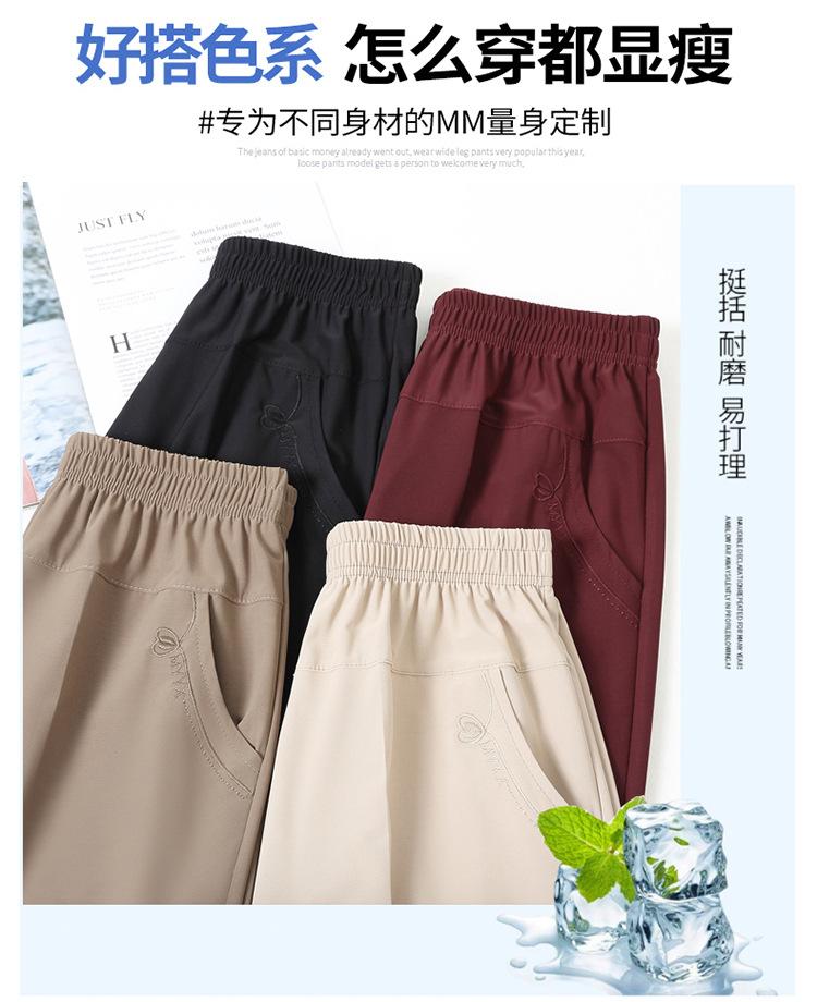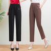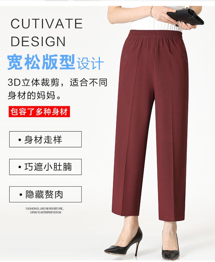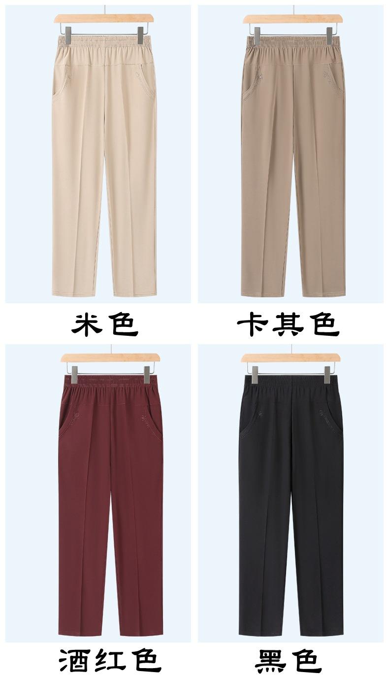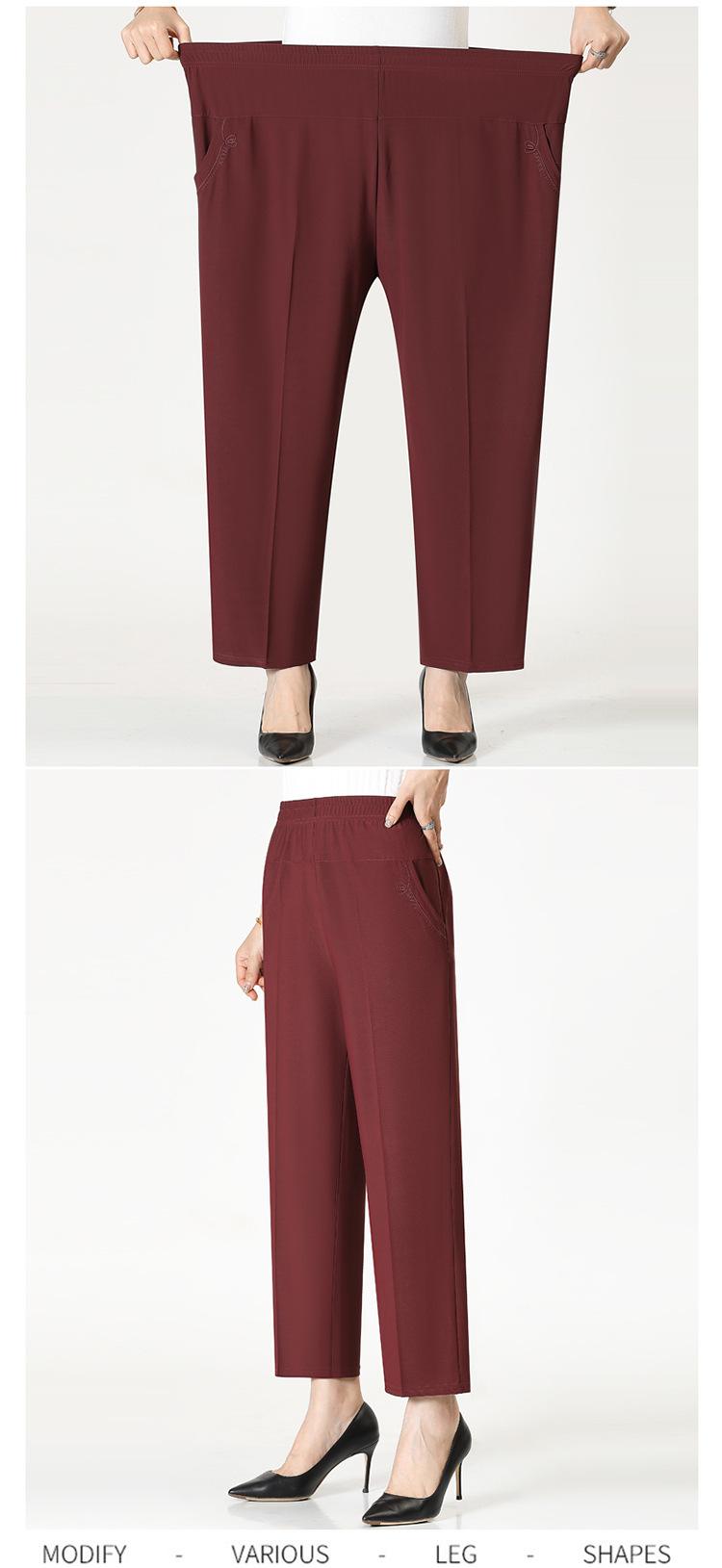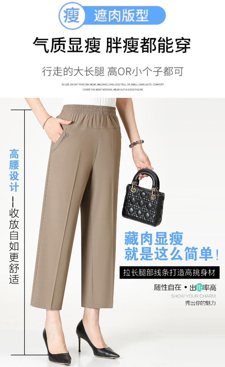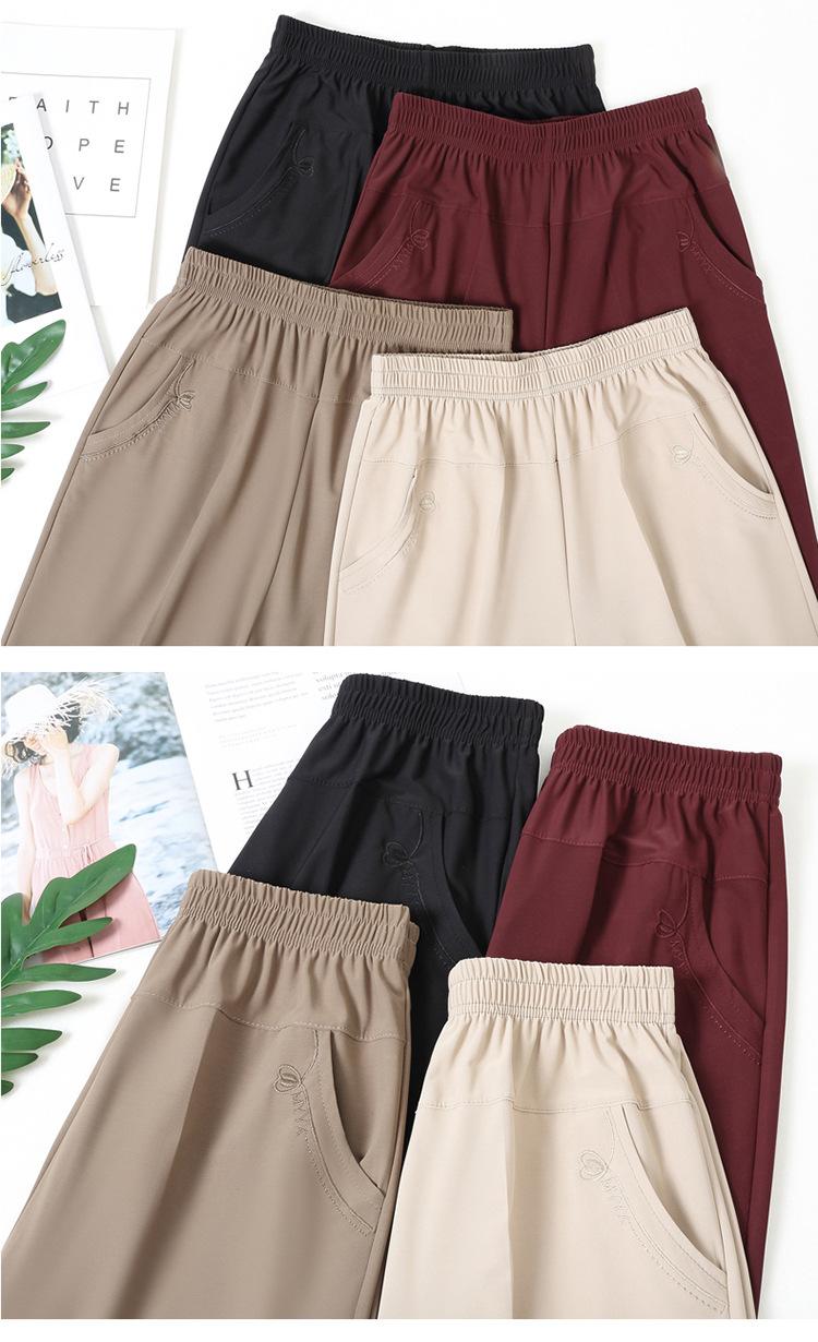 Pantalones de Verano Delgados de Mamá Elásticos Rectos Casuales Sueltos Talla Extra Pantalones Recortados Cintura Alta Elasticizada Pantalones para Mujeres de Mediana Edad