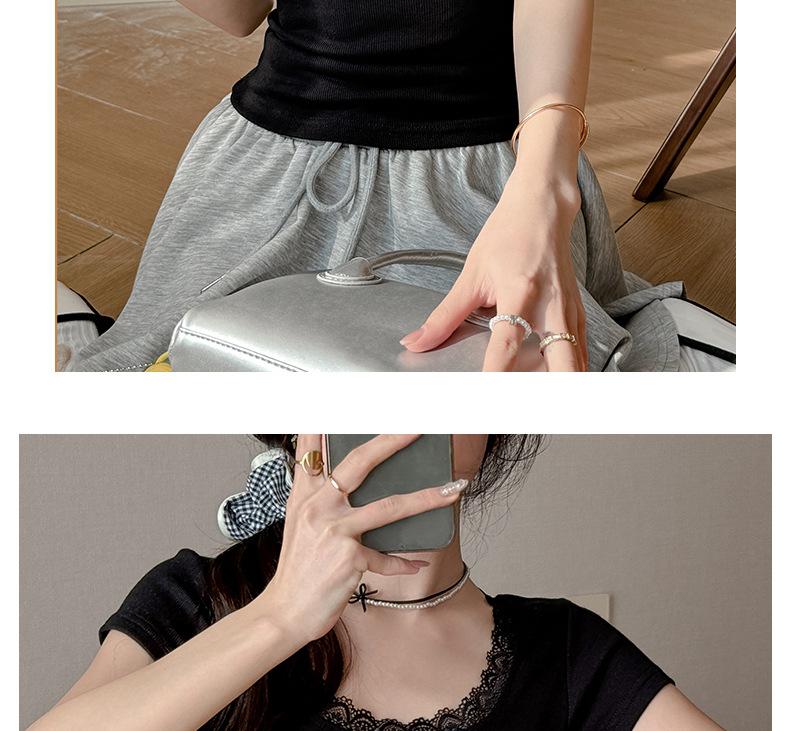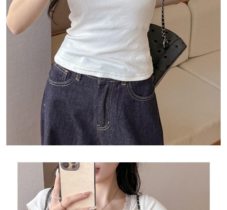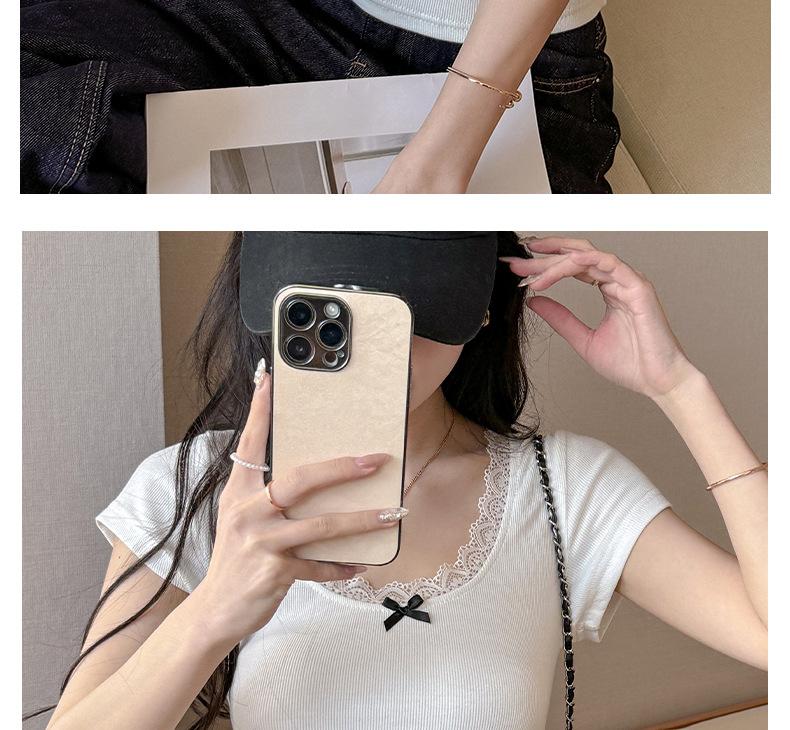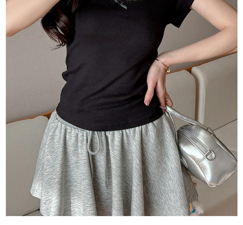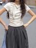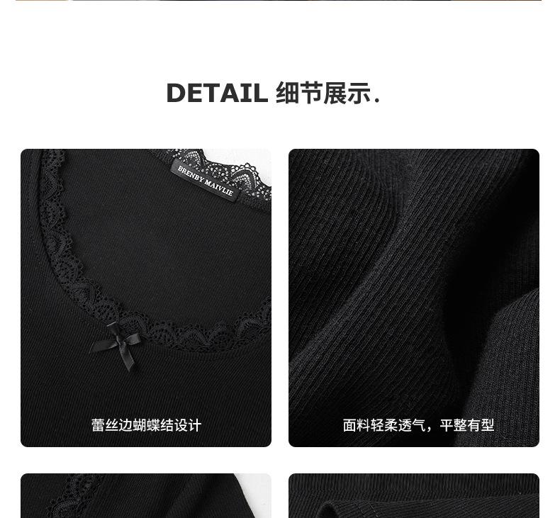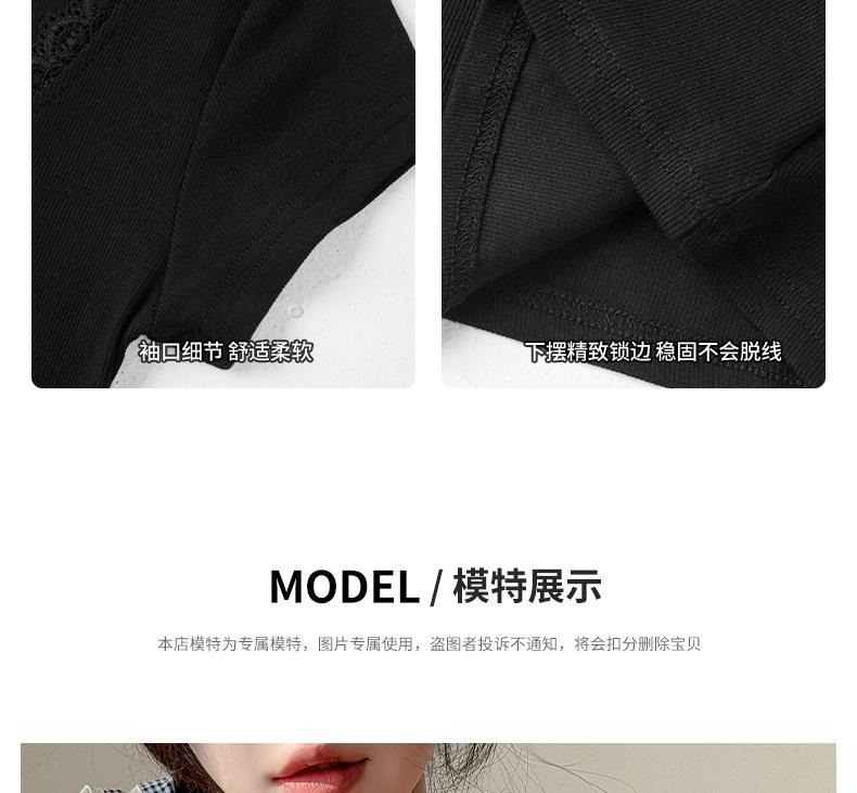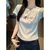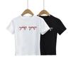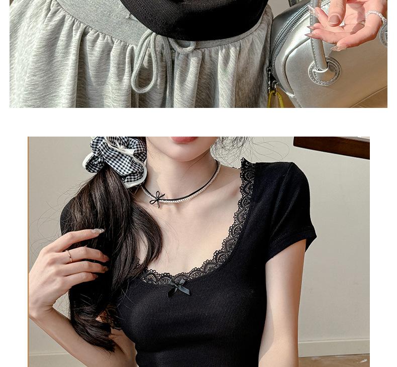 Camiseta de Manga Corta con Lazo de Encaje Blanco Seleccionado Estrictamente para Mujer, Verano, Cuello Redondo, Combinación con Todo, Transpirable, Camiseta Base