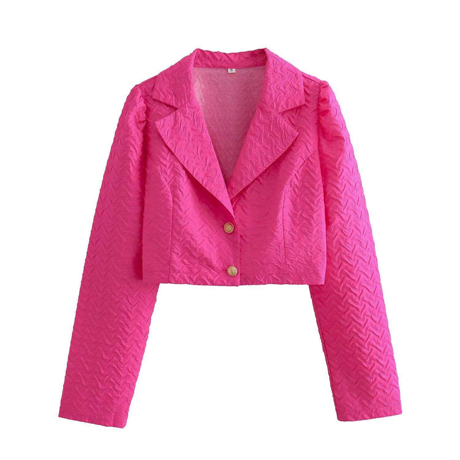 Estilo europeo y americano 2023 Otoño Nuevo traje pequeño rojo rosa francés chaqueta corta al por mayor