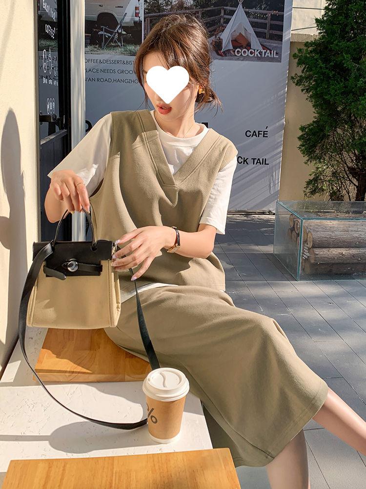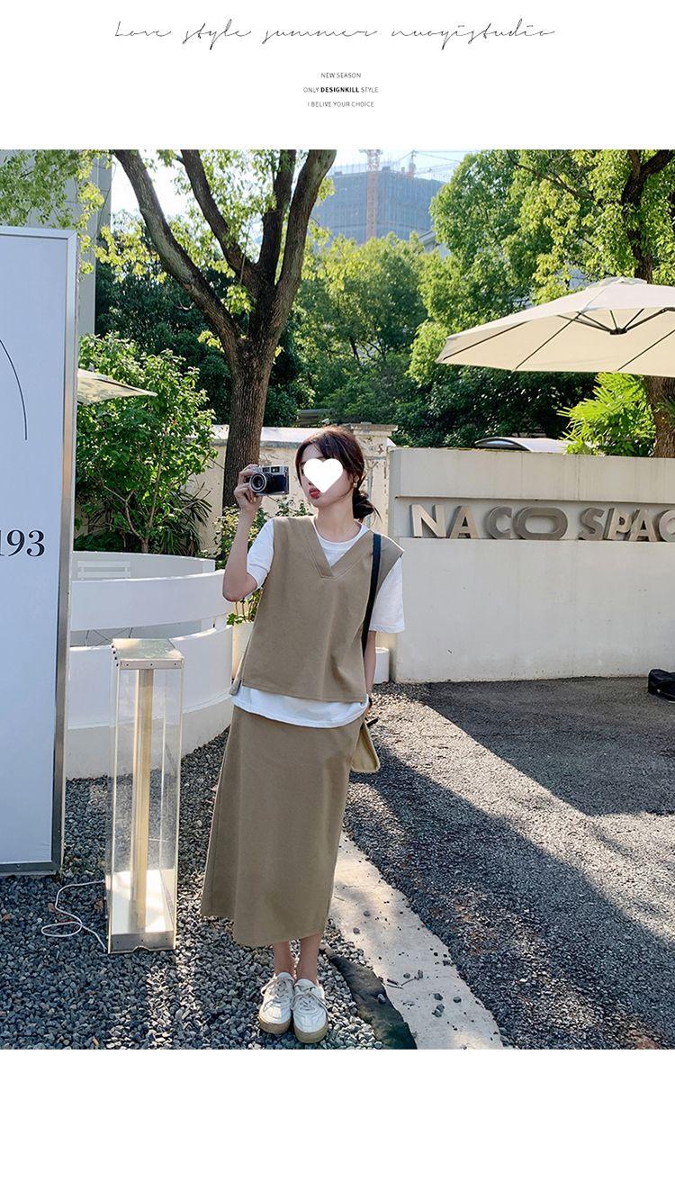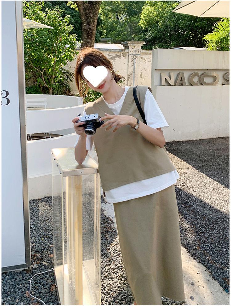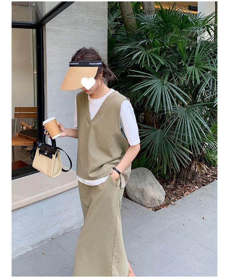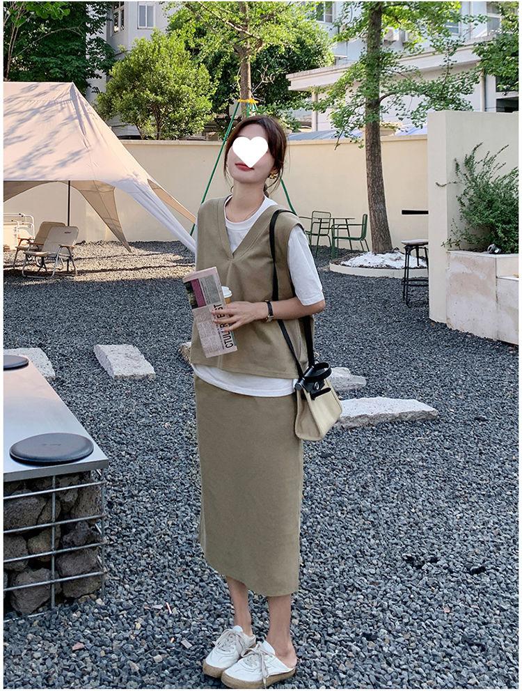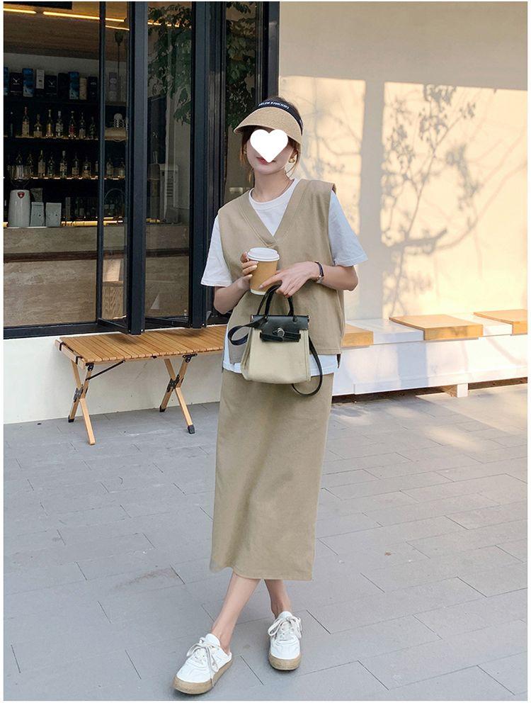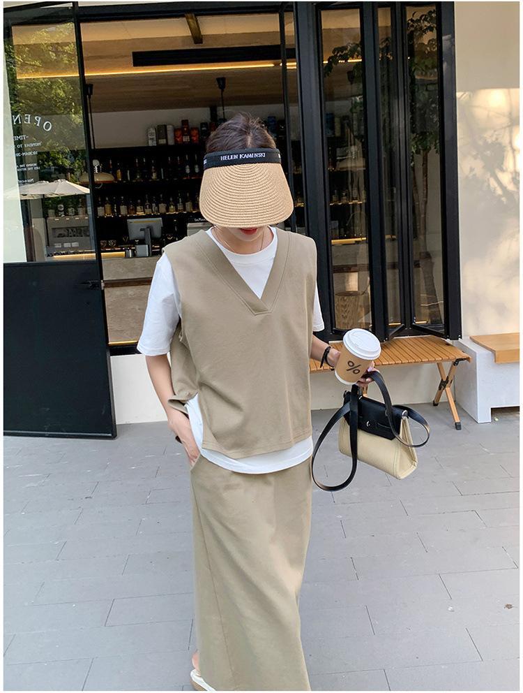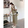Falda de Traje Deportivo Casual para Mujer Verano 2024 Nuevo Suelto Moderno Falso de Dos Piezas Camiseta Falda Conjunto de Dos Piezas