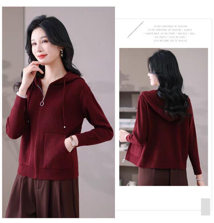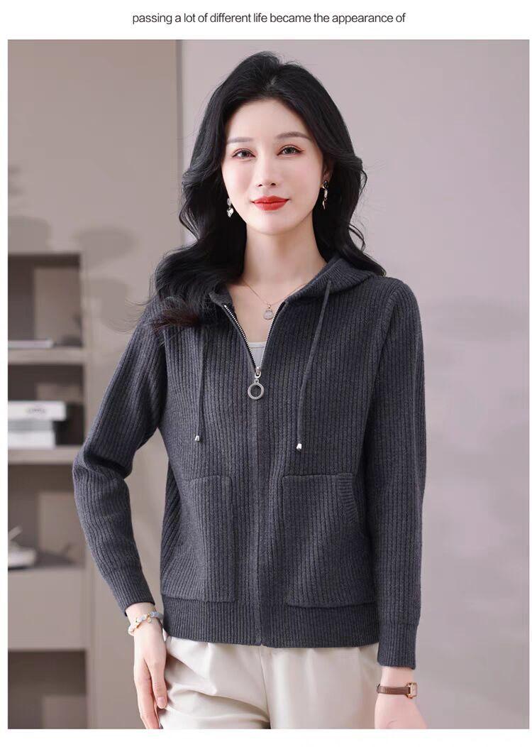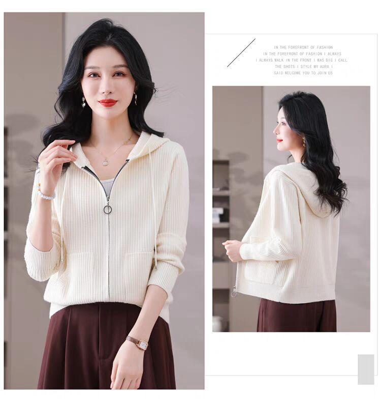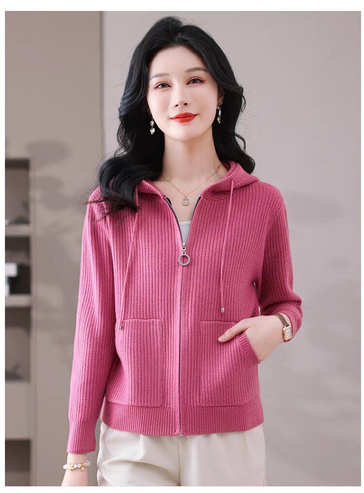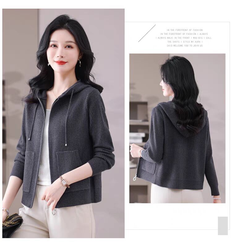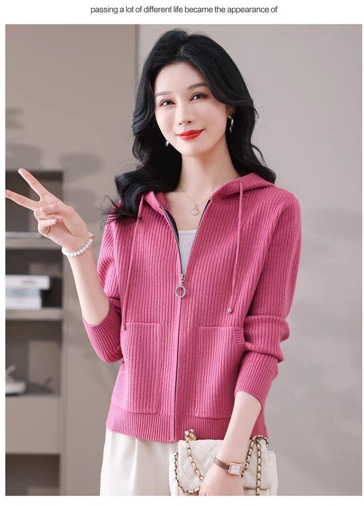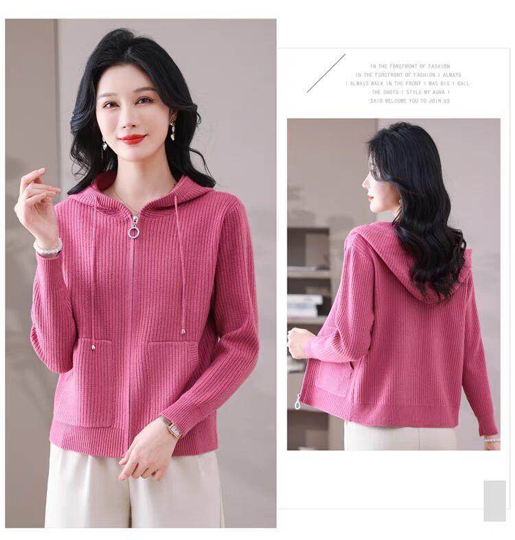 Abrigo Suéter con Capucha para Mujer Primavera Nuevo Top Holgado Cárdigan Tejido Exterior Primavera y Otoño